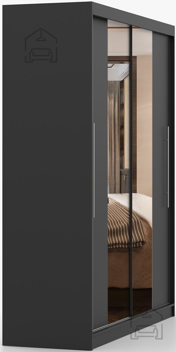 Garderobna omara Torino z ogledalom v črni barvi je sodoben in funkcionalen kos pohištva, ki združuje eleganco ter praktičnost. Zasnovana je za vsakodnevno uporabo v spalnici, predsobi ali garderobnem prostoru, kjer ponuja obilico prostora za shranjevanje oblačil in dodatkov. Izdelana je v tovarni Idżczak Meble na Poljskem, kar zagotavlja kakovostno izdelavo ter natančno obdelavo vseh detajlov. Dimenzije omare, 203x58x218 cm, omogočajo optimalno razporeditev notranjosti, hkrati pa se lepo podajo v različne prostorske rešitve sodobnih domov.