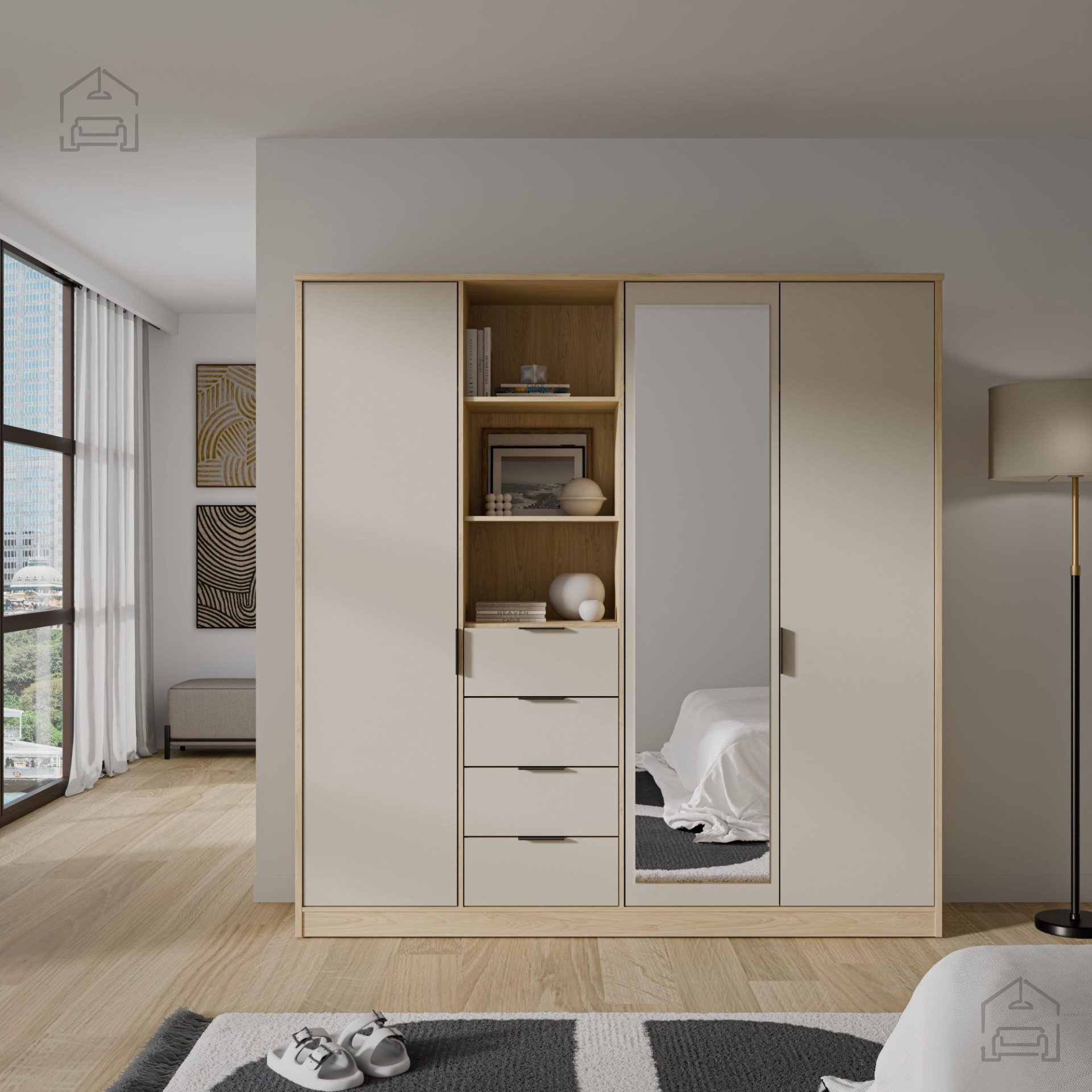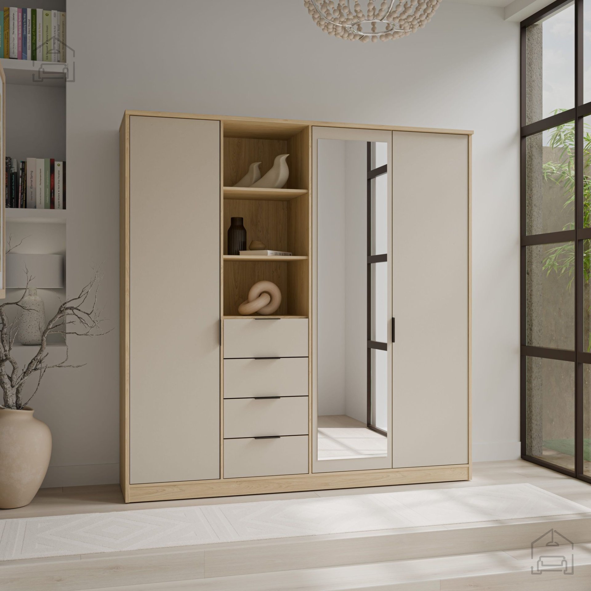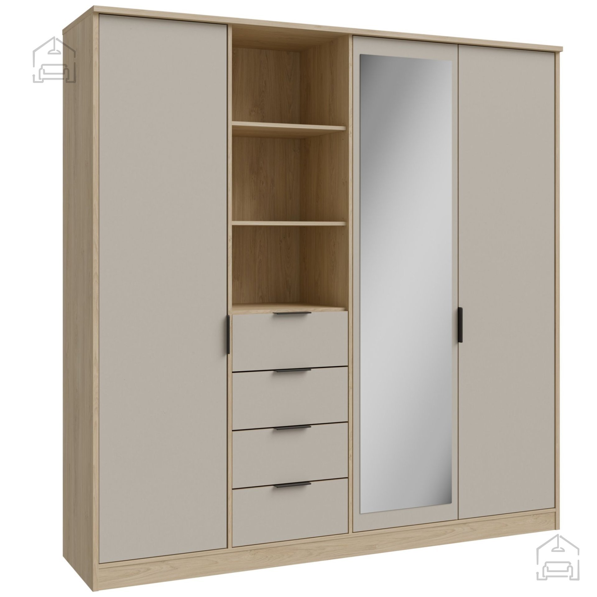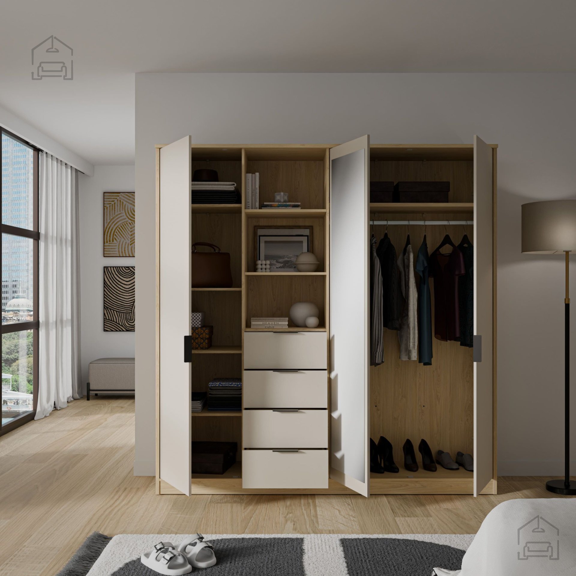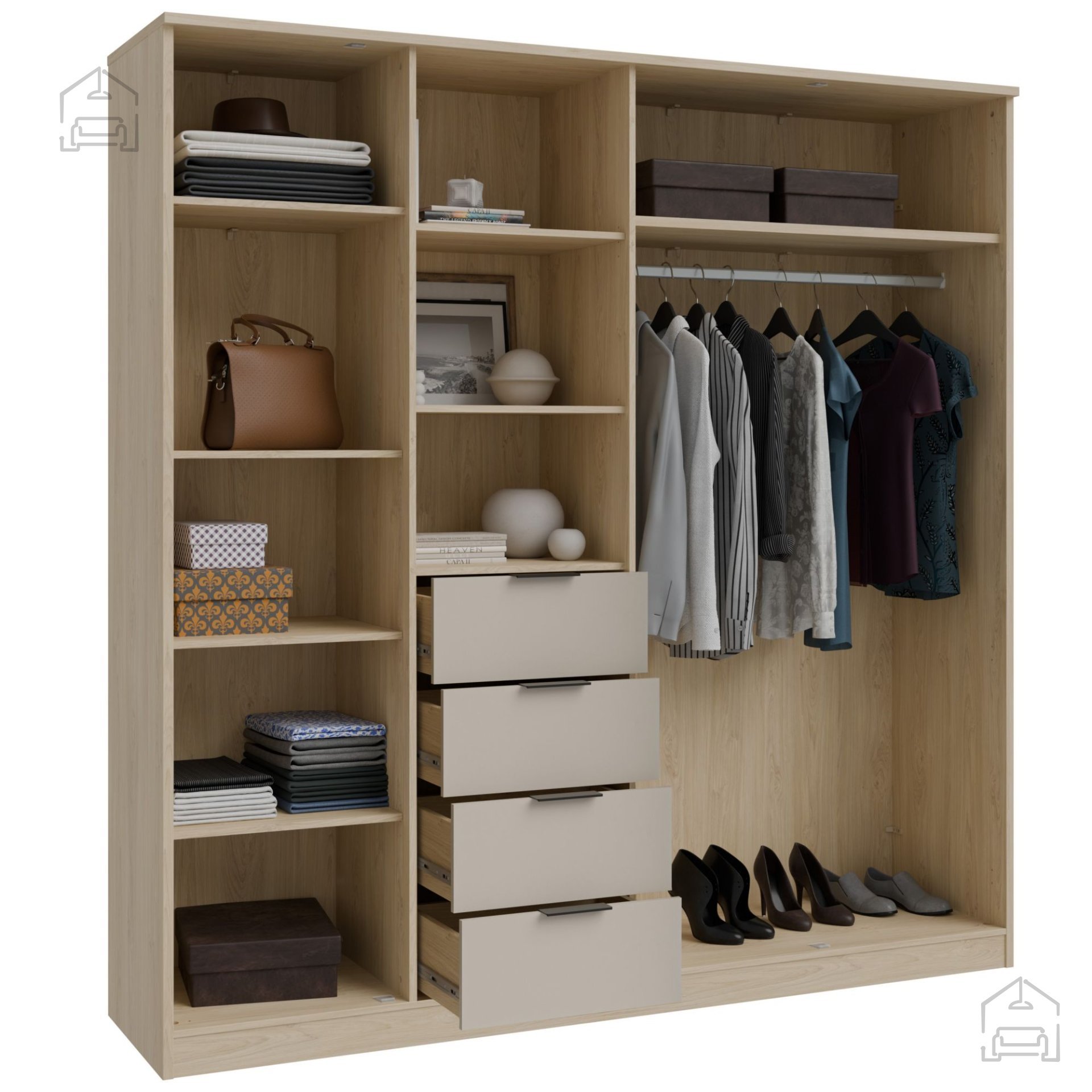 Omara Fortasta je zasnovana z mislijo na maksimalno izrabo prostora. Na levi strani ponuja visok prostor za obešanje oblačil, opremljen z eno zgornjo polico, ki lahko nosi do 15 kg. Ta polica je idealna za shranjevanje manjših predmetov ali sezonskih oblačil. Spodnji del vsebuje tri dodatne police, ki omogočajo organizirano shranjevanje oblačil ali drugih predmetov.