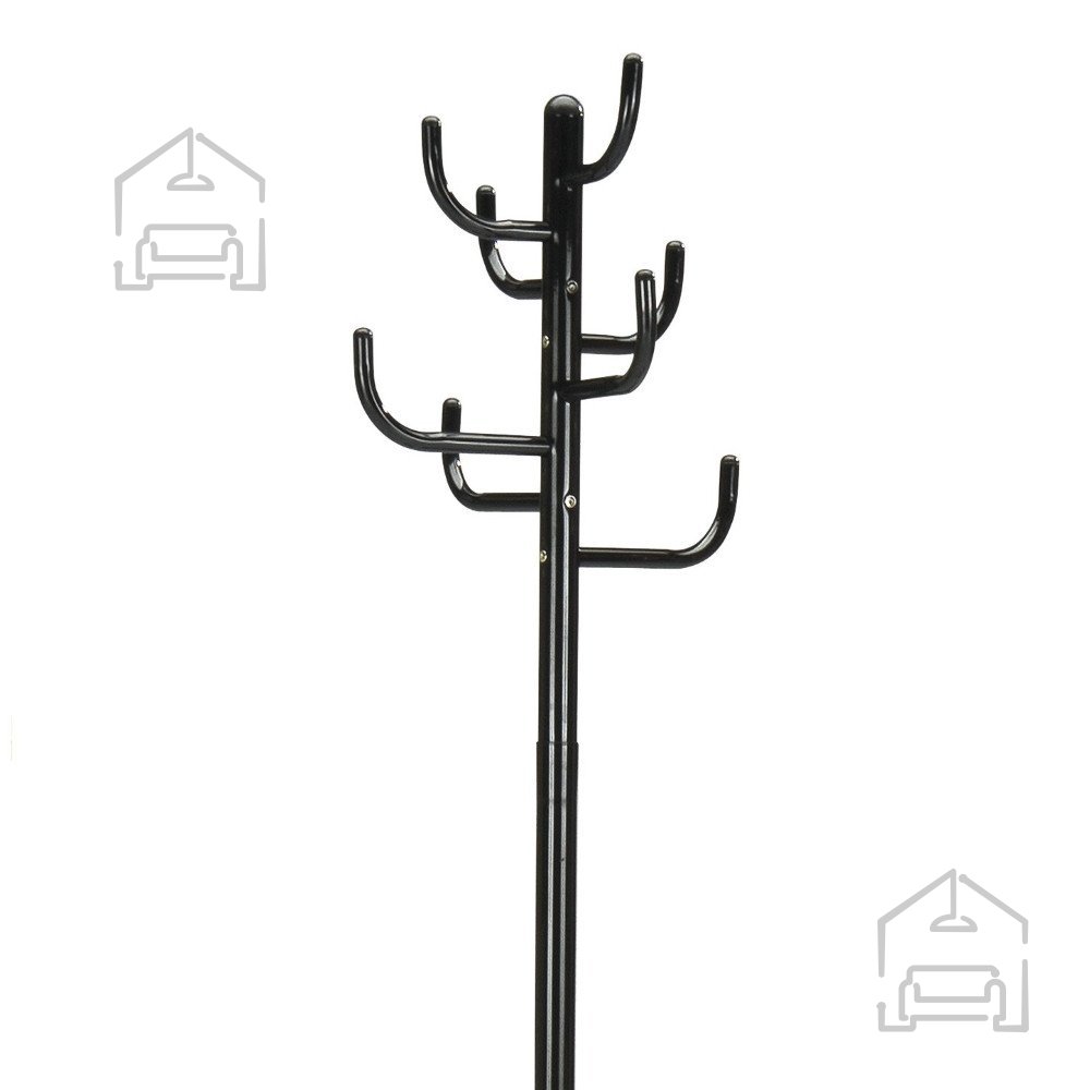 Eleganten kovinski obešalnik v črni barvi združuje minimalističen videz in funkcionalno zasnovo, zato je popolna izbira za vse, ki želijo ohraniti red v predsobi, pisarni ali garderobnem prostoru. Njegova stabilna kovinska konstrukcija in skrbno razporejene kljukice omogočajo, da oblačila, torbe, klobuke in dodatke obesite pregledno in dostopno. Zaradi uravnotežene oblike ter premišljeno zasnovanega podstavka se obešalnik ne prevrne niti pri večji obremenitvi, hkrati pa ohranja estetsko dovršen videz.