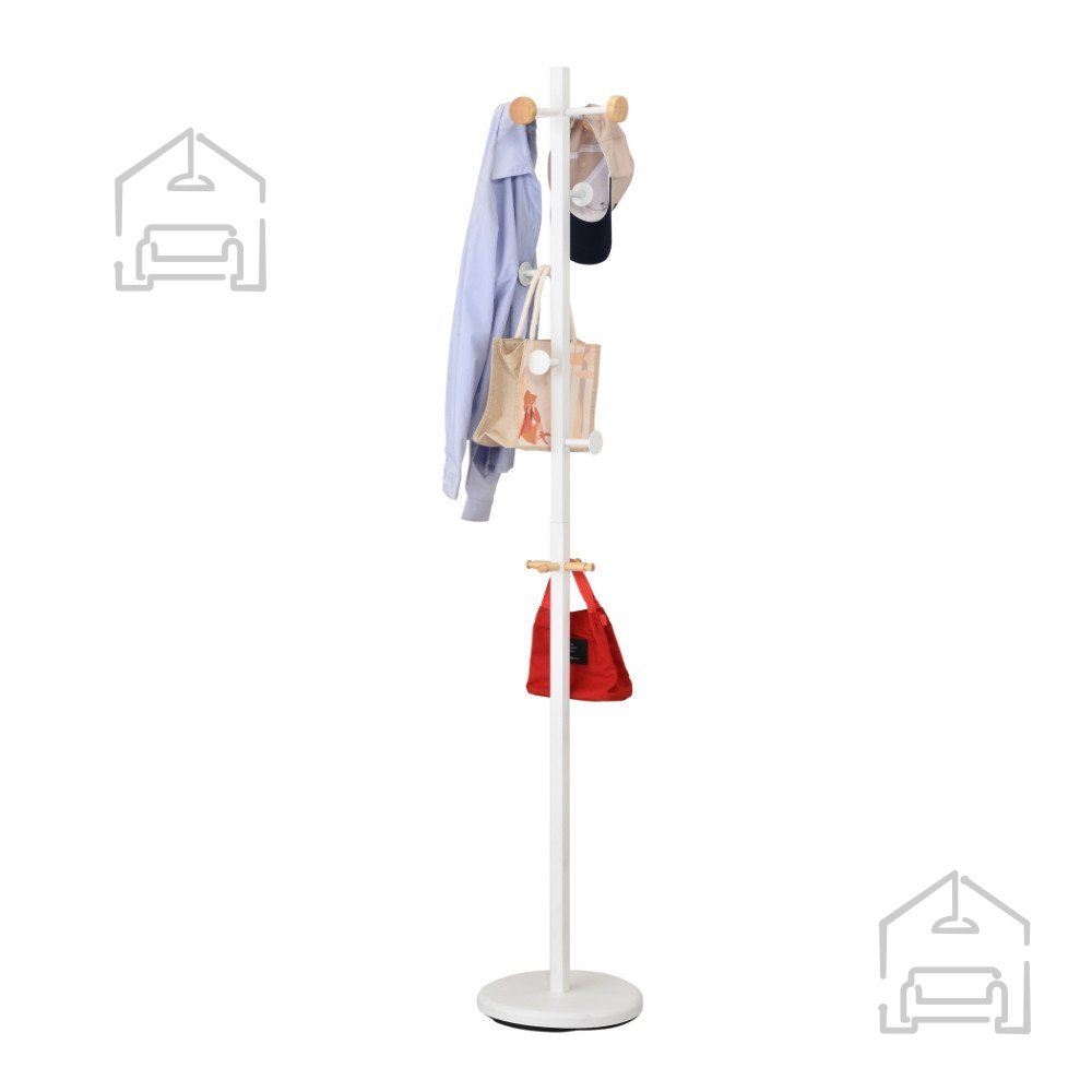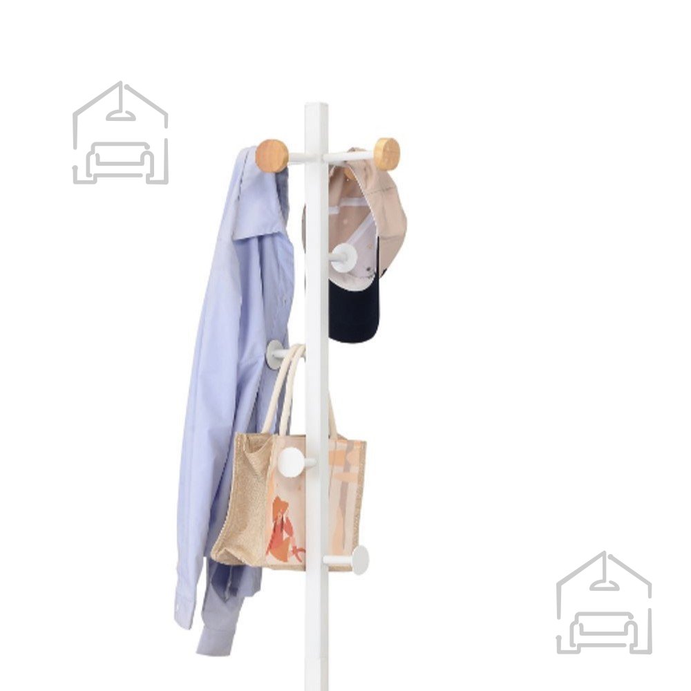 Obešalnik je idealen za predsobe, spalnice ali pisarne, kjer je potrebna kombinacija estetike in funkcionalnosti. Njegov minimalističen videz se ujema s sodobnimi interjerji, hkrati pa je dovolj nevtralen, da dopolnjuje tudi klasično opremo. Bela barva vizualno razširi prostor, medtem ko leseni poudarki dodajo občutek topline in naravnosti.