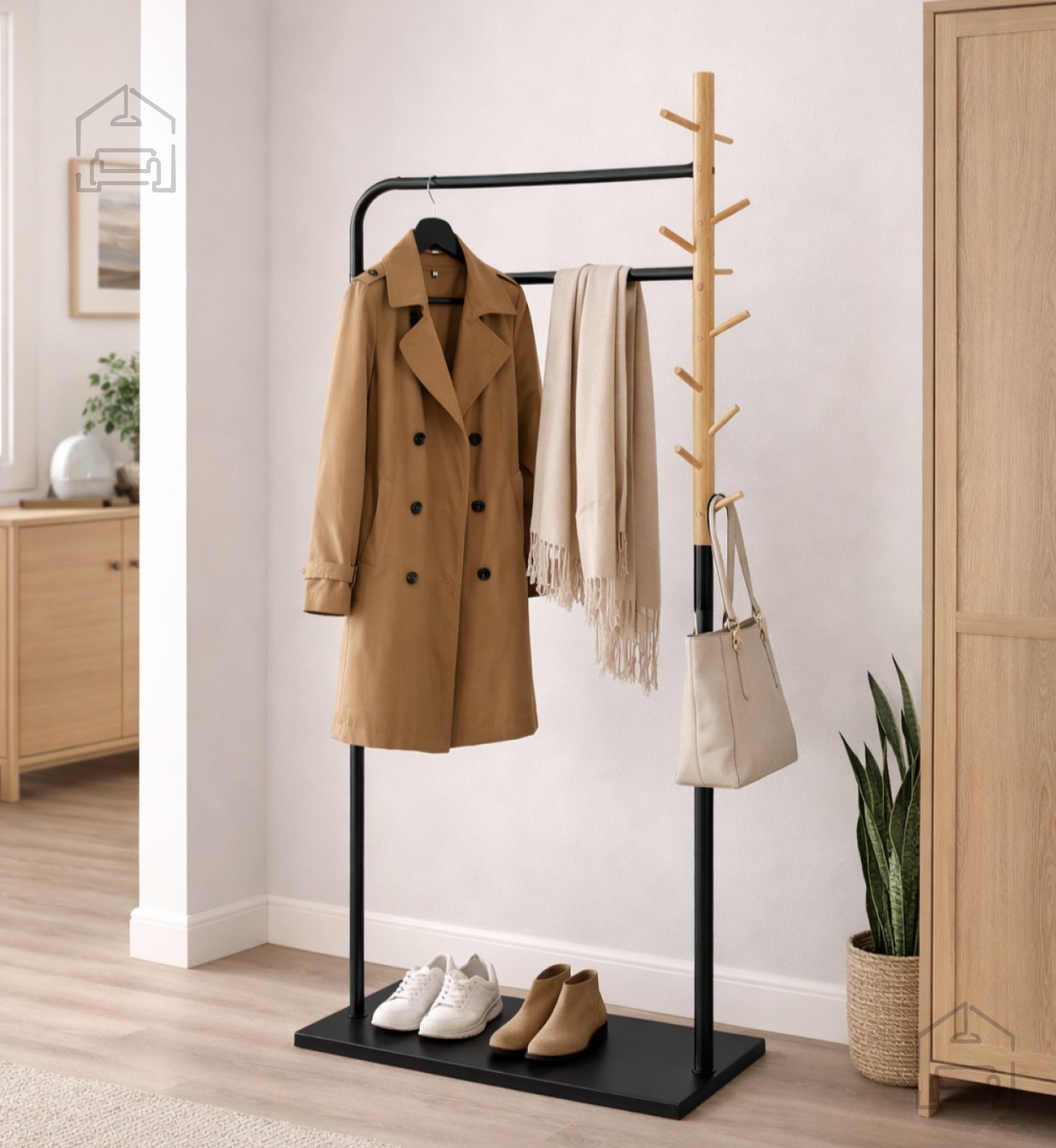 Če iščete praktično, trpežno in vizualno privlačno rešitev za shranjevanje plaščev, torb ali dodatkov, je to stojalo odlična izbira. Združuje premišljeno funkcionalnost s prefinjeno estetiko ter s svojo kombinacijo naravnih in kovinskih površin ustvari elegantno točko v vsakem prostoru. Stojalo za oblačila – Brand ne ponuja zgolj uporabnosti, temveč tudi subtilen dizajnerski poudarek, ki izraža občutek reda, topline in sodobnega sloga.