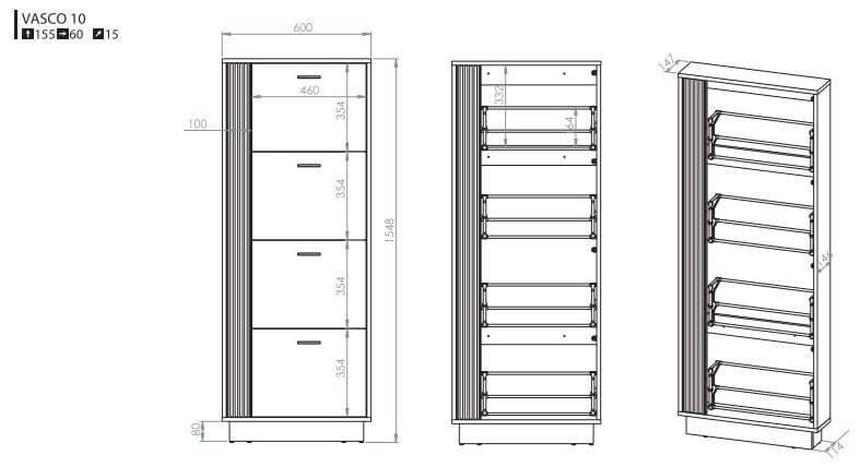 Lesni dekor 60x15x155 cm: omara za čevlje Vasco 10 – ML Meble.