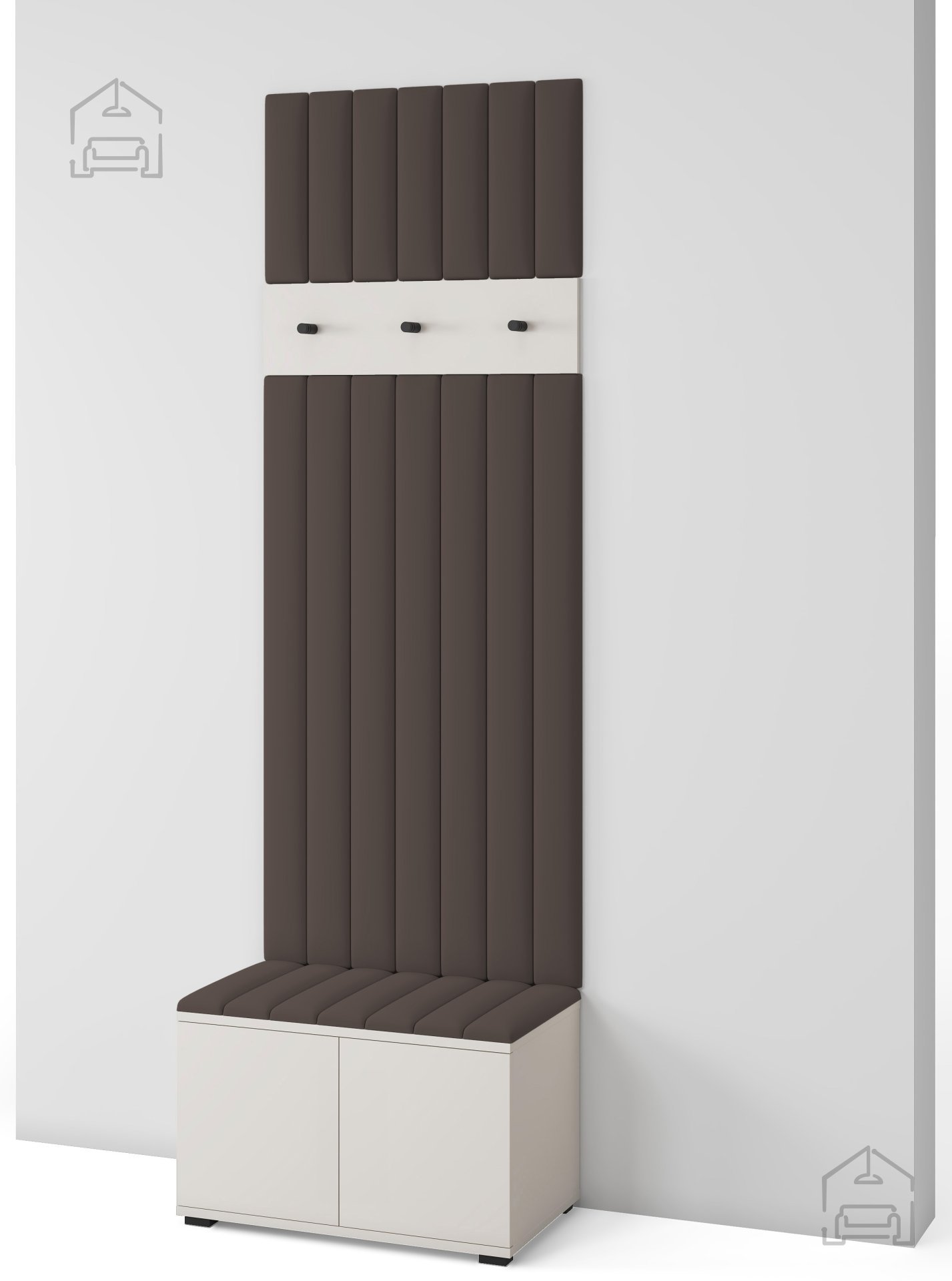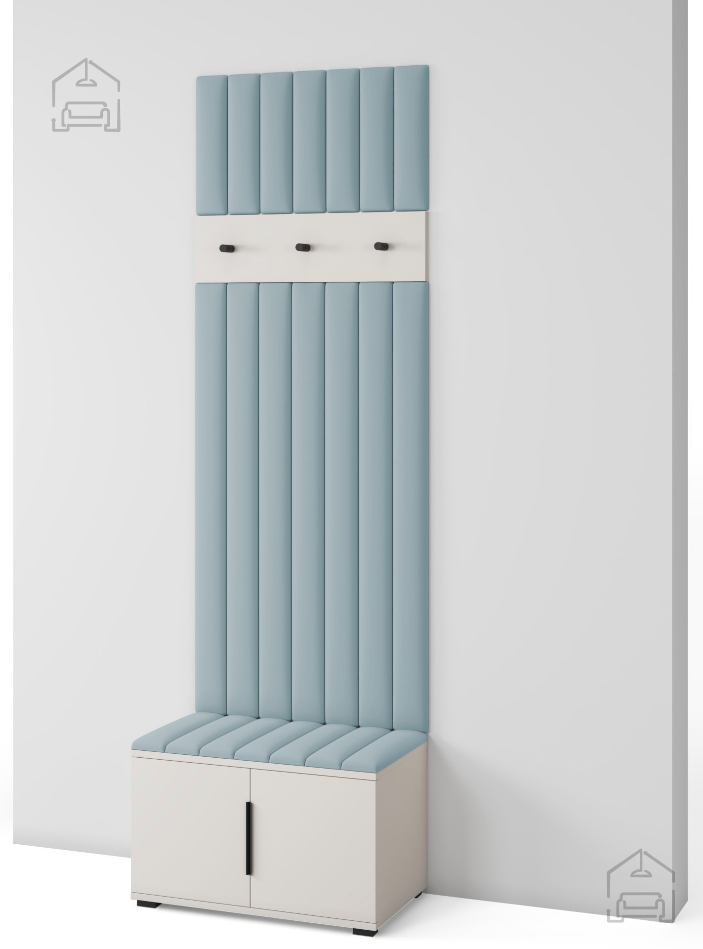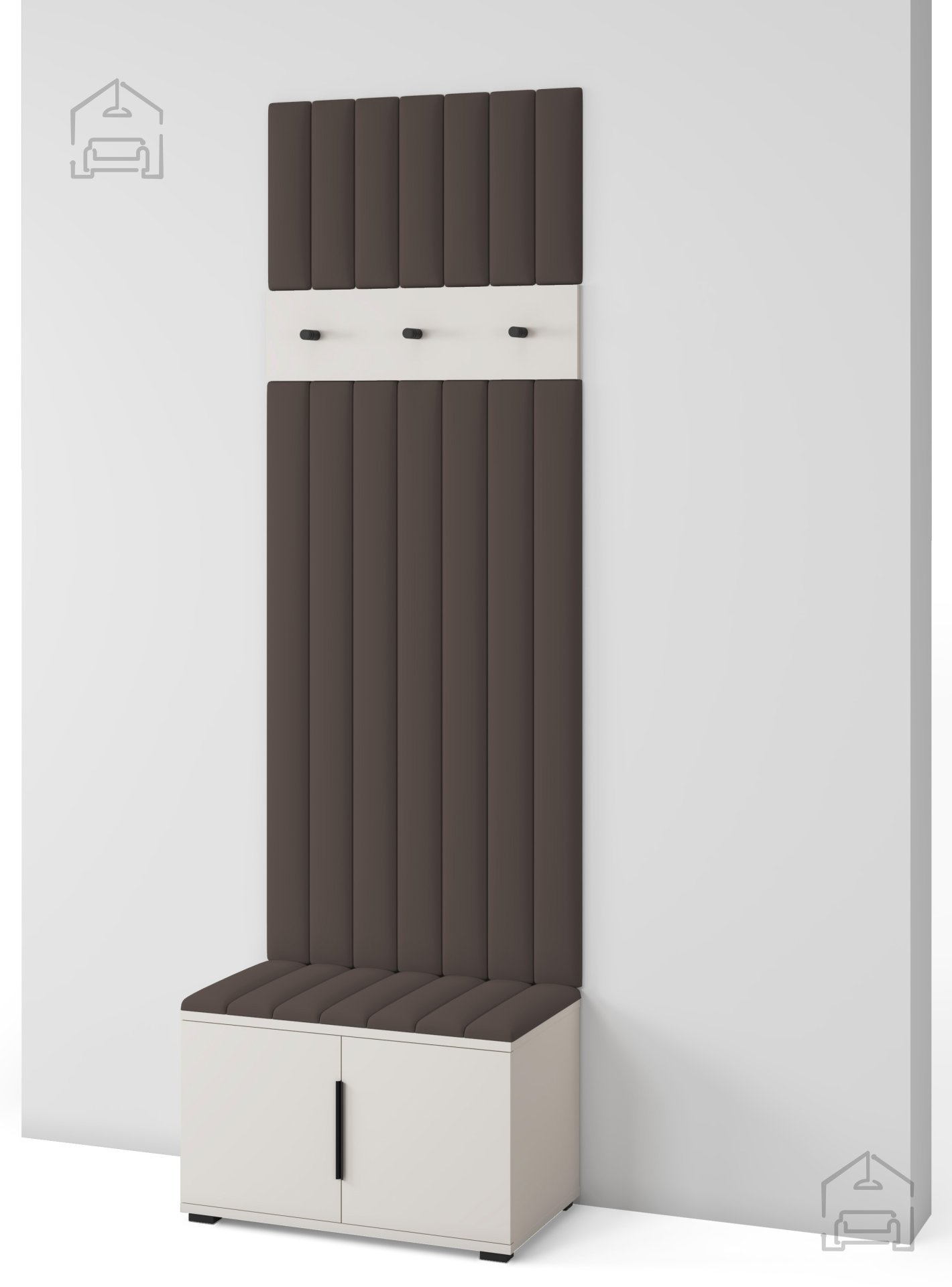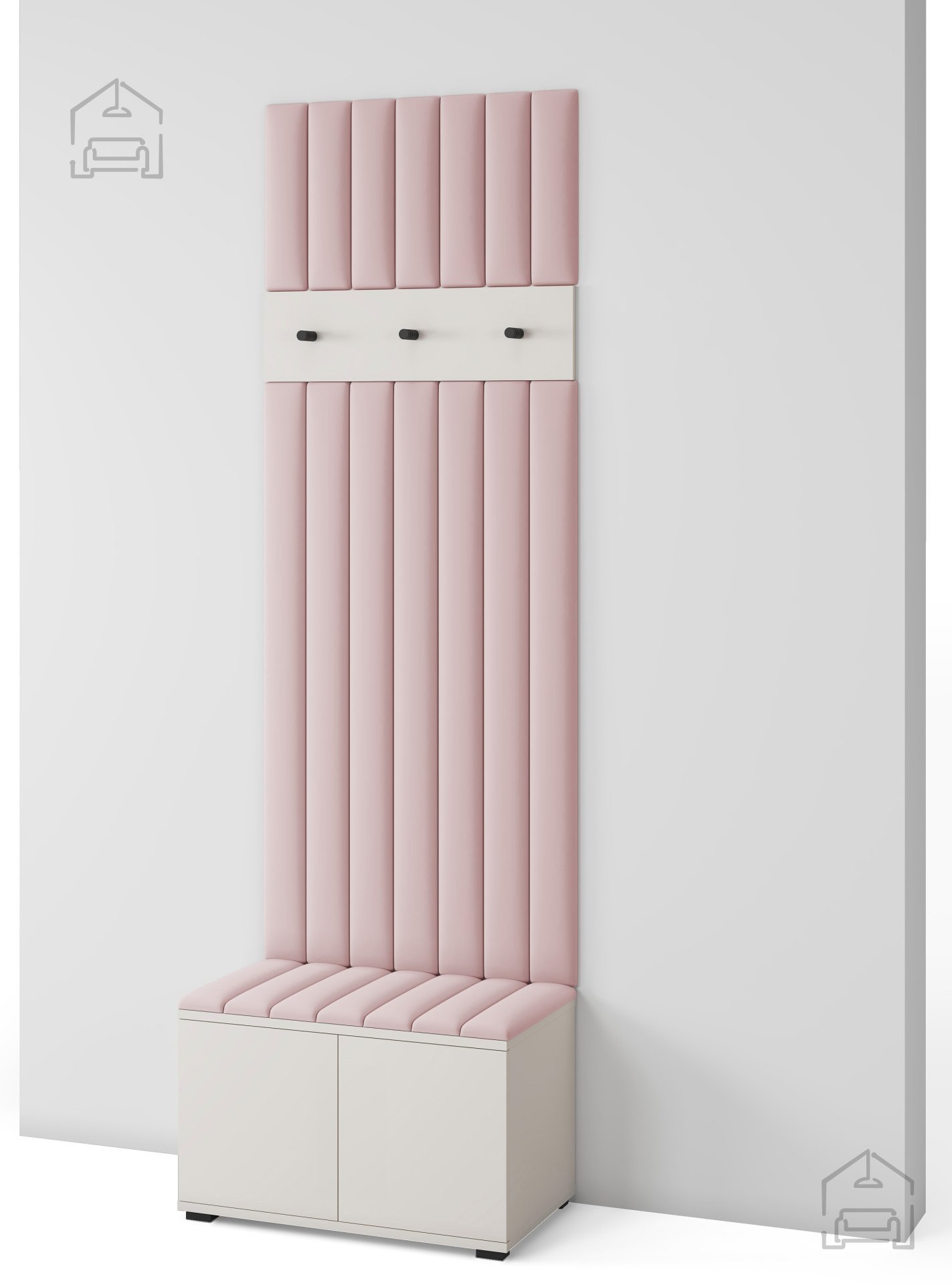 Komplet za hodnik Bianco 16 – PKMebel je premišljena izbira za vse, ki cenijo urejenost, funkcionalnost in eleganten videz. Poljska izdelava zagotavlja kakovost, barva kašmir pa poskrbi, da prostor deluje toplo in vabljivo. S kombinacijo garderobnega modula, obešalnika in oblazinjenih plošč je ta komplet popolna rešitev za sodoben dom, kjer je vsaka podrobnost pomembna.