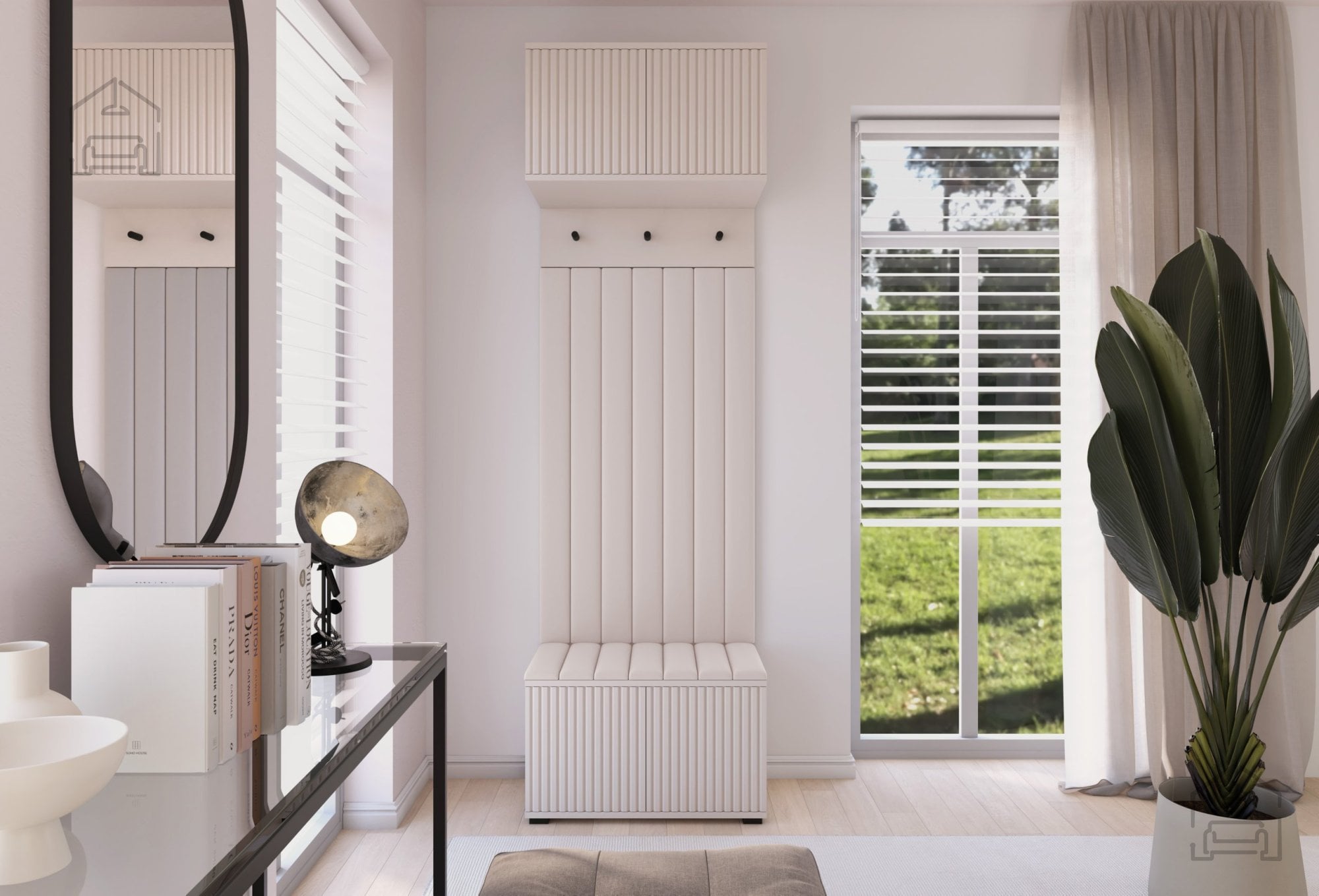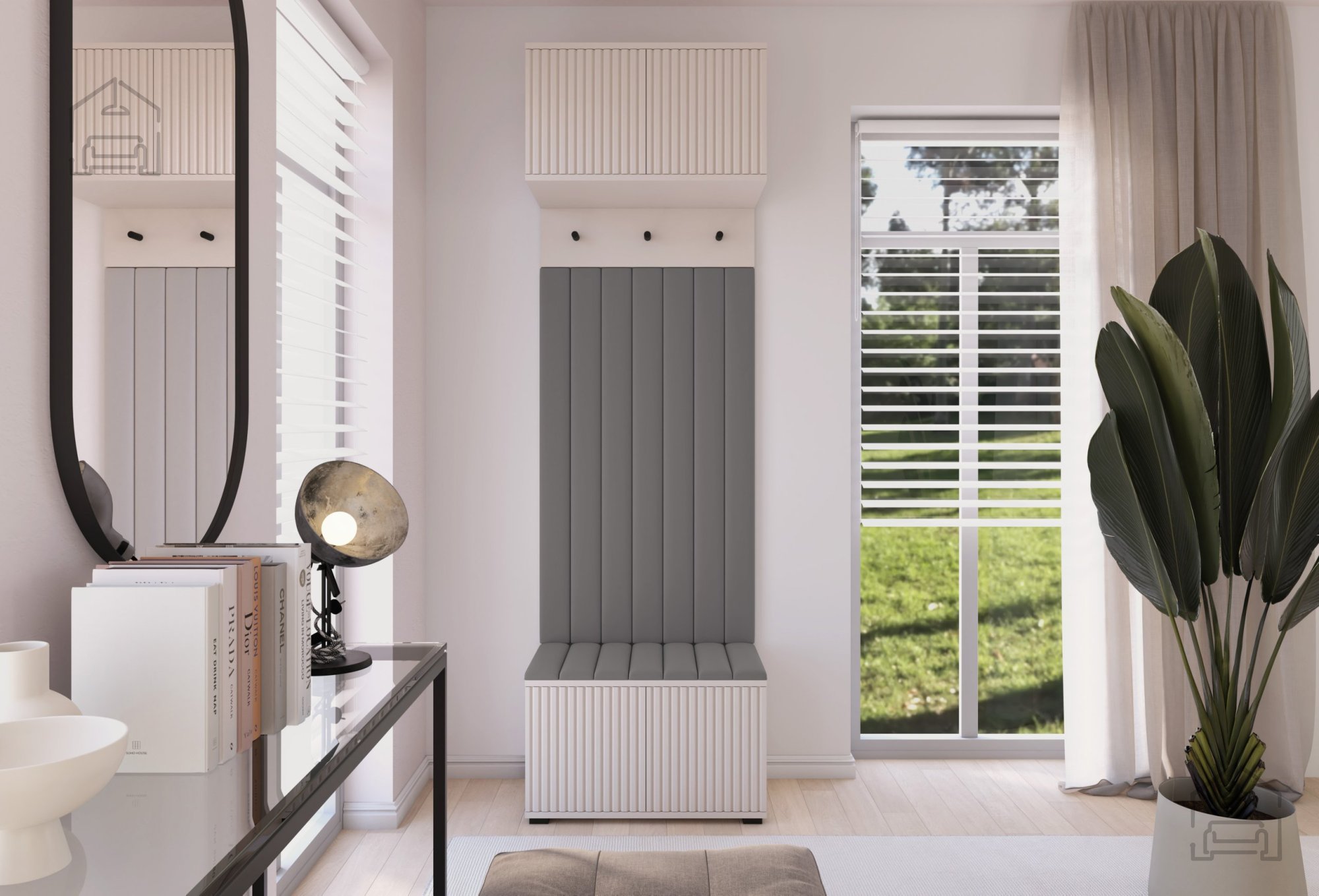 Komplet za hodnik Rayo 5 – PKMebel je popolna izbira za vse, ki želijo v svoj dom vnesti kombinacijo elegance, funkcionalnosti in visokokakovostne izdelave. Njegova zasnova omogoča, da bo vaš hodnik vedno urejen, hkrati pa bo prostor deloval sodobno in prijetno.