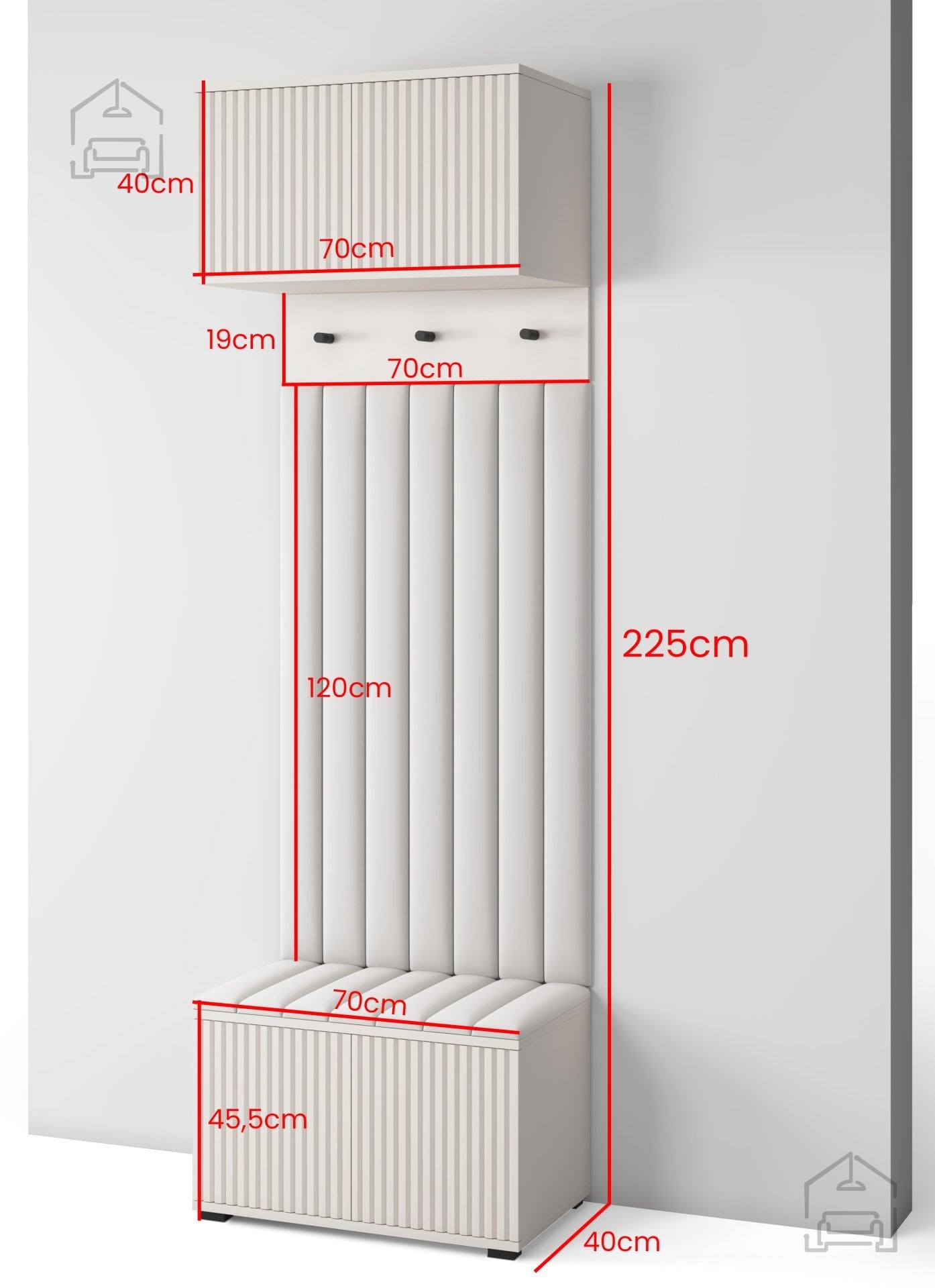 Celoten komplet je zasnovan kot popolna garderobna rešitev, ki združuje praktičnost in estetsko usklajenost posameznih elementov. Sestavljen je iz naslednjih kosov: