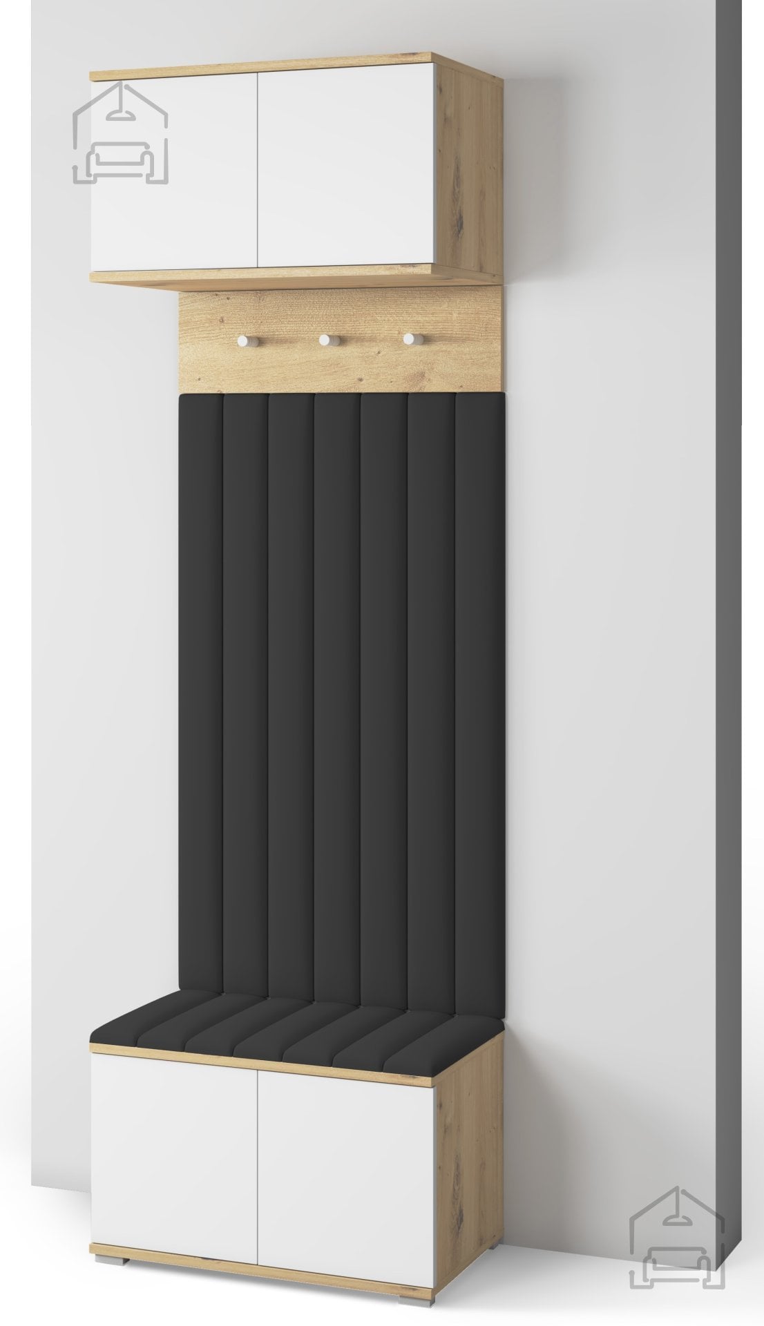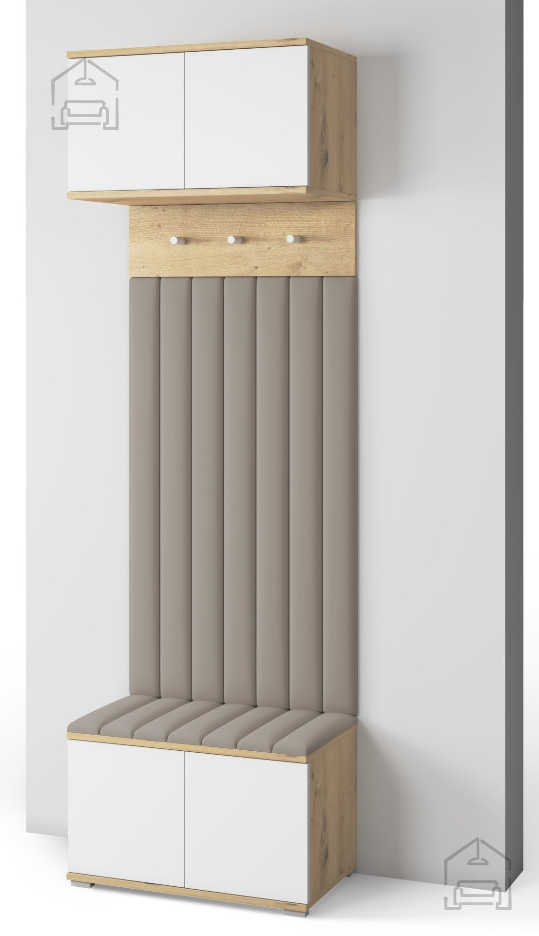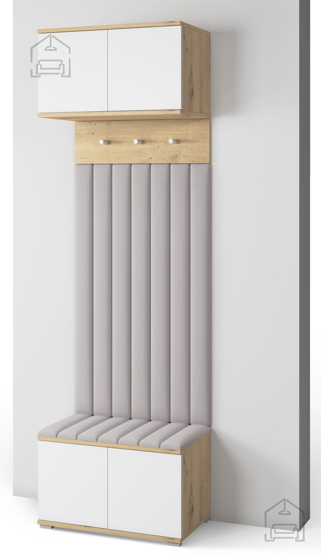 Komplet za hodnik Sevilla 11 znamke PKMebel združuje sodobno estetiko, funkcionalnost in skrbno izdelavo, značilno za poljsko pohištveno tradicijo. S svojo kombinacijo barv hrasta artisan in bele površine ustvari svetel, topel in urejen videz predsobe. Dimenzije 70x40x225 cm omogočajo optimalno izrabo prostora, zato je komplet primeren tako za manjše kot večje hodnike.