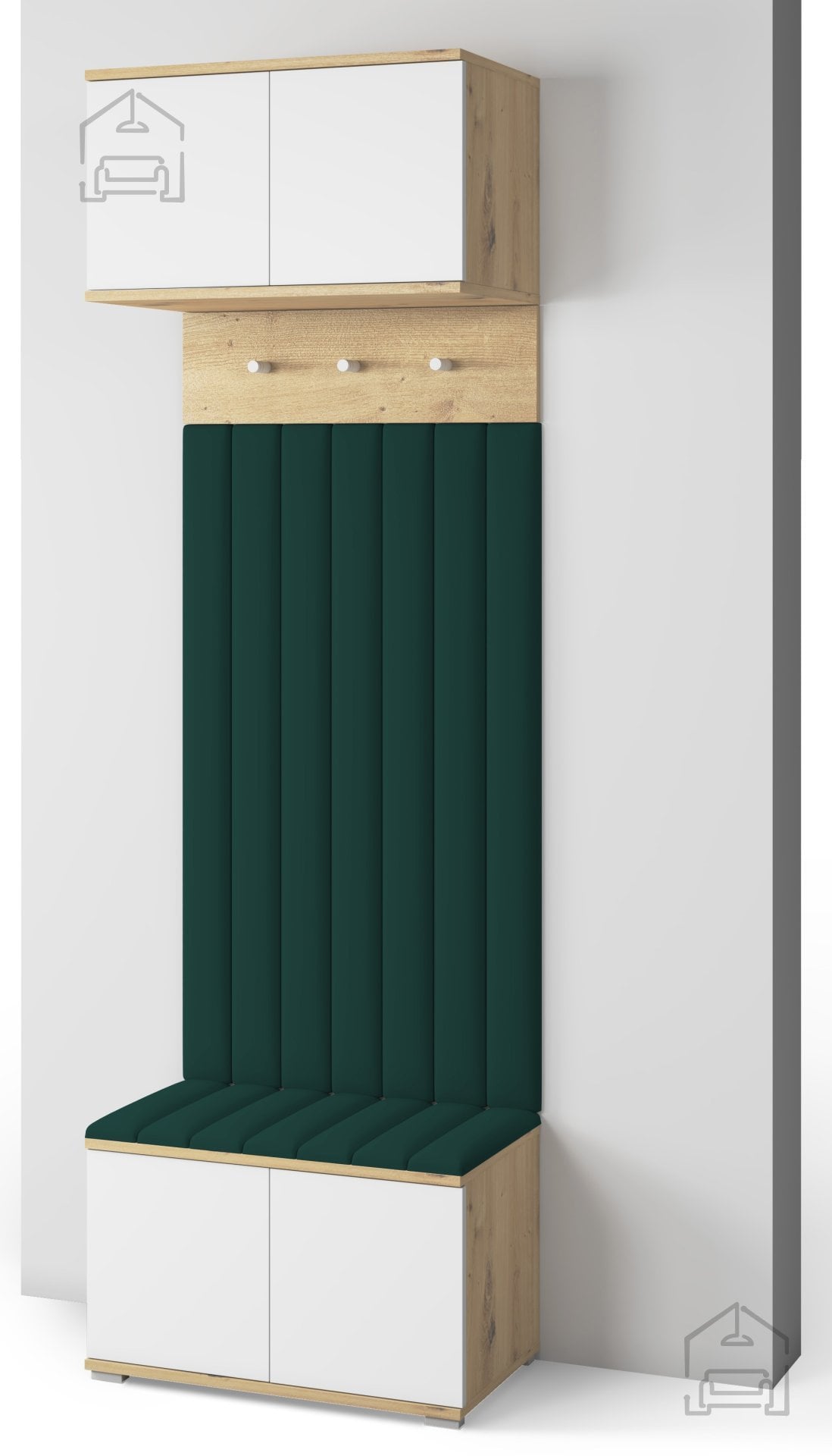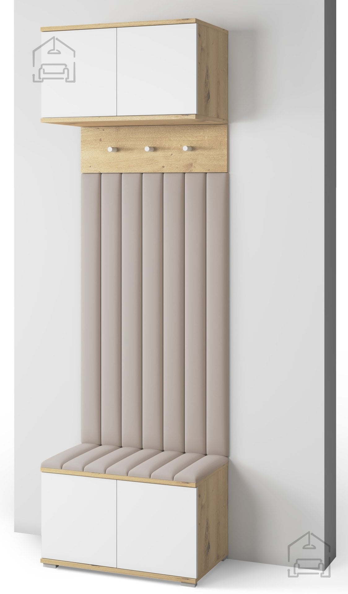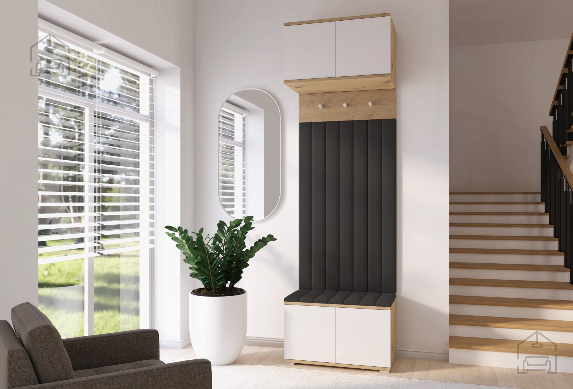 Komplet za hodnik Sevilla 11 znamke PKMebel združuje sodobno estetiko, funkcionalnost in skrbno izdelavo, značilno za poljsko pohištveno tradicijo. S svojo kombinacijo barv hrasta artisan in bele površine ustvari svetel, topel in urejen videz predsobe. Dimenzije 70x40x225 cm omogočajo optimalno izrabo prostora, zato je komplet primeren tako za manjše kot večje hodnike.