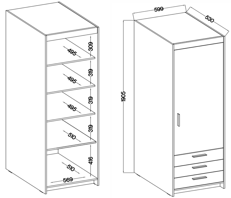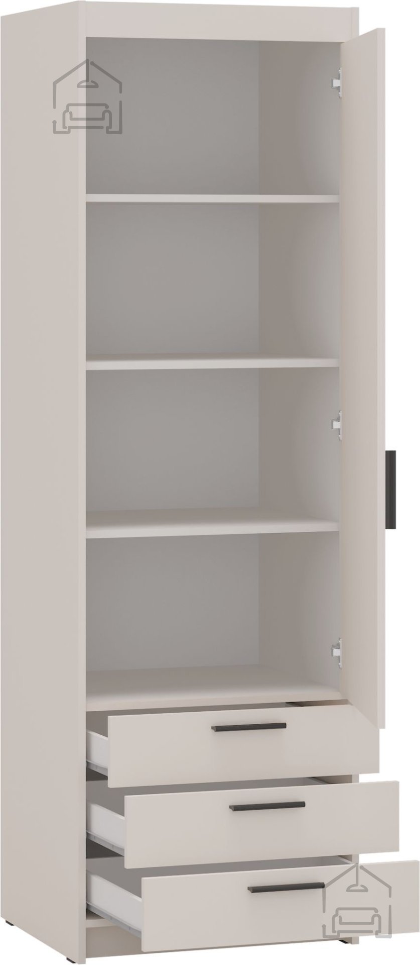 Omara Elena BP01 3S je zasnovana z mislijo na pregledno shranjevanje. Trije prostorni predali omogočajo shranjevanje manjših oblačil, dodatkov ali dokumentov, medtem ko zgornji del z vrati ponuja prostor za večje kose garderobe ali gospodinjske tekstilije. Zaradi svoje višine 190,5 cm omogoča optimalno izrabo prostora do stropa, kar je še posebej uporabno v stanovanjih, kjer je vsaka polica dragocena.