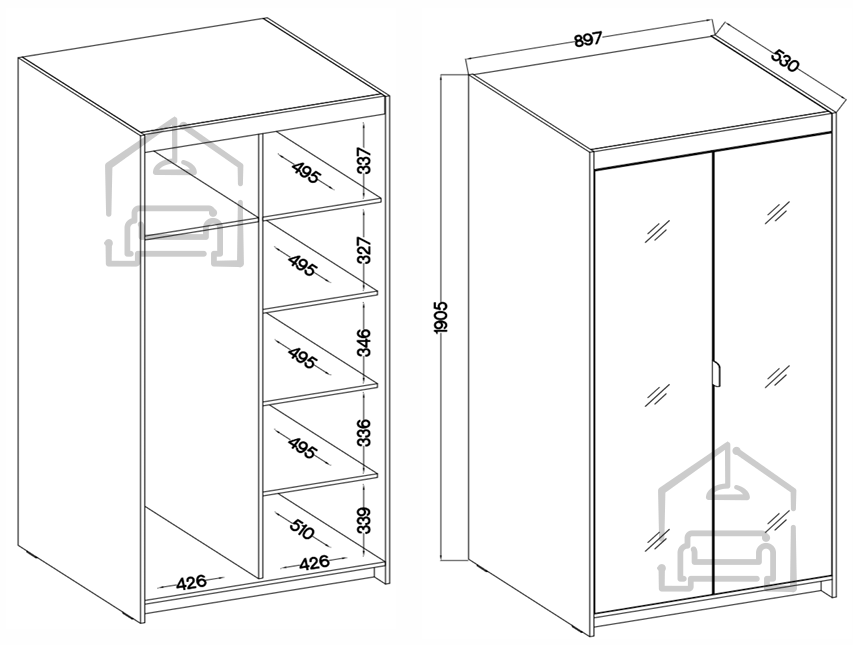 Omara Elena 2D združuje funkcionalnost in estetiko. Dvokrilna zasnova omogoča pregledno razporeditev notranjosti, vgrajeno ogledalo na enem od vrat pa poskrbi, da je vsakodnevno oblačenje še bolj priročno. Ogledalo ne služi le praktičnemu namenu, temveč tudi optično poveča prostor in mu doda svetlobo. Zaradi svoje kompaktne širine 89,7 cm in višine 190,5 cm je ta omara primerna tudi za manjše prostore, kjer je vsak centimeter pomemben.