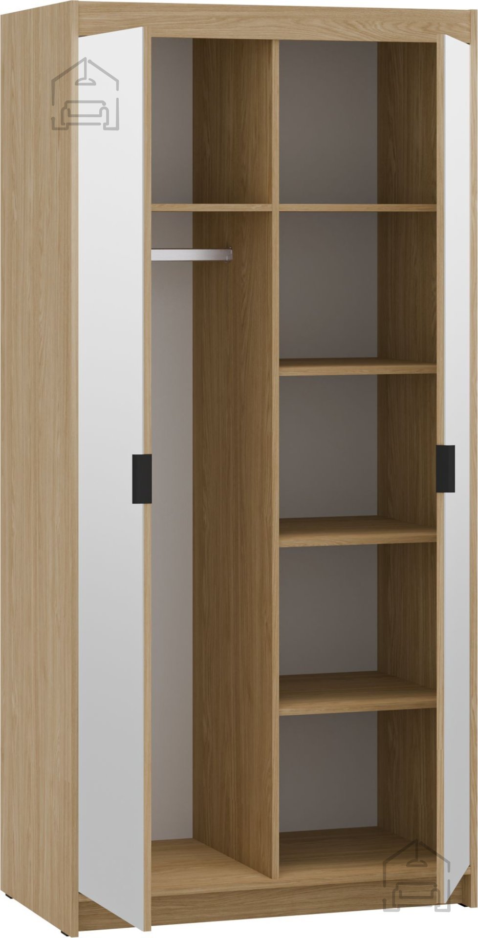 Oljen hrast odtenek ustvarja občutek miru in topline. Takšna barva se lepo ujema z drugimi naravnimi toni lesa, belimi stenami ali kontrastnimi temnejšimi odtenki pohištva. Zaradi svoje nevtralnosti je omara Elena 2D odlična izbira za vsak interier, ne glede na to, ali gre za sodoben, minimalističen ali klasičen slog opreme.