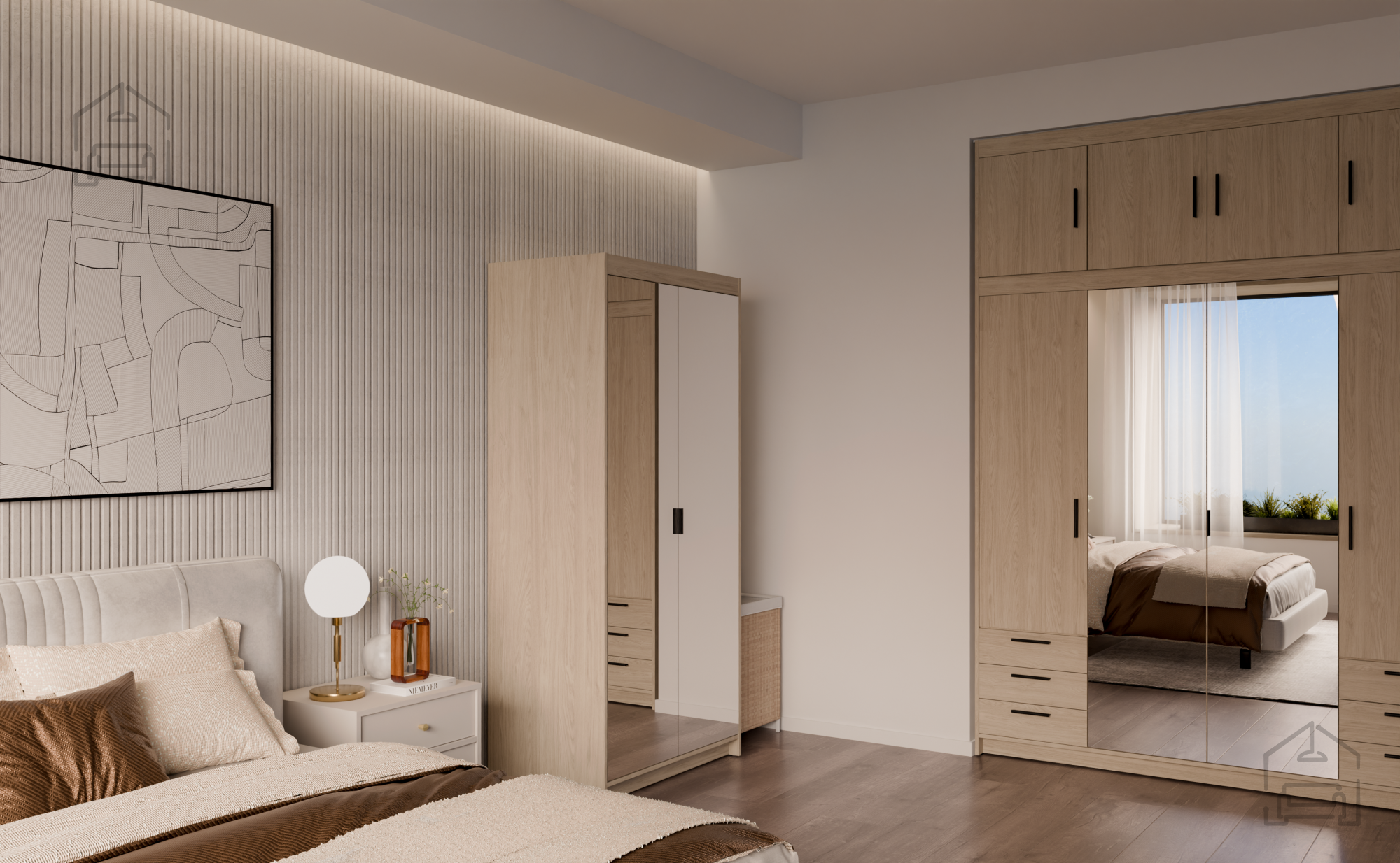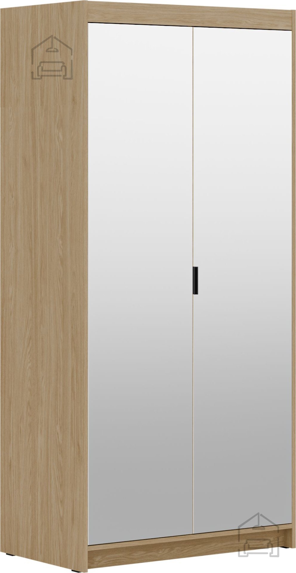Omara Elena 2D združuje funkcionalnost in estetiko. Dvokrilna zasnova omogoča pregledno razporeditev notranjosti, vgrajeno ogledalo na enem od vrat pa poskrbi, da je vsakodnevno oblačenje še bolj priročno. Ogledalo ne služi le praktičnemu namenu, temveč tudi optično poveča prostor in mu doda svetlobo. Zaradi svoje kompaktne širine 89,7 cm in višine 190,5 cm je ta omara primerna tudi za manjše prostore, kjer je vsak centimeter pomemben.
