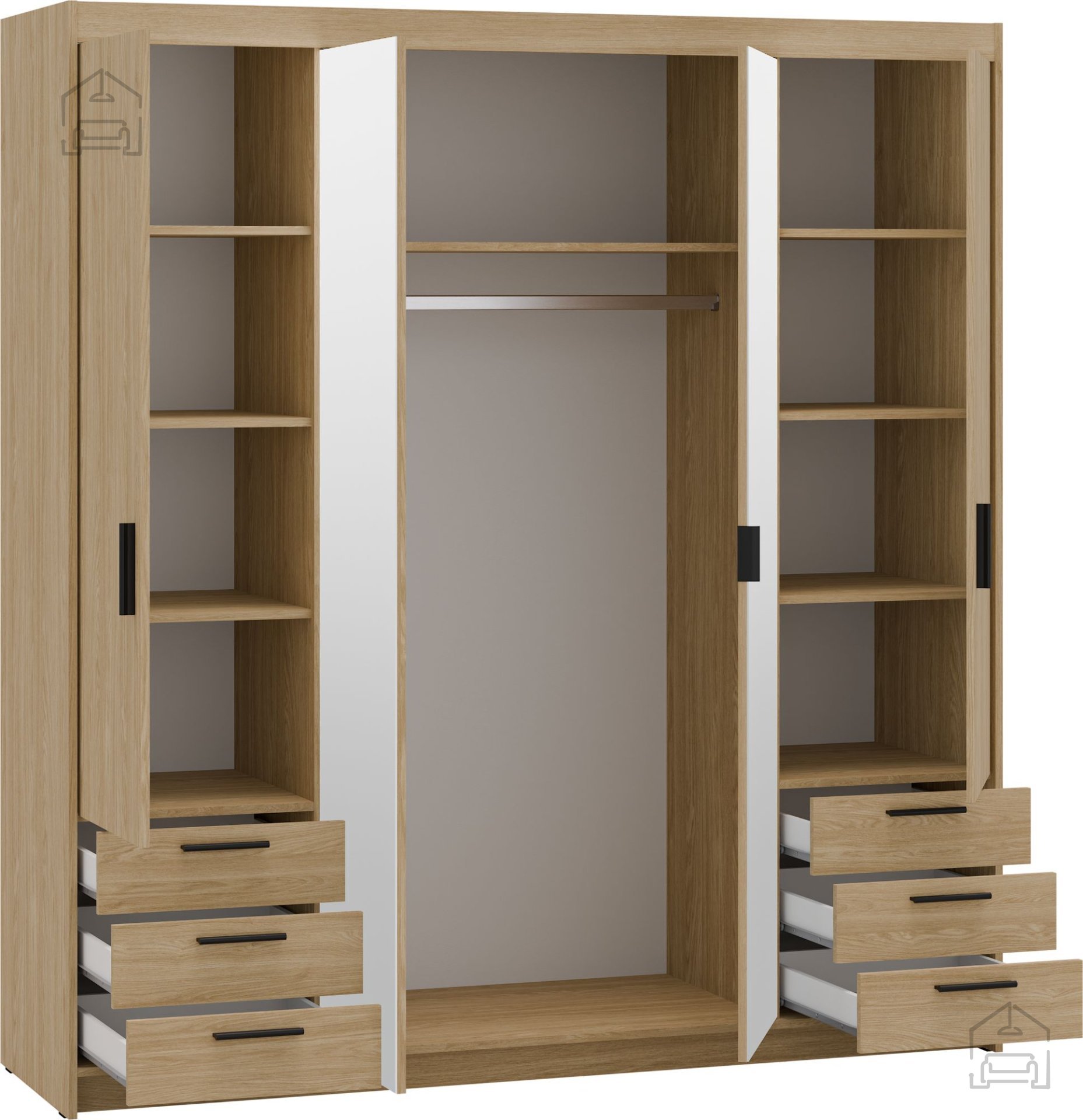 Garderobna omara Elena DO04 6S – Stolarz-Lempert je popolna izbira za vse, ki si želijo prefinjenega, praktičnega in trajnega pohištvenega kosa. Njena kombinacija barvne topline, funkcionalne notranje razporeditve in kakovostne izdelave bo vašemu domu dodala pridih urejenosti in elegance.