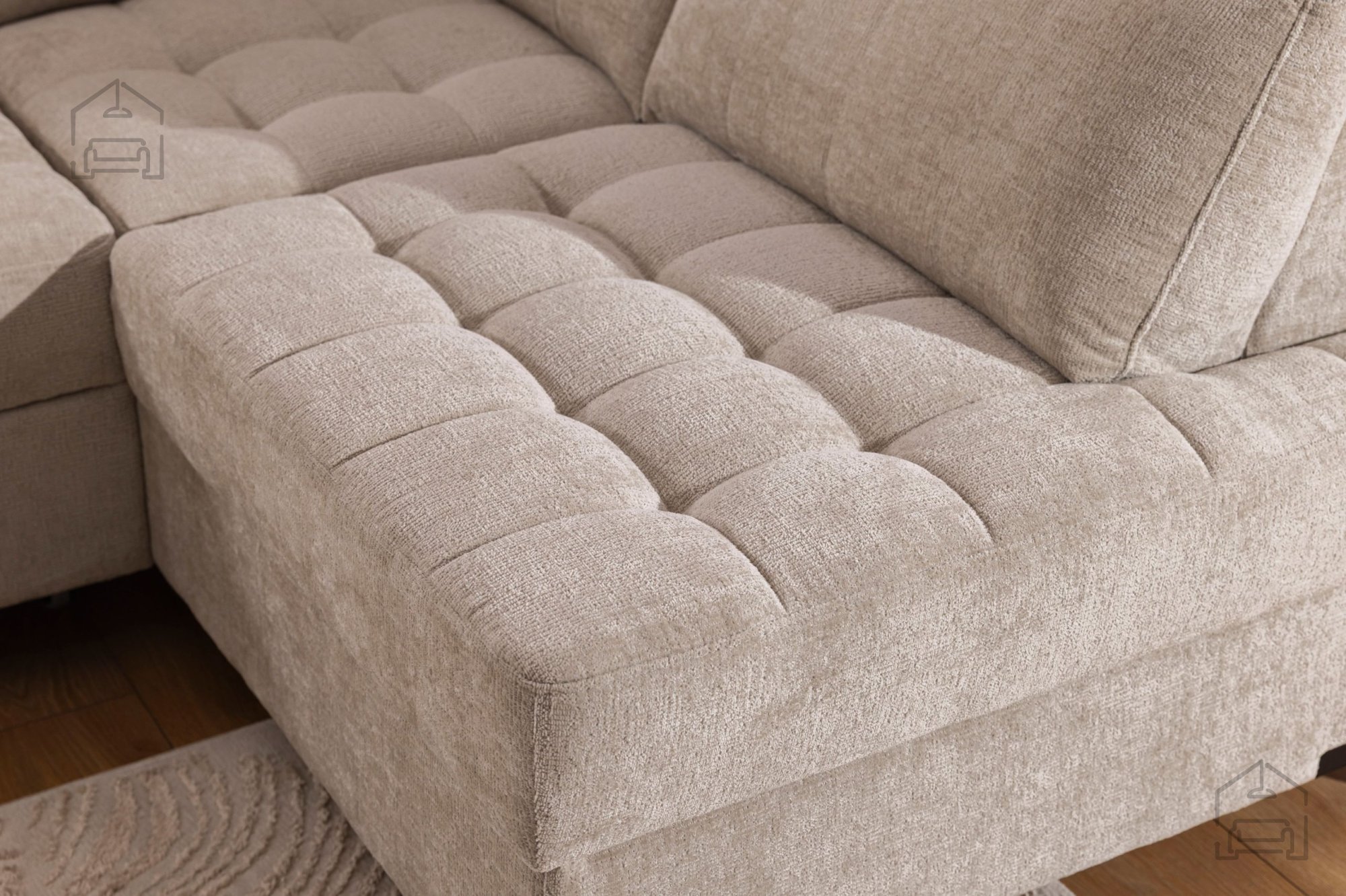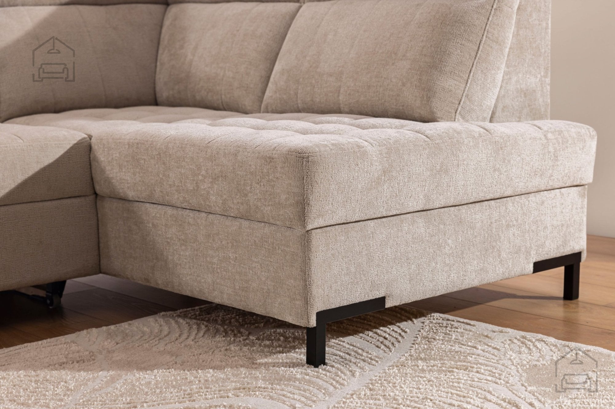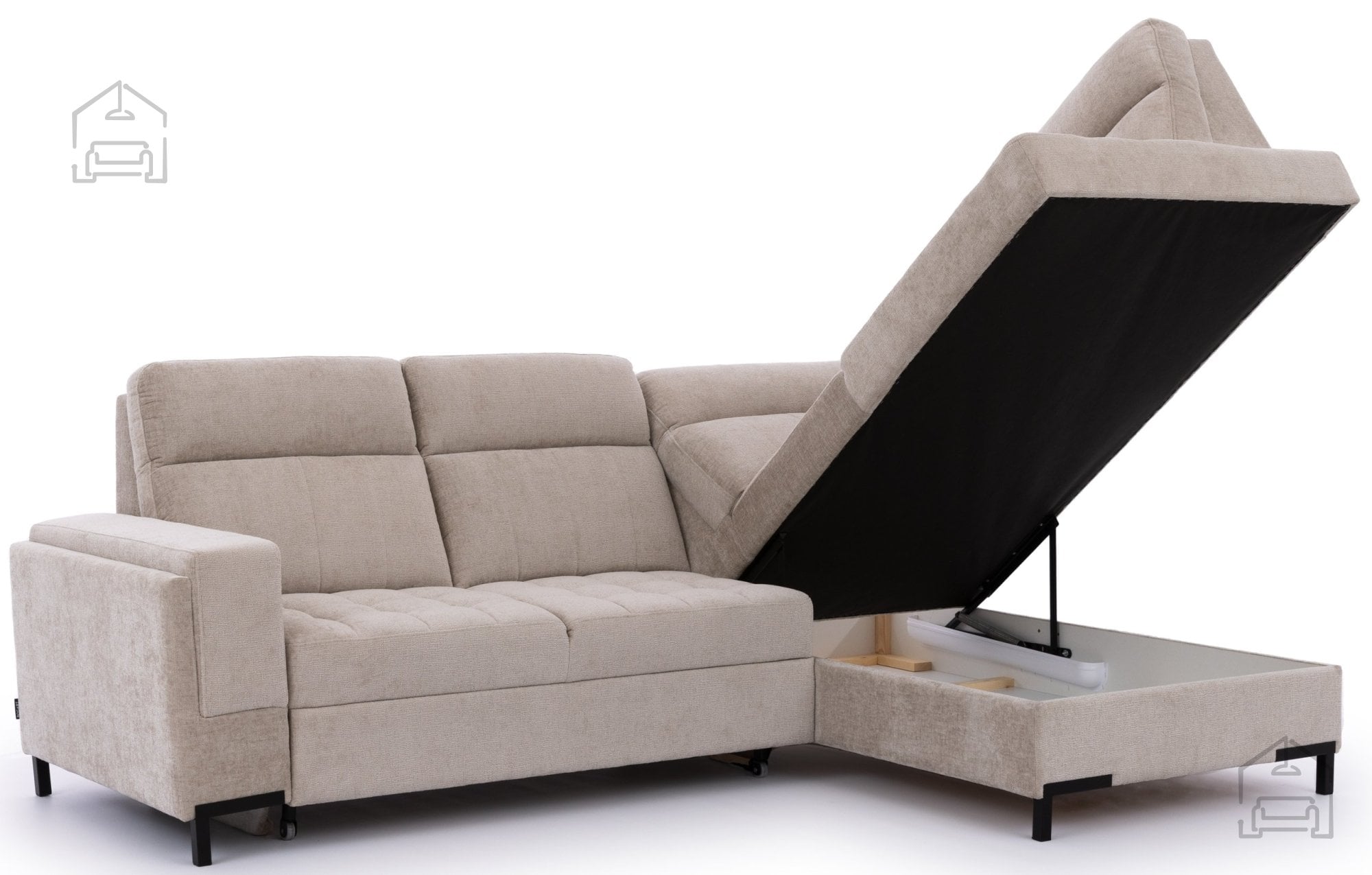 Višina sedeža znaša 45 cm, kar omogoča udoben vstop in izstop iz garniture. Maksimalna obremenitev posameznega sedežnega mesta je 150 kg, kar kaže na trdnost in kakovost uporabljenih materialov. Poleg tega ima sedežna tudi predal za posteljnino, ki je praktična rešitev za shranjevanje odej, blazin ali drugih dodatkov, ki jih želite imeti vedno pri roki.