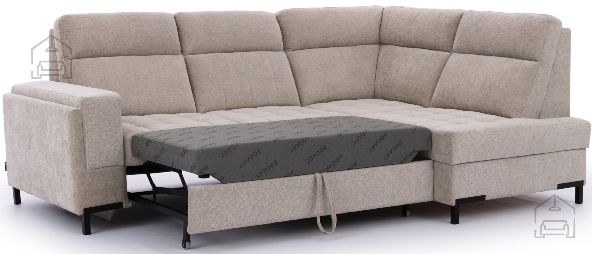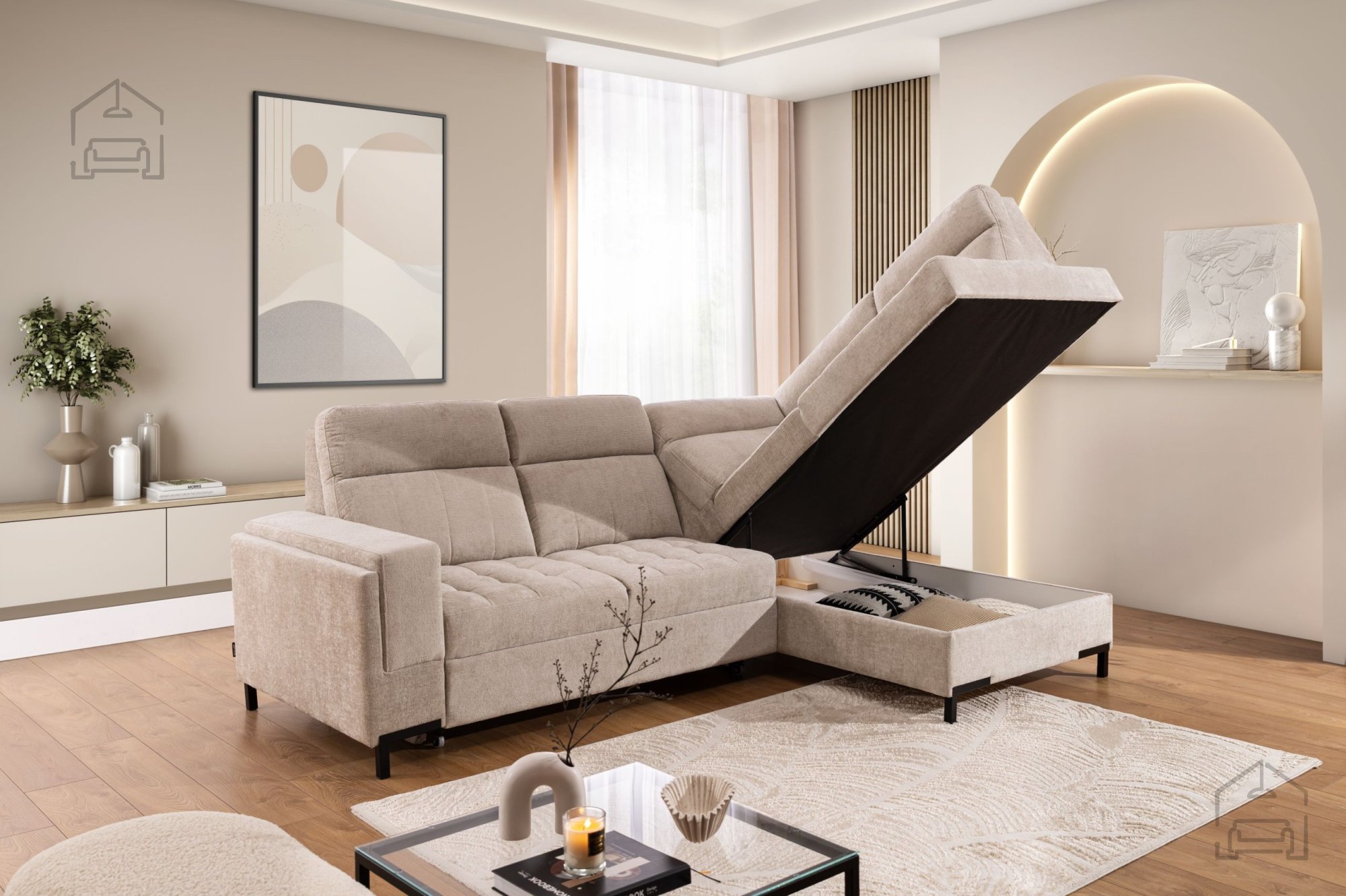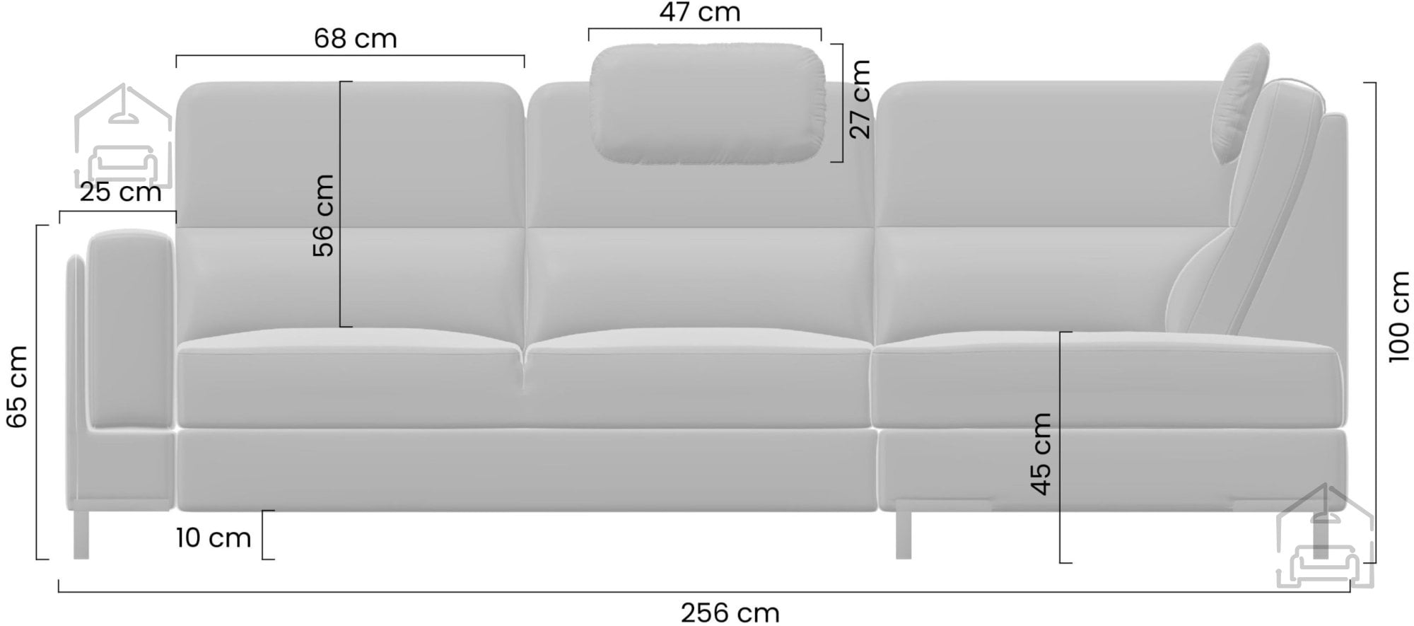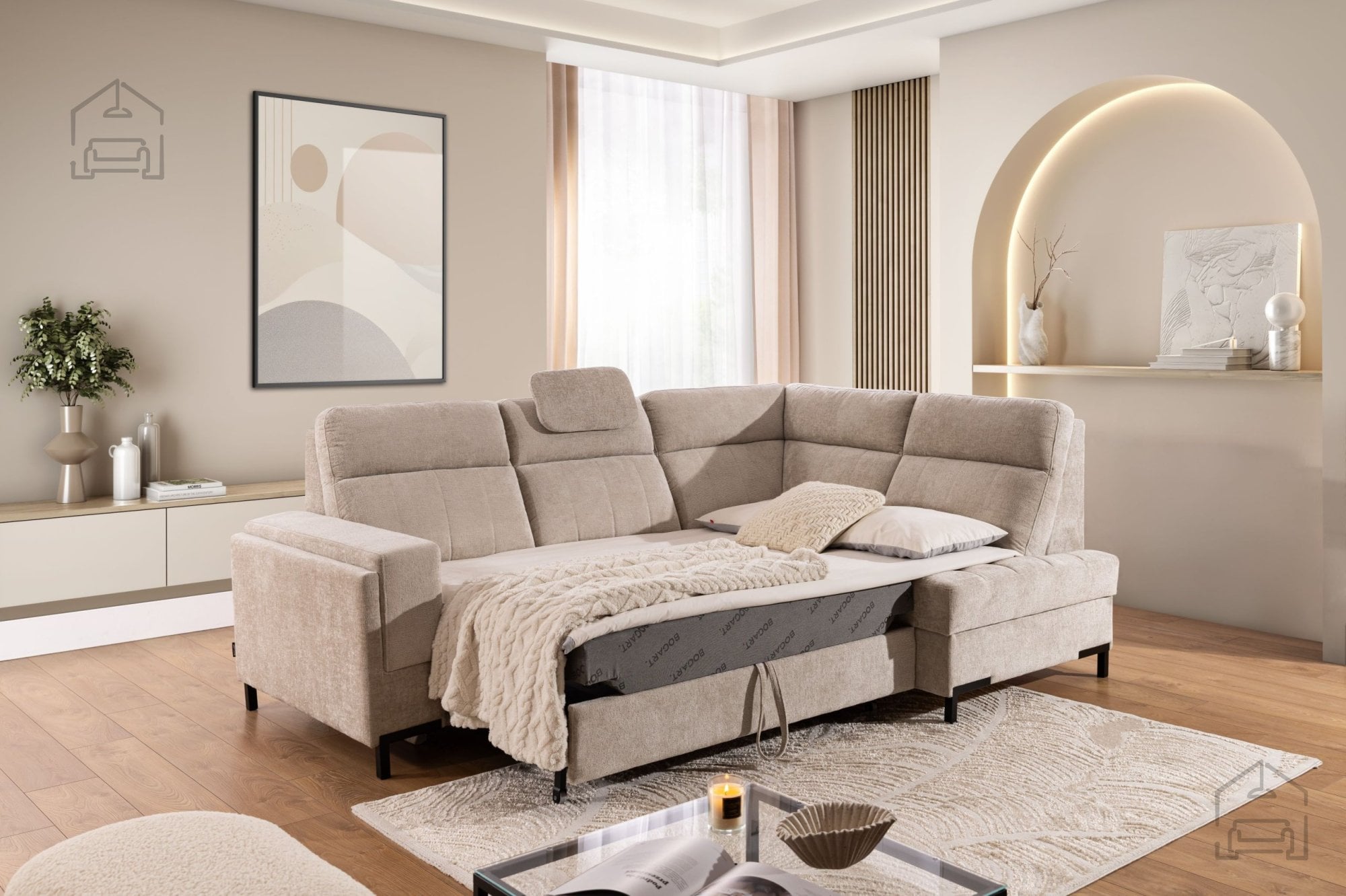 Kotna sedežna garnitura Gespano B znamke Sedežne garniture Bogart združuje sodobno oblikovanje in premišljeno funkcionalnost. Izdelana je v Poljski, v tovarni, ki je znana po kakovostni izdelavi oblazinjenega pohištva. S svojo dimenzijo 256x180x100 cm ponuja udobno sedenje za vso družino, obenem pa se s pomočjo praktičnega mehanizma Dolphin hitro spremeni v prostorno ležišče velikosti 188x122 cm. Garnitura je popolna izbira za moderne dnevne prostore, kjer je pomembno tako udobje kot estetika.