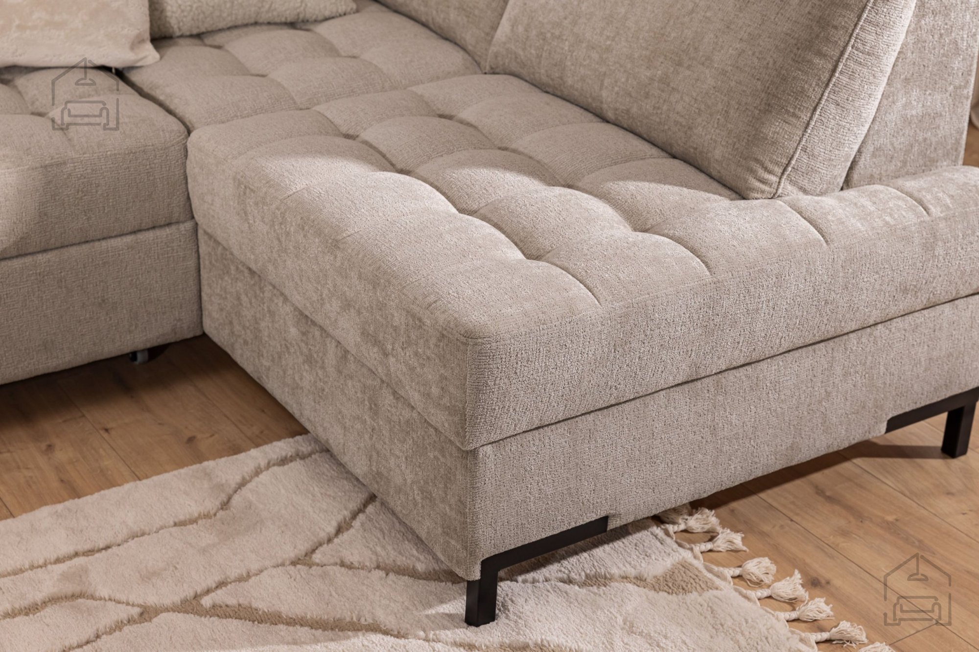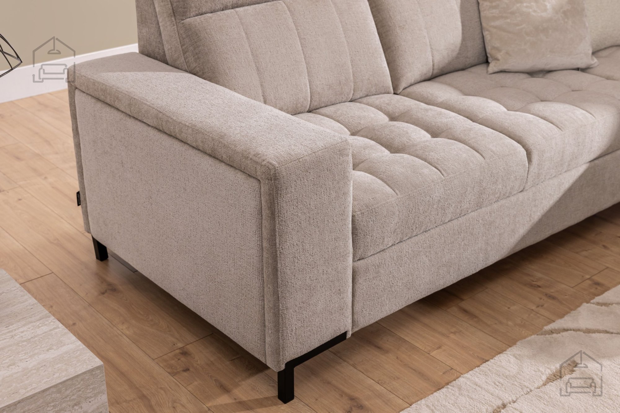Garnitura Gespano C je zasnovana za tiste, ki iščejo kombinacijo udobja, funkcionalnosti in sodobne oblike. Zahvaljujoč kakovostnim materialom in premišljeni konstrukciji ponuja dolgotrajno uporabo brez izgube oblike ali udobja. Mehanizem Dolphin omogoča, da jo preprosto spremenite v ležišče, kadar pričakujete goste, medtem ko prostor za shranjevanje ohranja dnevno sobo urejeno.