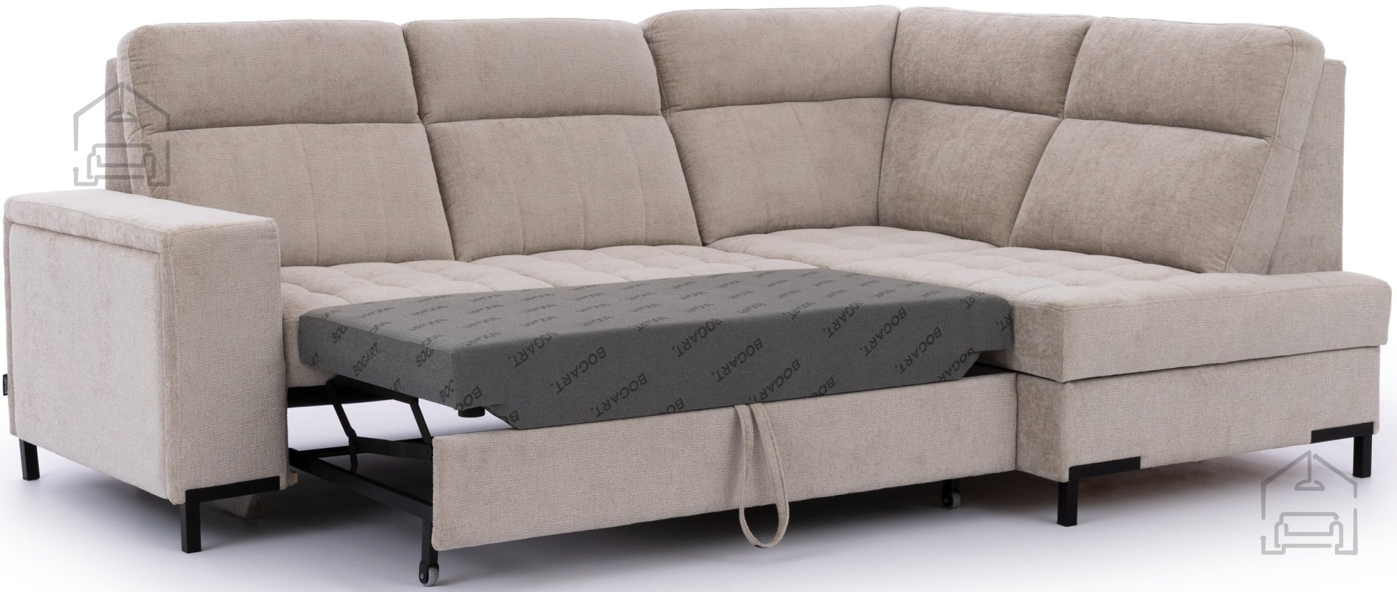 Ena od ključnih prednosti modela Gespano C je Dolphin mehanizem, ki omogoča preprosto in hitro raztegovanje v ležišče. Z enim gibom se spodnji del izvleče in dvigne na enako višino kot sedežni del, s čimer nastane enotna spalna površina. Velikost ležalne površine, 188x122 cm, je primerna za eno ali dve osebi, odvisno od potreb. Pod sedežnim delom je integriran predal za posteljnino, v katerem lahko shranjujete odeje, blazine ali rjuhe, s čimer prihranite prostor v omarah.