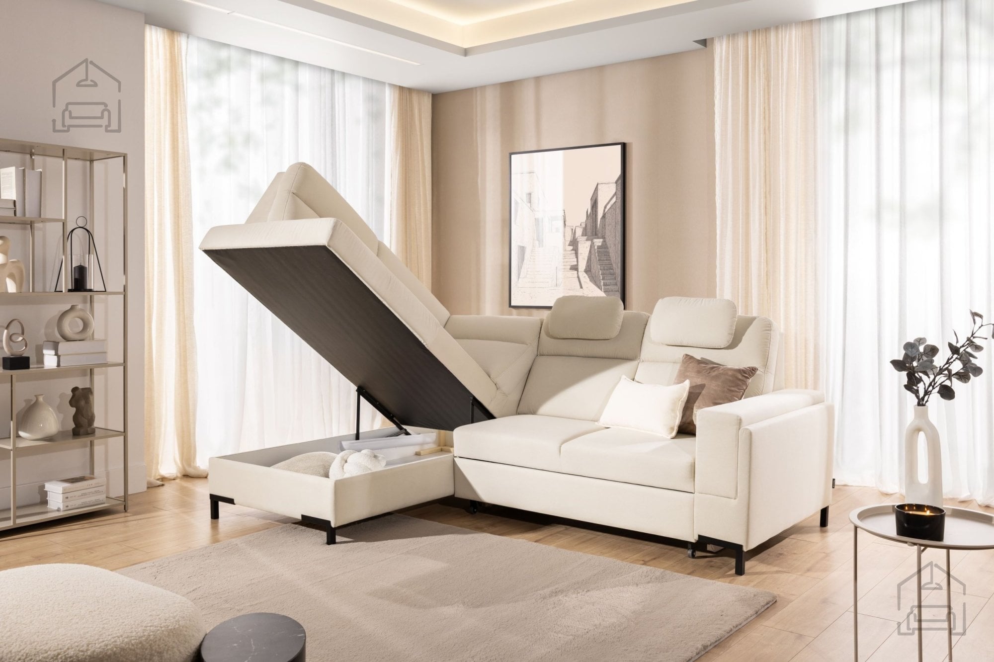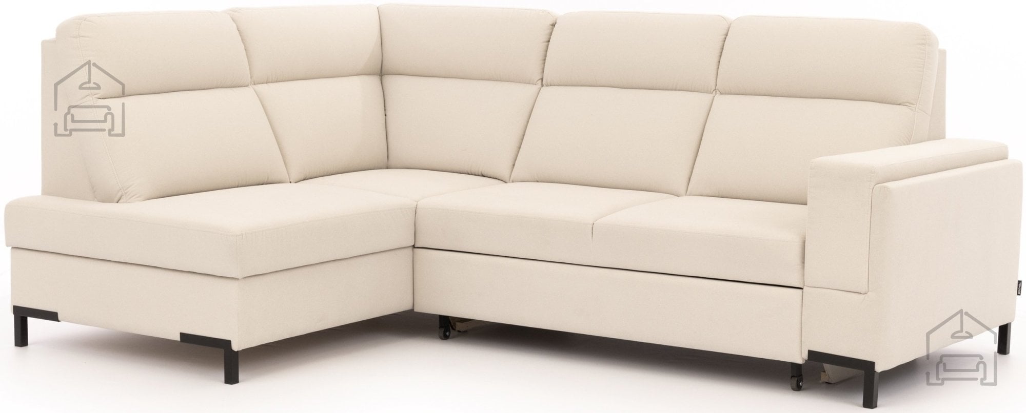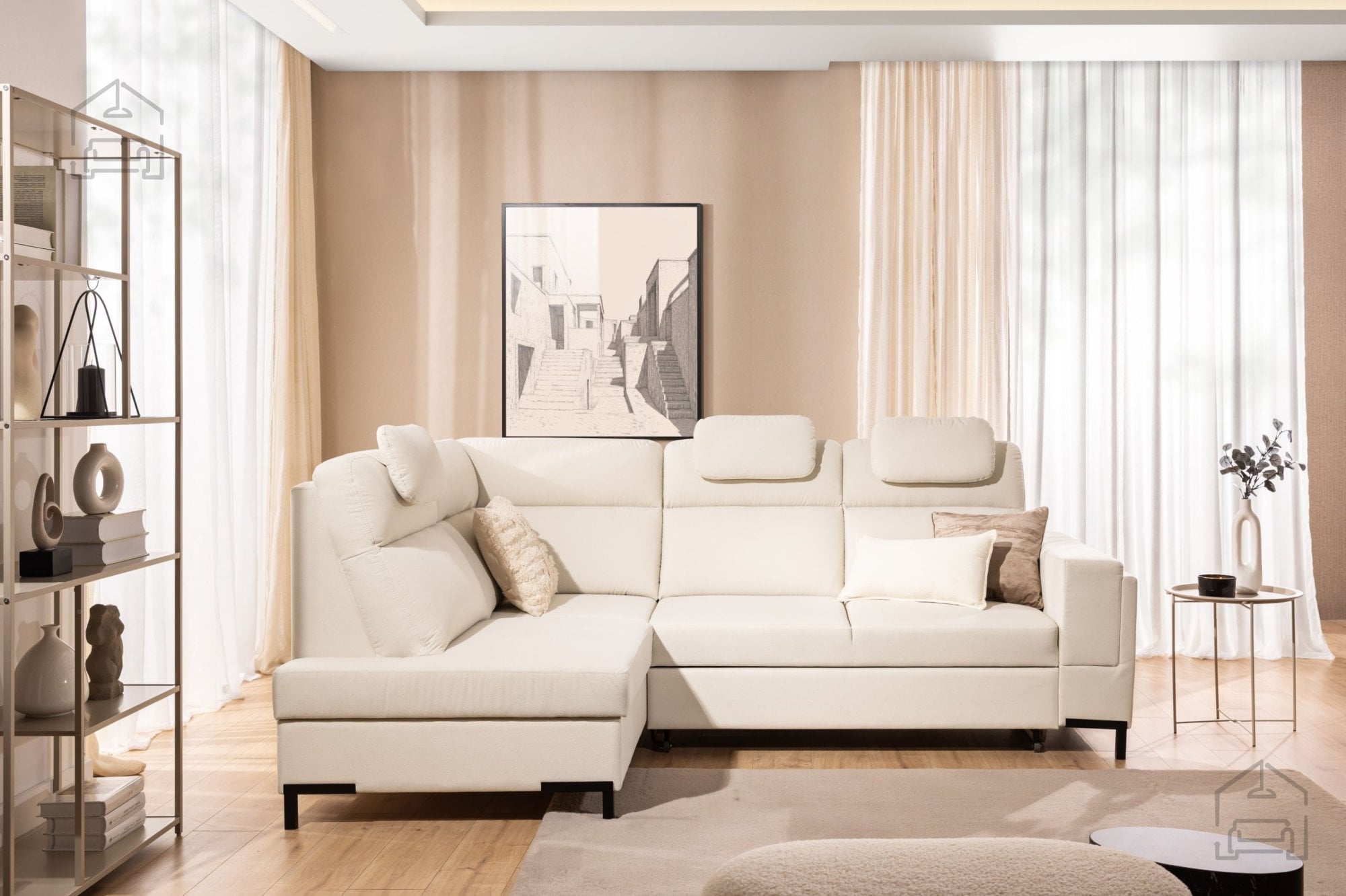 Kotna sedežna garnitura Loario B znamke Bogart združuje sodoben videz, udobje in funkcionalnost v elegantno rešitev za dnevni prostor. Izdelana je v Poljski in se ponaša z natančno izdelavo ter kakovostnimi materiali, kot so les, iverna plošča in tkanina. S svojo obliko v postavitvi L je primerna za prostorne dnevne sobe, kjer omogoča sproščeno sedenje, druženje ali počitek. Njen mehanizem Dolphin omogoča hitro in enostavno raztegovanje v udobno ležišče, kar jo spreminja v praktično rešitev za goste ali vsakodnevno uporabo.