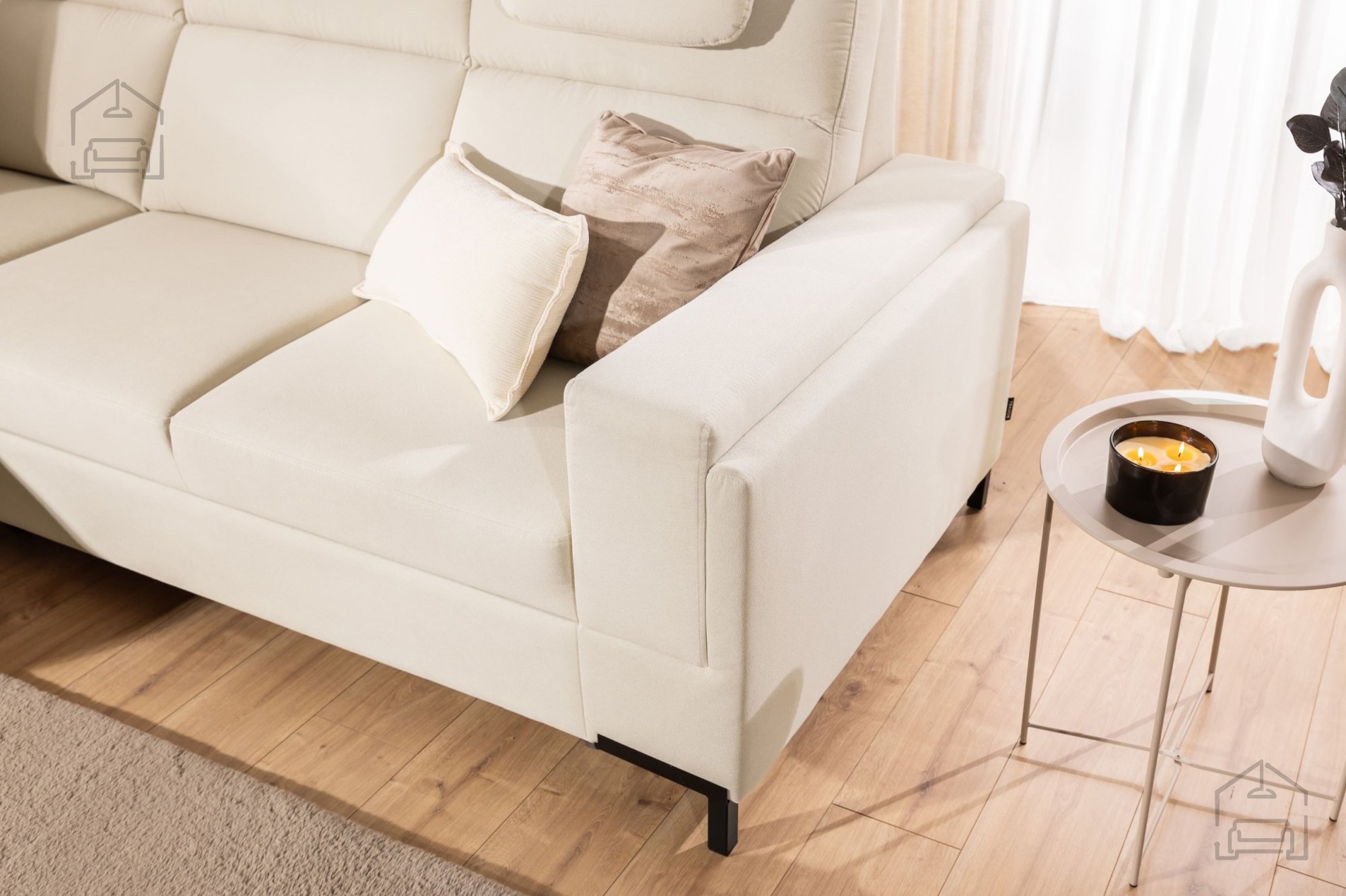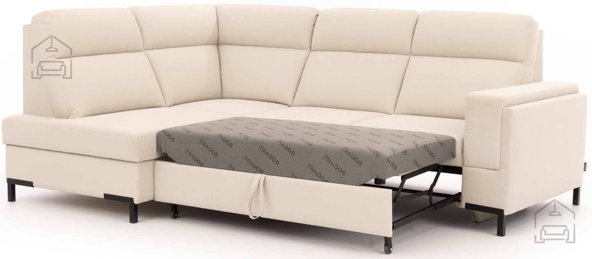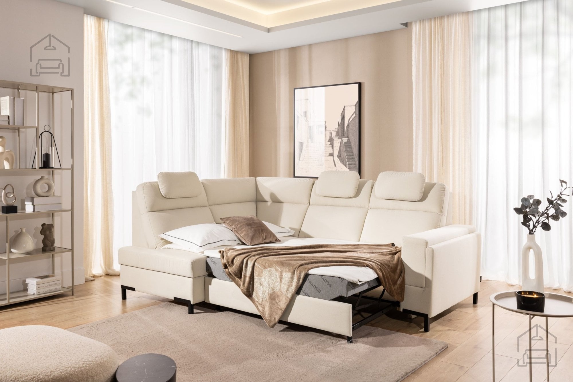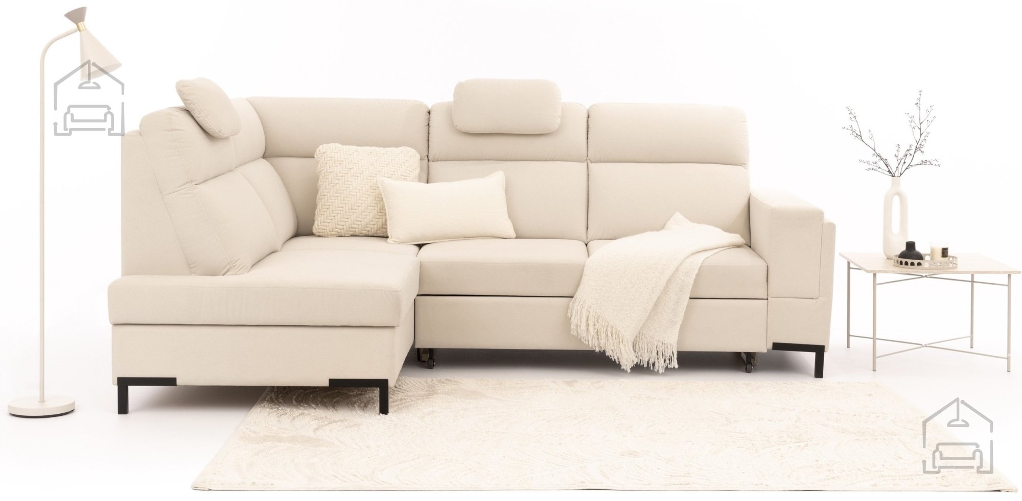 Kotna sedežna garnitura Loario B znamke Bogart združuje sodoben videz, udobje in funkcionalnost v elegantno rešitev za dnevni prostor. Izdelana je v Poljski in se ponaša z natančno izdelavo ter kakovostnimi materiali, kot so les, iverna plošča in tkanina. S svojo obliko v postavitvi L je primerna za prostorne dnevne sobe, kjer omogoča sproščeno sedenje, druženje ali počitek. Njen mehanizem Dolphin omogoča hitro in enostavno raztegovanje v udobno ležišče, kar jo spreminja v praktično rešitev za goste ali vsakodnevno uporabo.