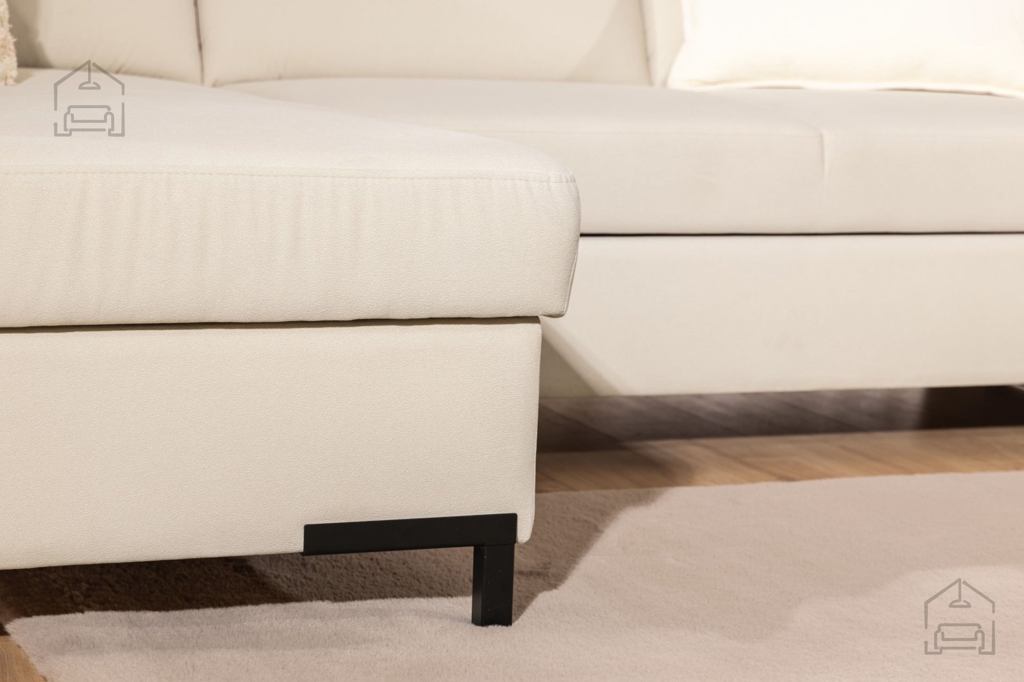 Garnitura je oblazinjena v kakovostno tkanino, ki je prijetna na dotik in primerna za vsakodnevno uporabo. Tkanina je na voljo v več barvah, zato se lahko garnitura prilagodi različnim slogom notranje opreme – od minimalističnih do toplih, domačnih ambientov. Kovinske noge in čiste linije poudarjajo moderen slog, medtem ko mehki robovi in prostoren sediščni del ustvarjajo prijeten občutek udobja in topline.