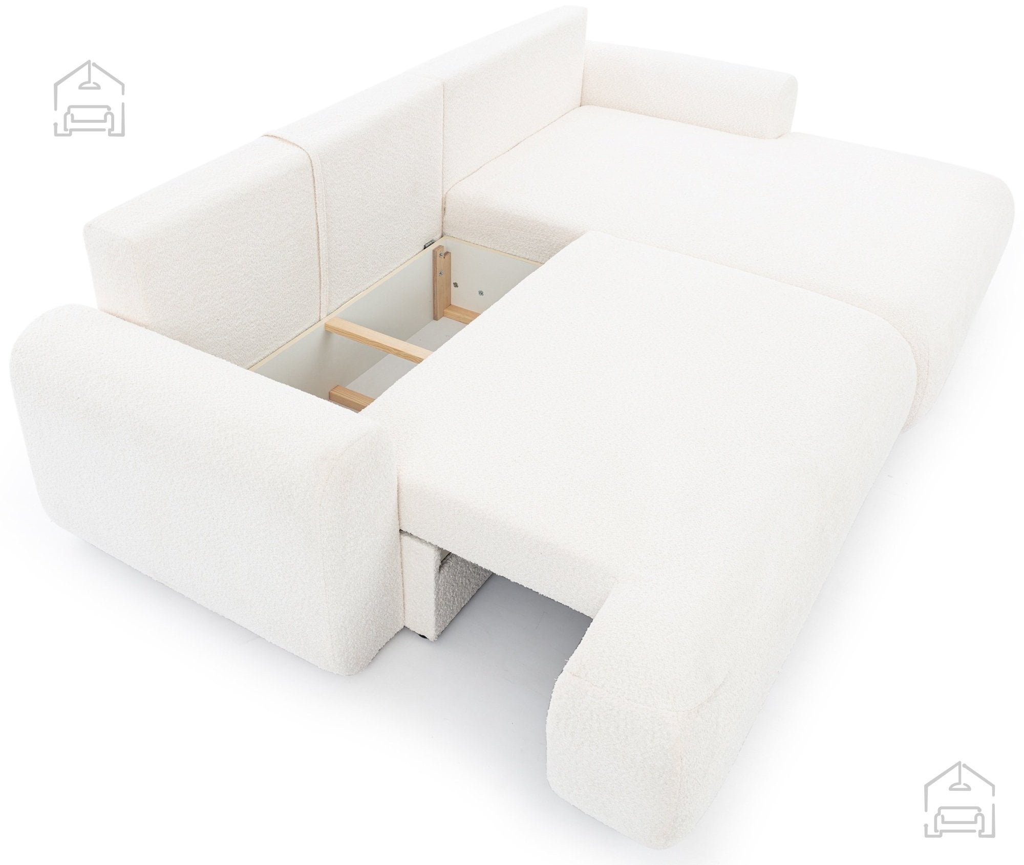 Model Lotulis Mini je zasnovan z mislijo na praktičnost. Vgrajen predal za posteljnino omogoča priročno shranjevanje odej, vzglavnikov ali posteljnine, kar pripomore k večji urejenosti dnevnega prostora. Višina sedeža 43 cm omogoča udoben vstop in vstajanje, noge iz plastike višine 3 cm pa zagotavljajo stabilno postavitev in enostavno čiščenje pod garnituro.