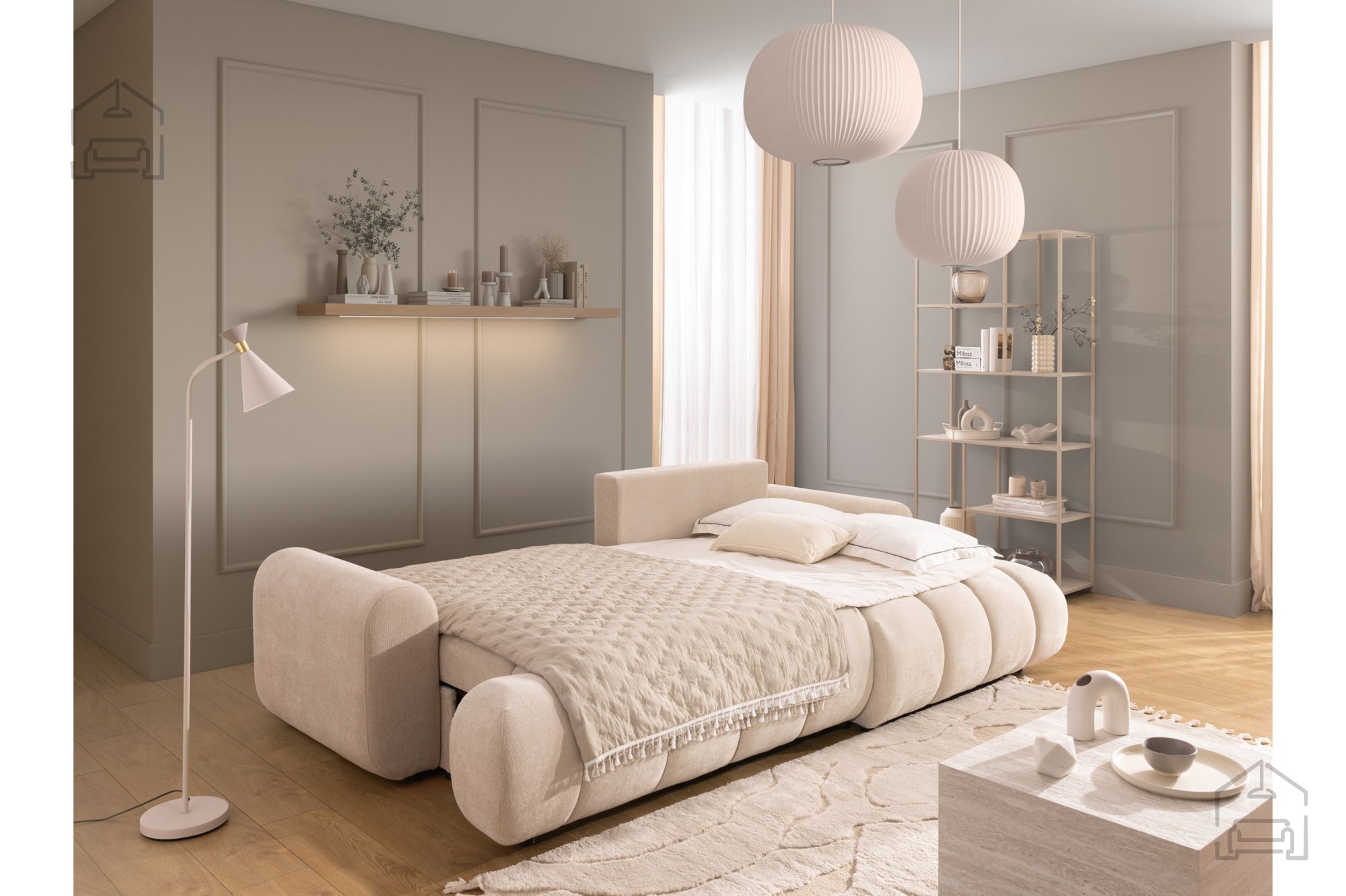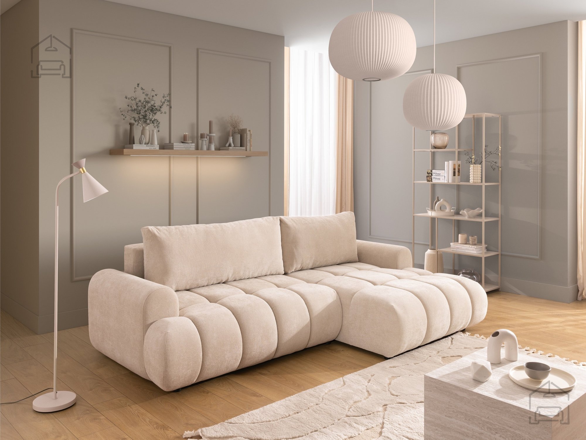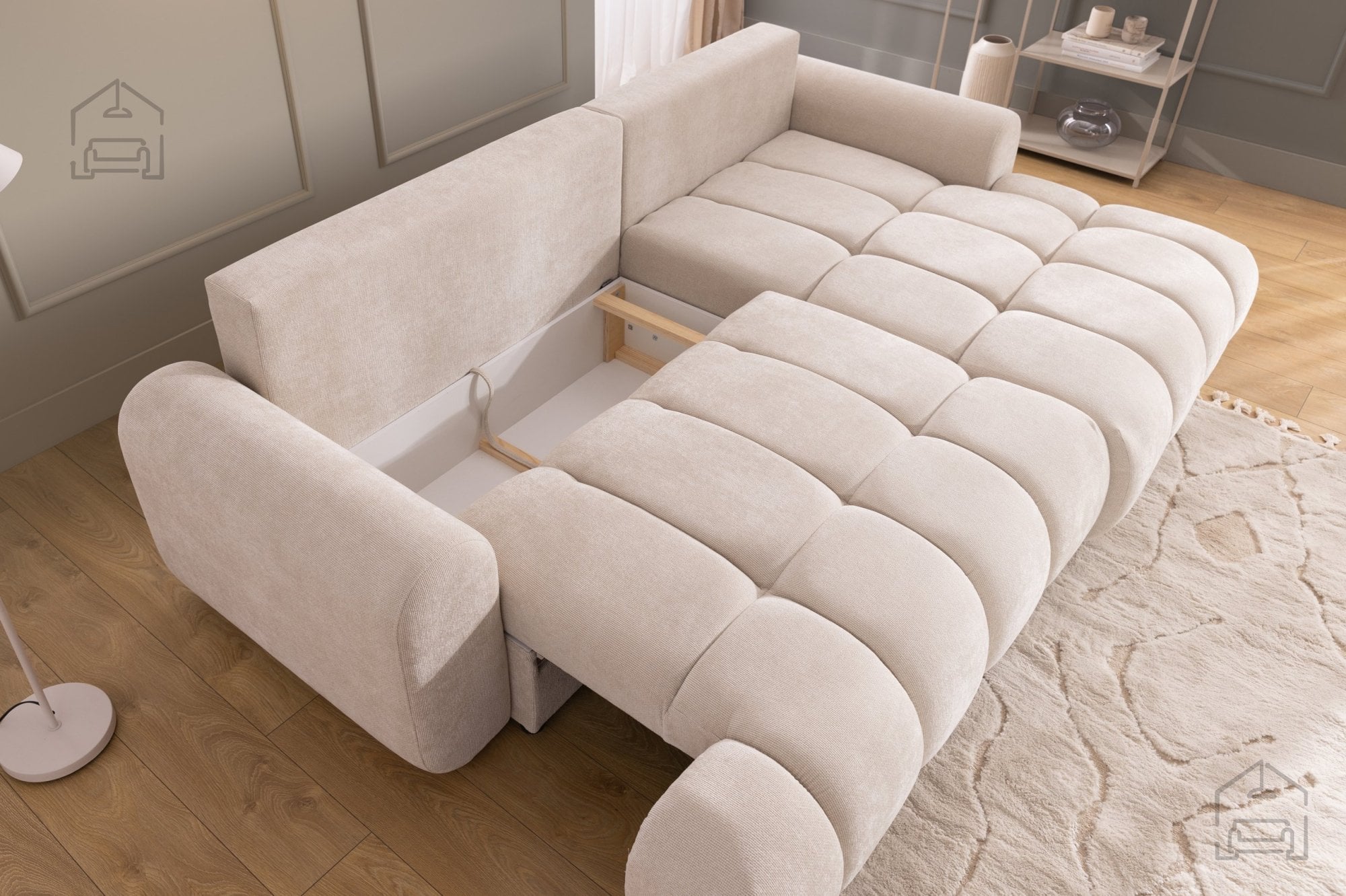 Pod sedežnim delom se nahaja praktičen predal za posteljnino, v katerega lahko shranite odeje, vzglavnike ali sezonske prevleke. Tako prihranite prostor v omarah in imate vse, kar potrebujete za hitro preobrazbo kavča v posteljo, vedno pri roki.