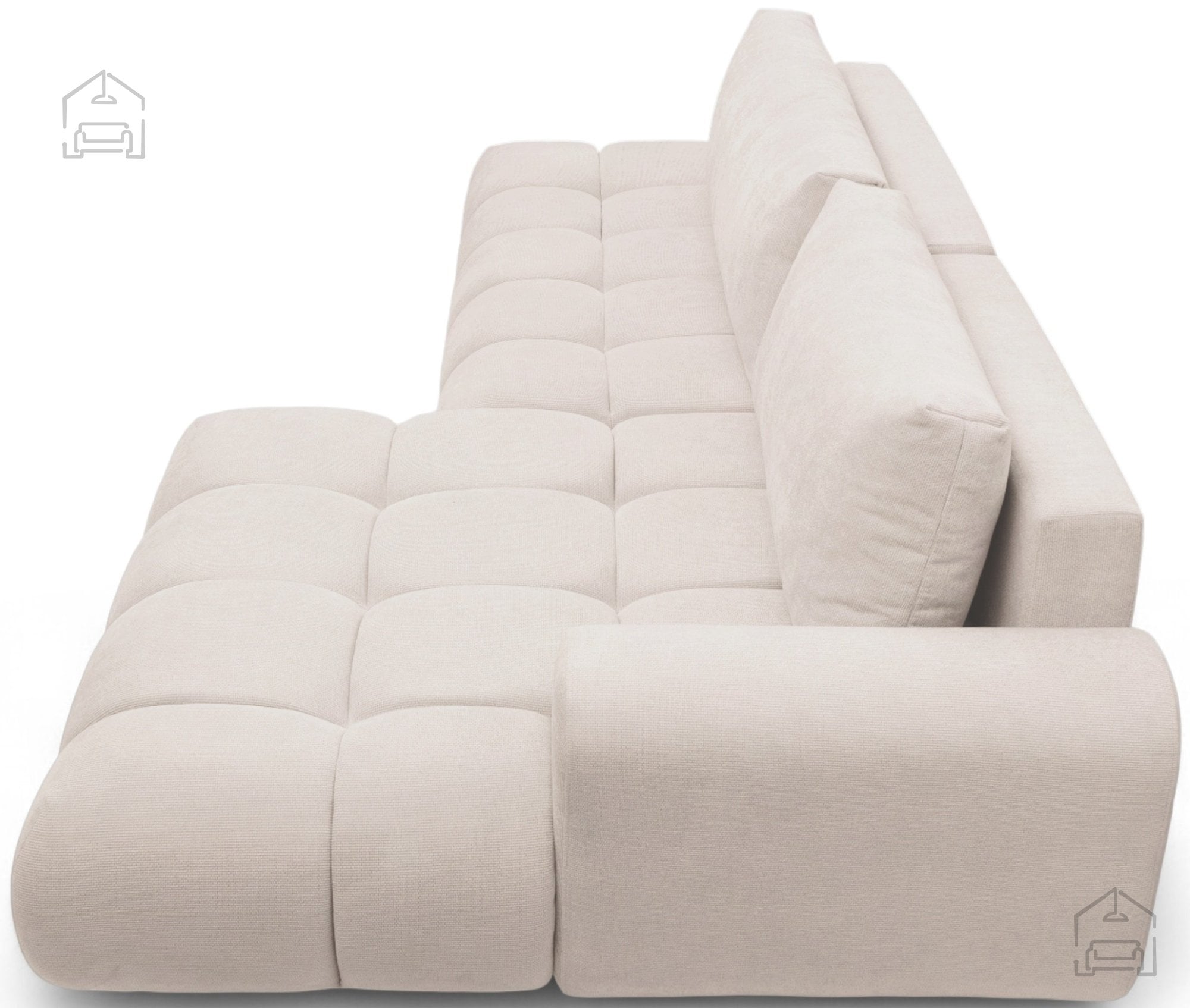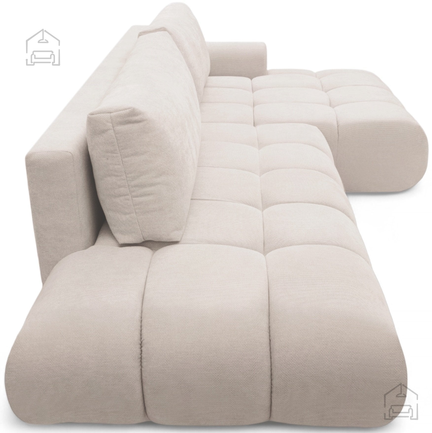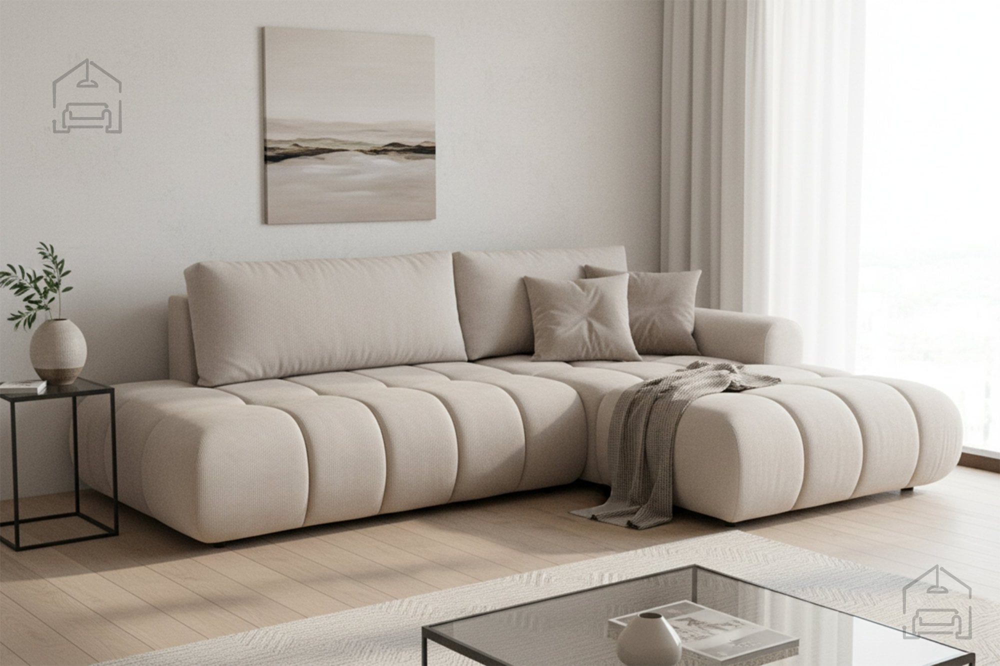 Videz garniture Lutario L II je sodoben in čistih linij, zato se lepo poda v različne interierje – od skandinavskega minimalizma do toplejših, klasično opremljenih prostorov. Zaradi svoje kotne postavitve učinkovito izkoristi prostor in ustvarja občutek odprtosti. V kombinaciji z dekorativnimi blazinami ali tekstilom različnih tekstur postane osrednji kos dnevne sobe, ki povezuje funkcionalnost in estetiko.