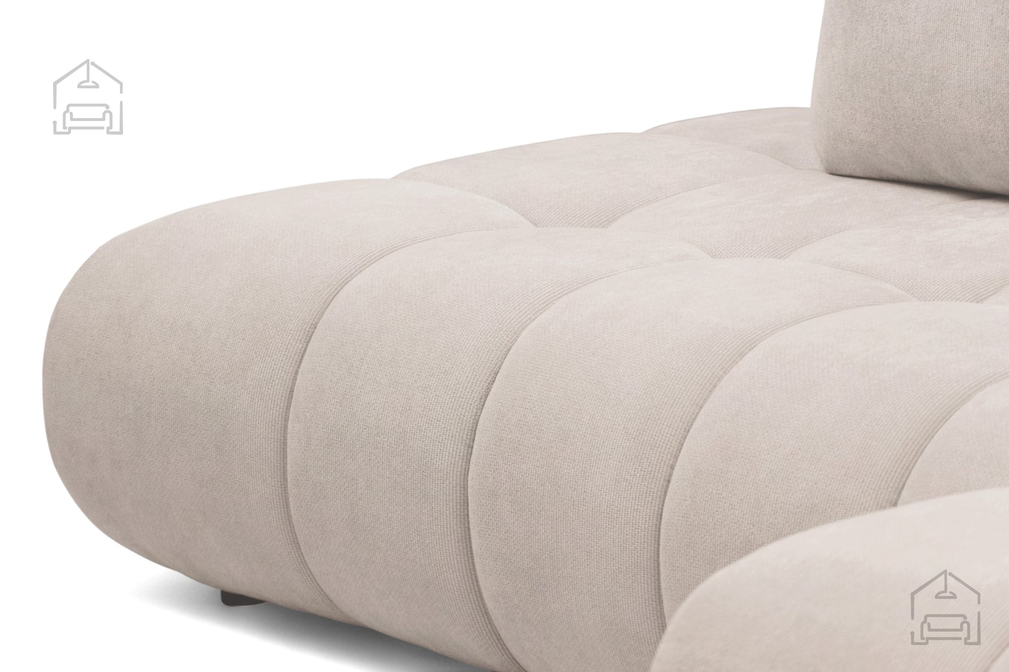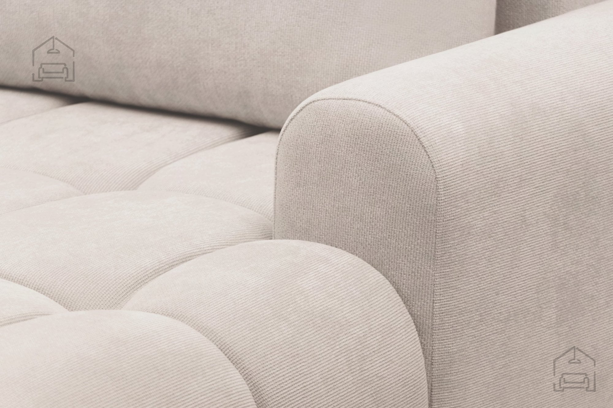 Oblazinjenje iz kakovostne tkanine je prijetno na dotik in enostavno za vzdrževanje. Izbirate lahko med več barvnimi izvedbami, kar omogoča, da garnituro uskladite s slogom vašega doma. Noge so izdelane iz trpežne plastike, visoke 3 cm, kar olajša premikanje in čiščenje pod garnituro, hkrati pa ohranja estetsko preprostost sodobnega dizajna.