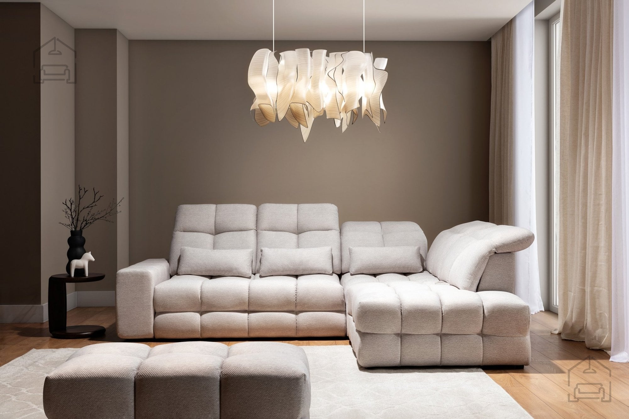 Magnelio Prestige sledi smernicam modernega stila, kjer prevladujejo preproste linije, uravnoteženi proporci in poudarek na udobju. Njegova oblika omogoča, da ga postavite v središče prostora ali uporabite kot nežno dopolnitev obstoječe sedežne garniture. Zaradi nevtralnih barvnih kombinacij in mehke tkanine se lepo ujema tako z lesenimi kot kovinskimi elementi opreme.