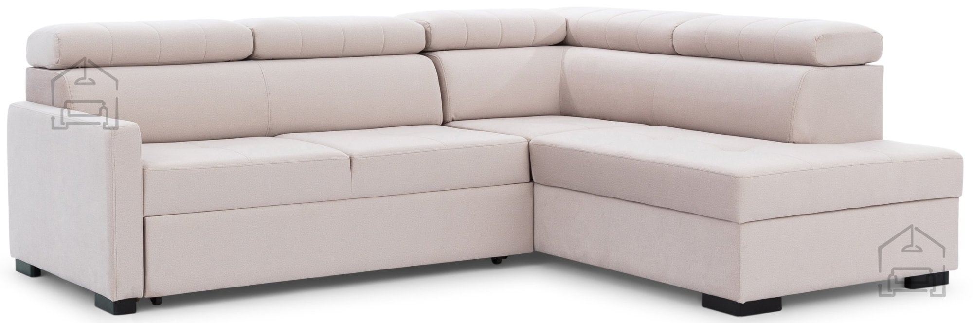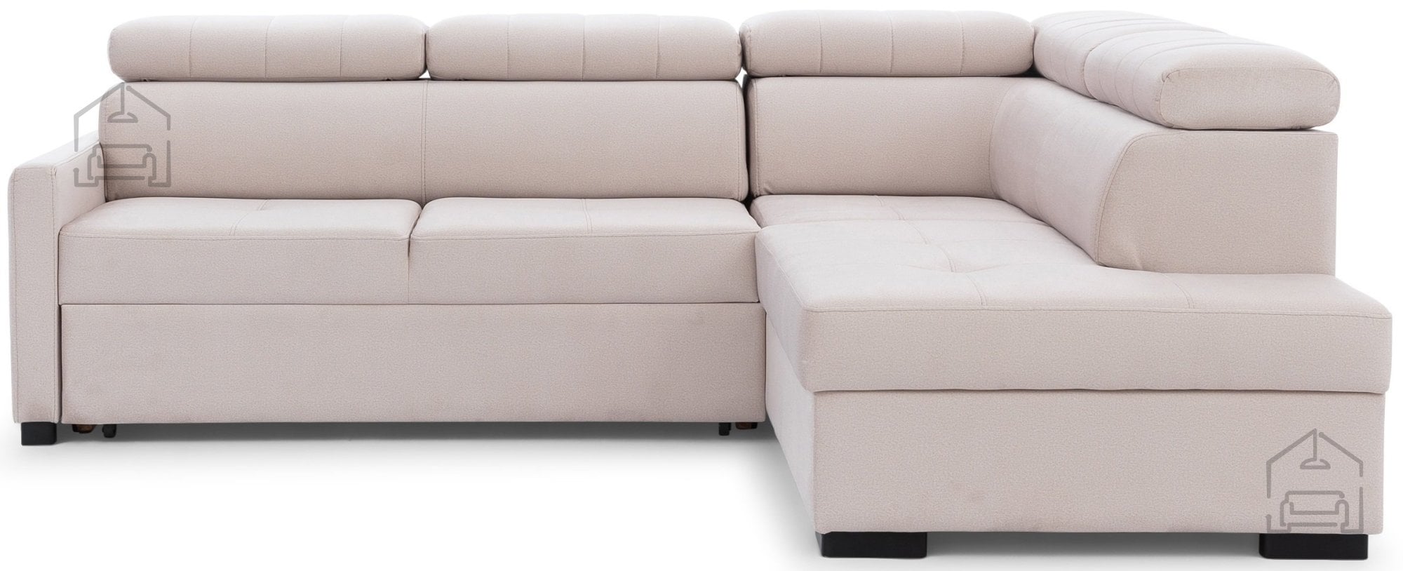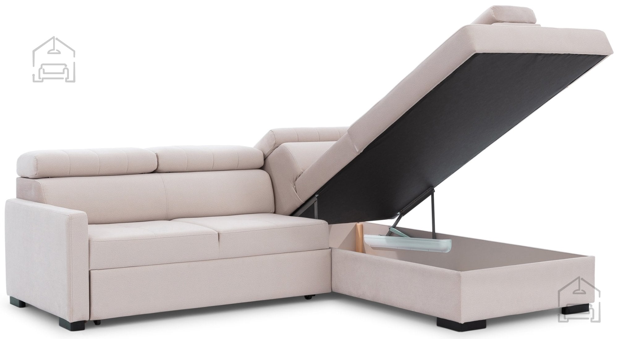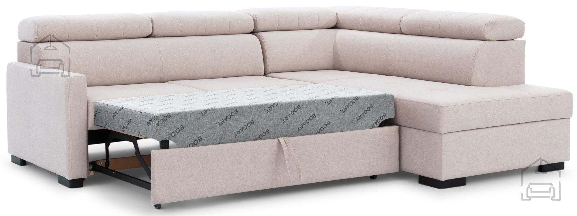 Za tiste, ki cenijo praktičnost, je v garnituro vgrajen mehanizem Dolphin, ki omogoča hitro in enostavno raztegovanje v ležišče. Po preprostem potegu spodnjega dela se sedežna spremeni v udobno posteljo z ležalno površino 199x126 cm in širino spalnega prostora 130 cm. Takšna rešitev je idealna za goste ali občasno spanje, saj se raztegljivi del izvleče z enim gibom, brez potrebe po dodatnem naporu.