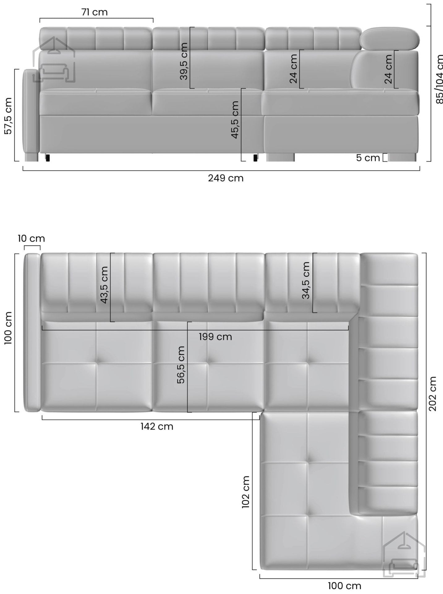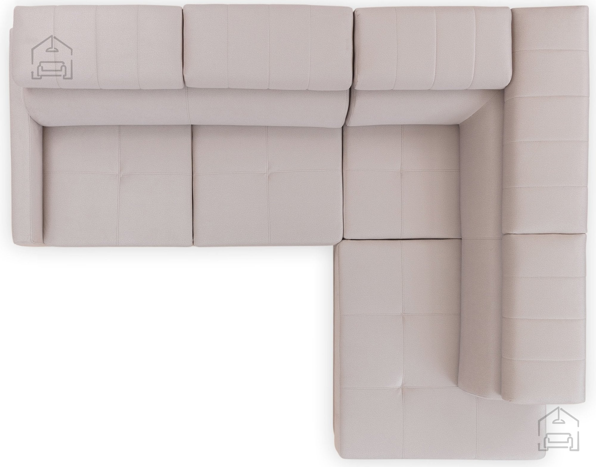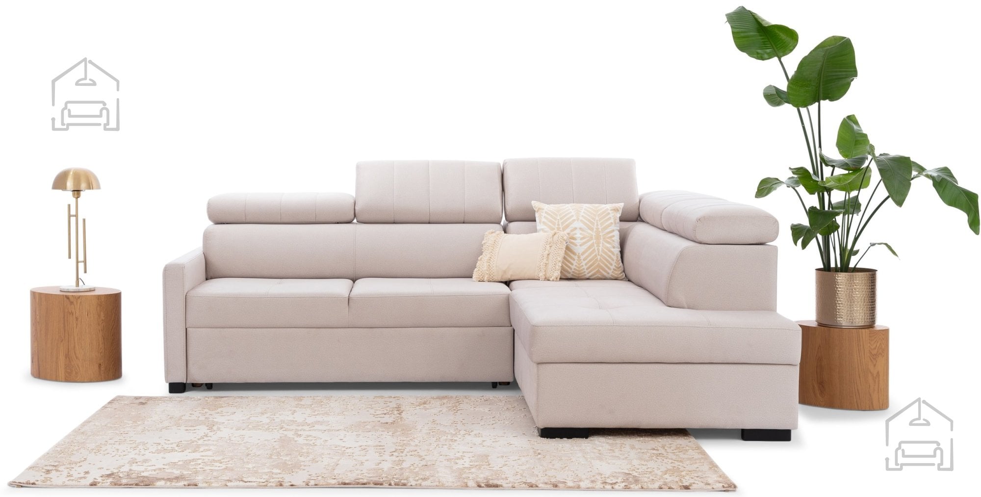 Kotna postavitev v obliki črke L omogoča učinkovito izrabo prostora. Garnitura se lahko postavi v kot prostora ali pa služi kot razmejitev med različnimi deli odprtega bivalnega prostora. Ležalni del nudi prijeten kotiček za sprostitev, branje ali gledanje televizije, medtem ko preostali del zagotavlja dovolj prostora za druženje.