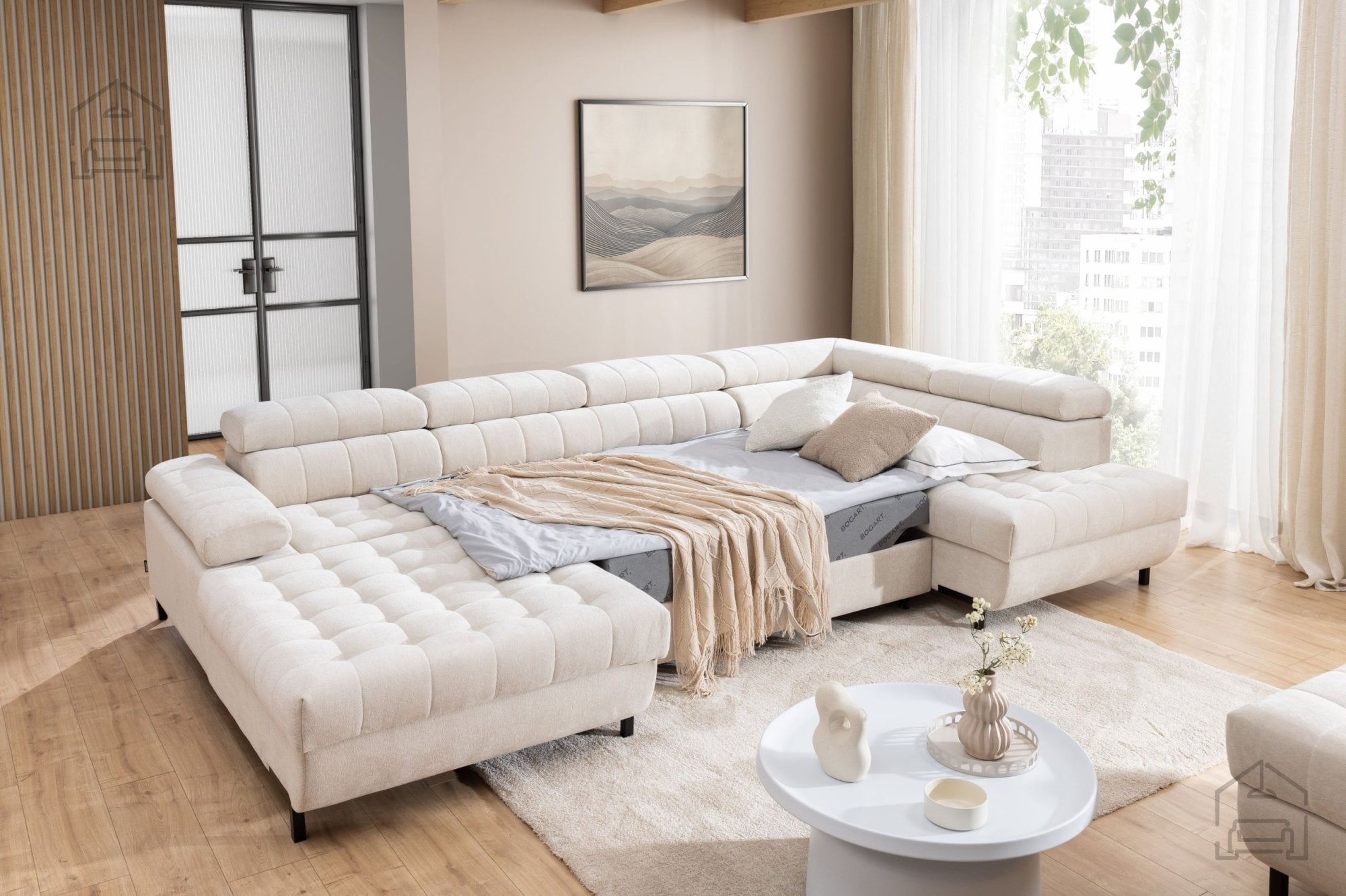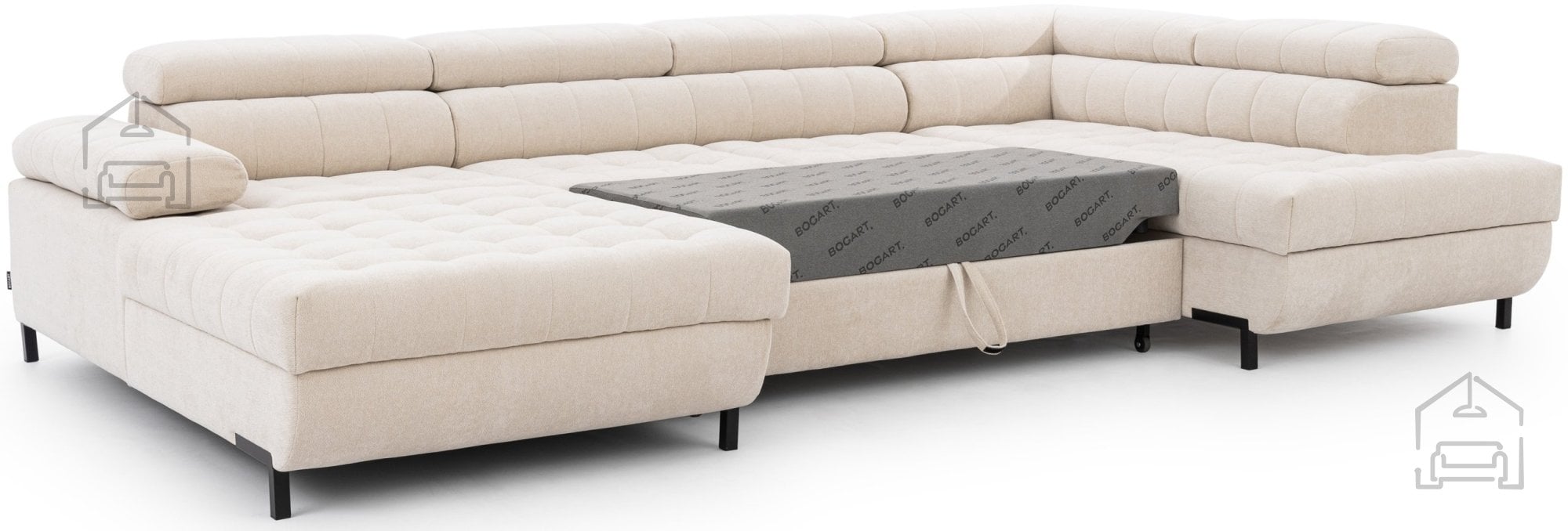 Sedežna garnitura v U obliki Tyrion II je odlična izbira za vse, ki cenijo kakovostno izdelavo, funkcionalnost in sodoben dizajn. Njena prostorna zasnova omogoča prijetno druženje, hkrati pa ponuja tudi praktično možnost spanja. S kombinacijo kakovostnih materialov, trpežne konstrukcije in elegantnega videza se brez težav vključi v vsak prostor, ne glede na slog opreme. Bogart s tem modelom dokazuje, da je mogoče združiti estetiko in uporabnost brez kompromisov.