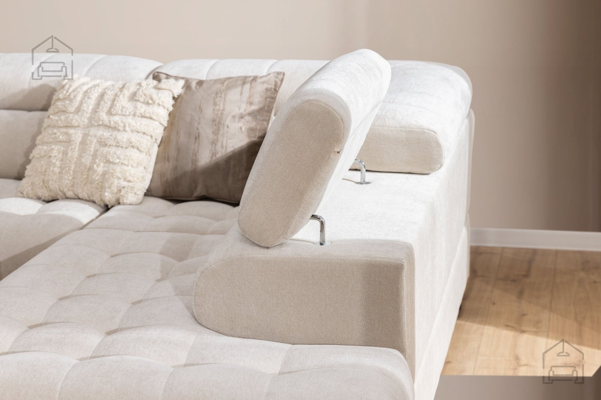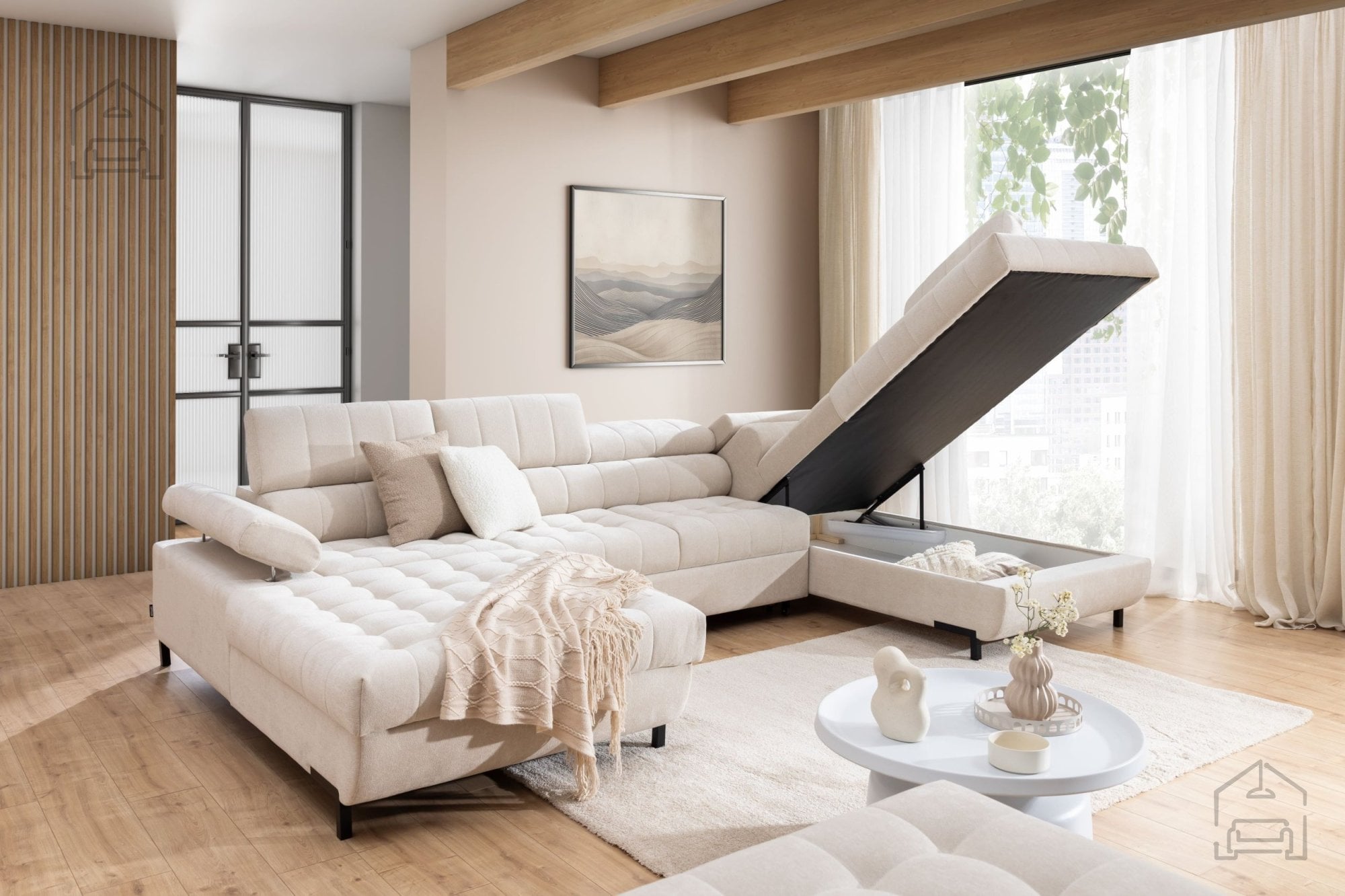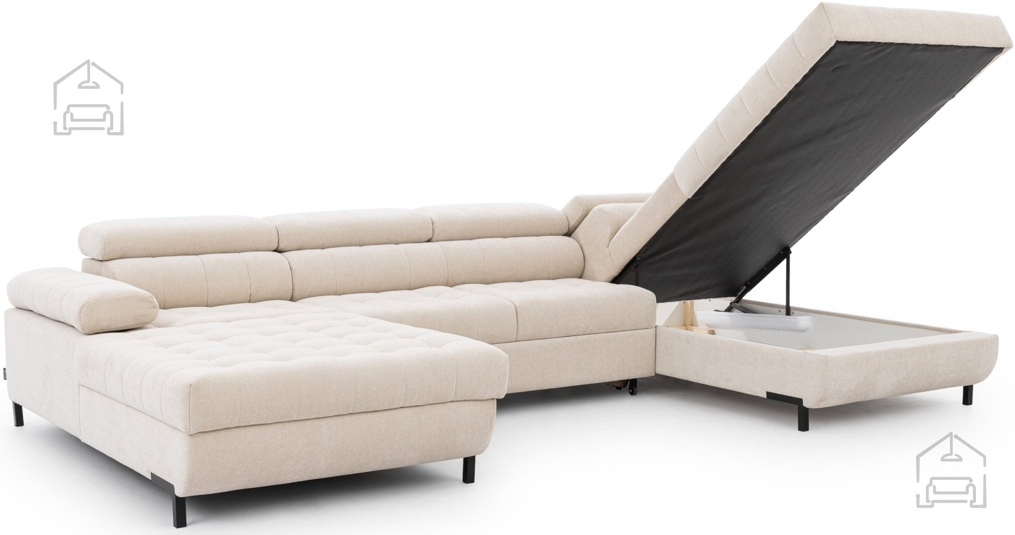 Ena izmed dodatnih prednosti sedežne garniture Tyrion II je predal za posteljnino, ki ponuja priročen prostor za shranjevanje odej, blazin ali drugih tekstilij. S tem se ohranja red v prostoru, hkrati pa so potrebni predmeti vedno pri roki. Garnitura je na voljo v več barvnih izvedbah, kar omogoča uskladitev z različnimi interierji – od svetlih, minimalističnih prostorov do bogatejših, kontrastnih kombinacij.