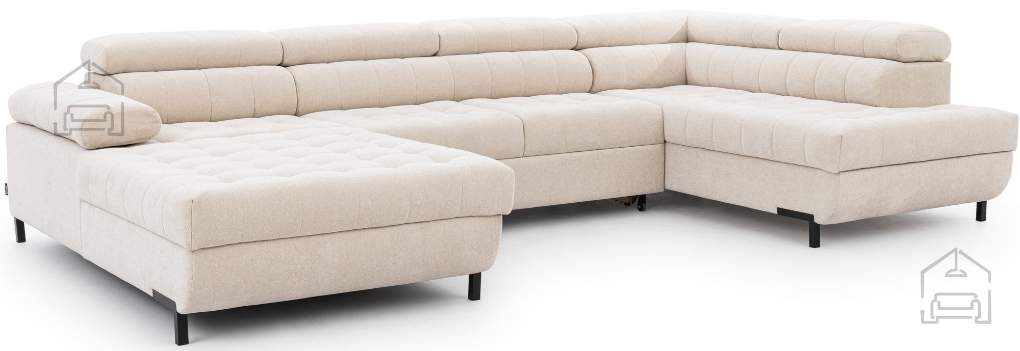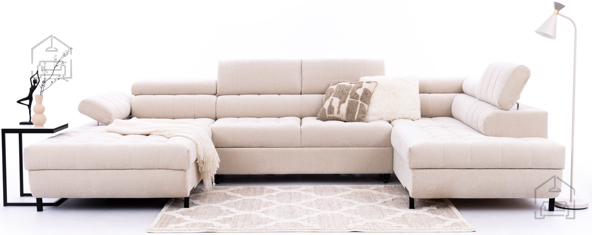 Sedežna garnitura v U obliki Tyrion II združuje prostornost, sodobno estetiko in udobje, ki ga pričakujemo od kakovostnega pohištva znamke Bogart. Njena oblika v črki U omogoča maksimalno izrabo prostora in ustvarja prijetno središče dnevne sobe, kjer se lahko sprosti vsa družina ali večja družba. Izdelana je v Poljski, v tovarni Sedežne garniture Bogart, kjer se pozornost posveča trpežnosti, uporabnosti in modernemu dizajnu. Natančno izbrani materiali, kot so les, iverne plošče, pena T30, kakovostna tkanina in valovite vzmeti, zagotavljajo udobno sedenje ter dolgo življenjsko dobo.