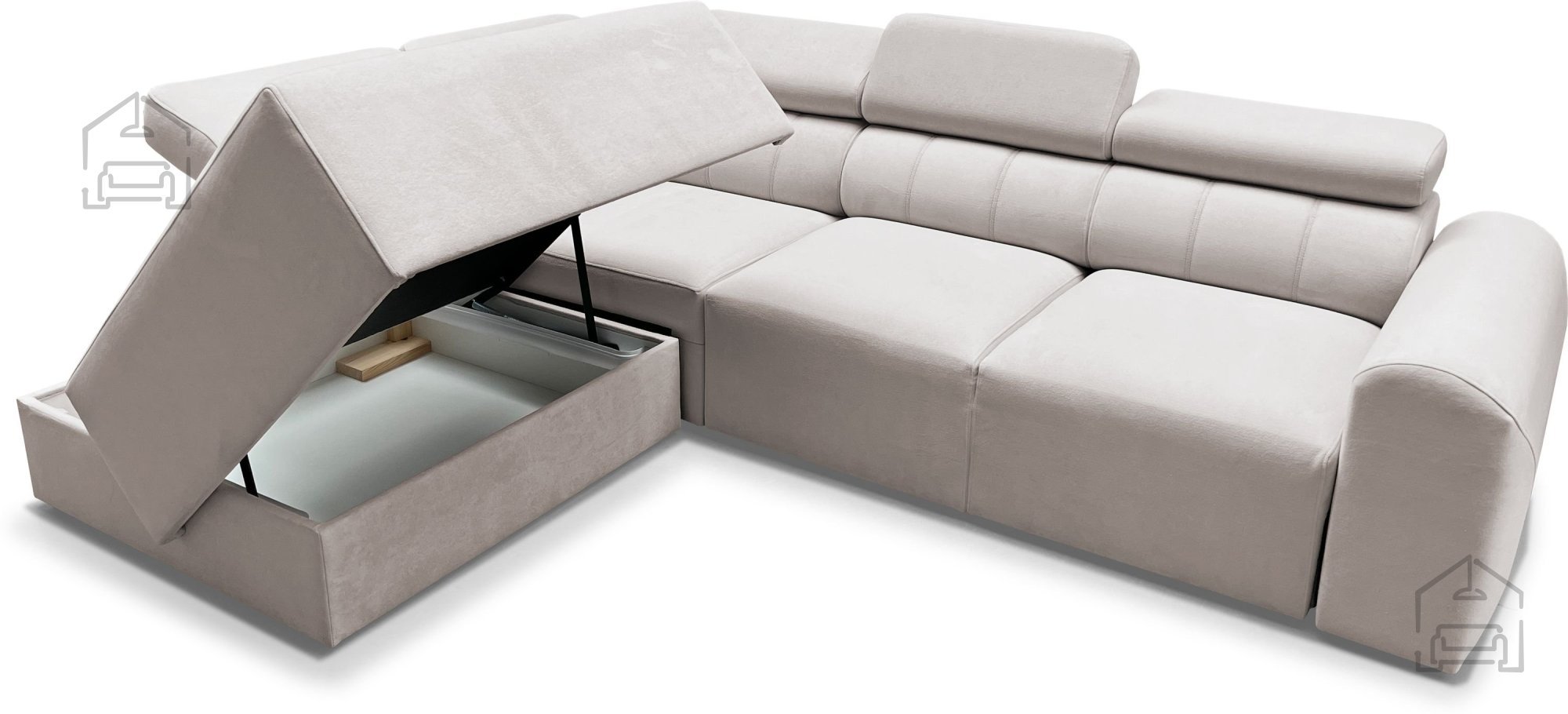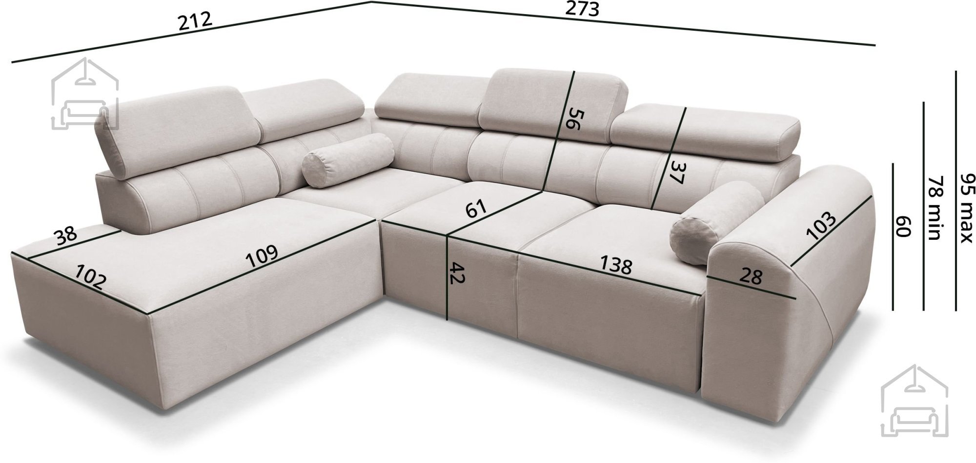 Kotna sedežna garnitura Volare VII je idealna rešitev za sodobne domove, kjer je pomembno ravnovesje med estetiko in funkcionalnostjo. Njen videz dopolnjujejo nastavljivi nasloni za glavo, ki omogočajo dodatno udobje pri gledanju televizije ali branju. Zaradi premišljene konstrukcije in kakovostnih materialov je to kos pohištva, ki bo služil dolga leta.