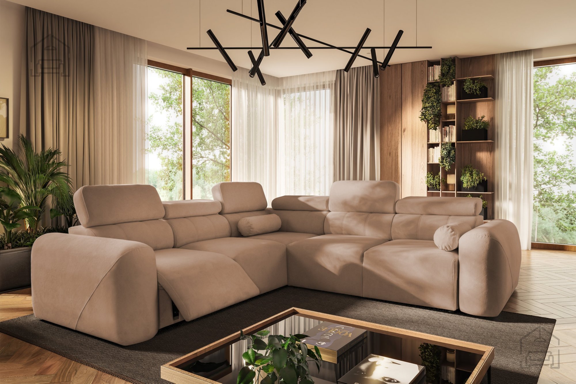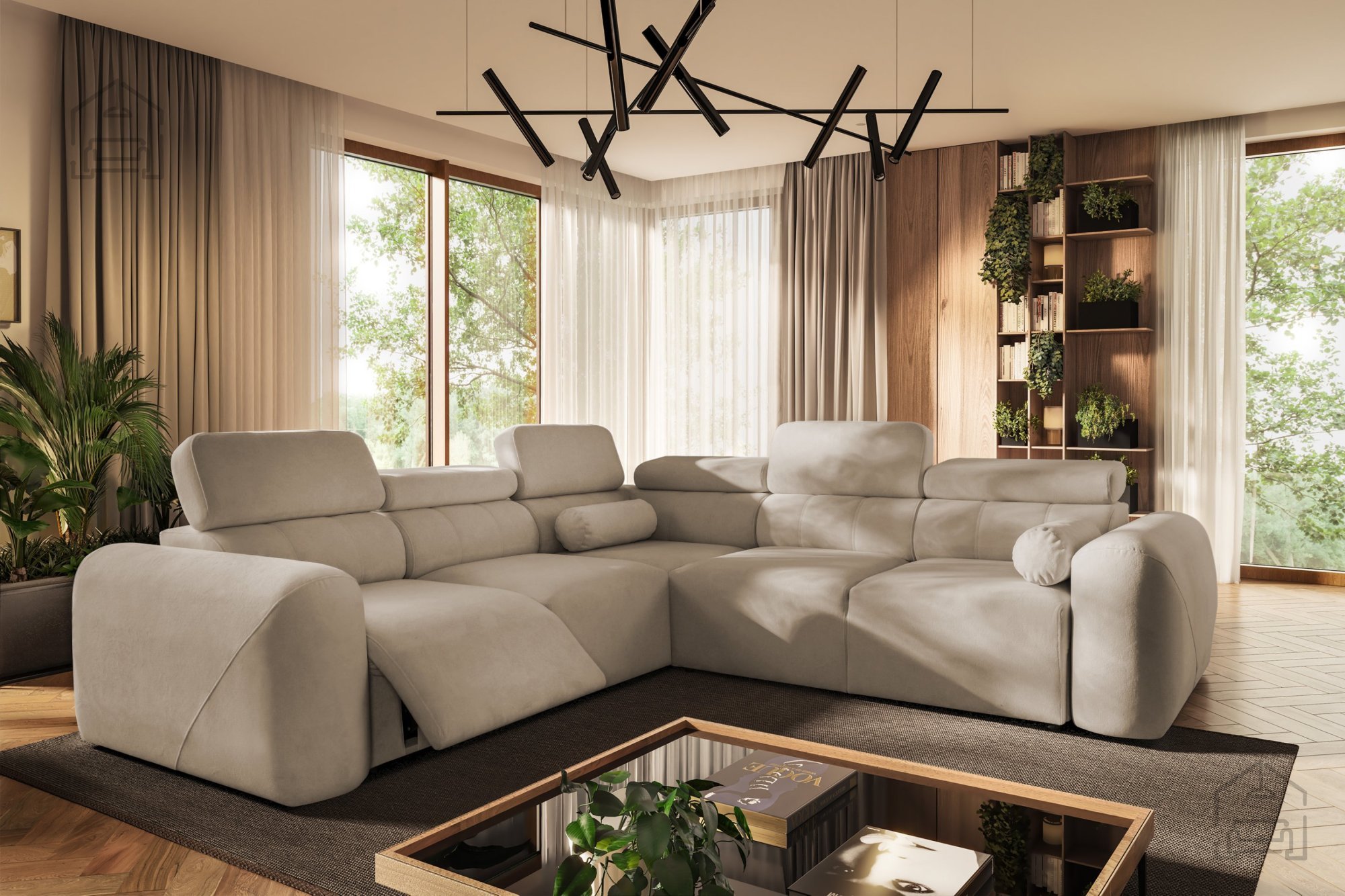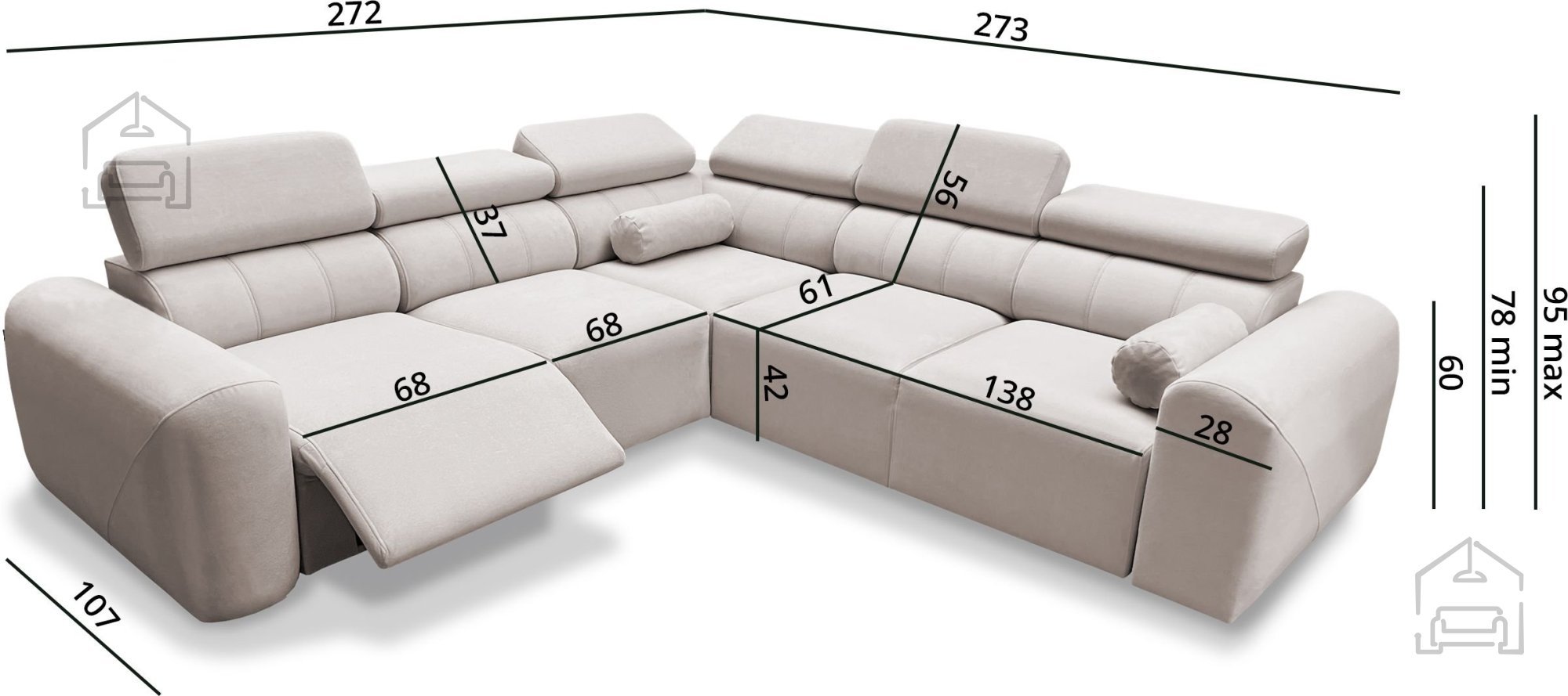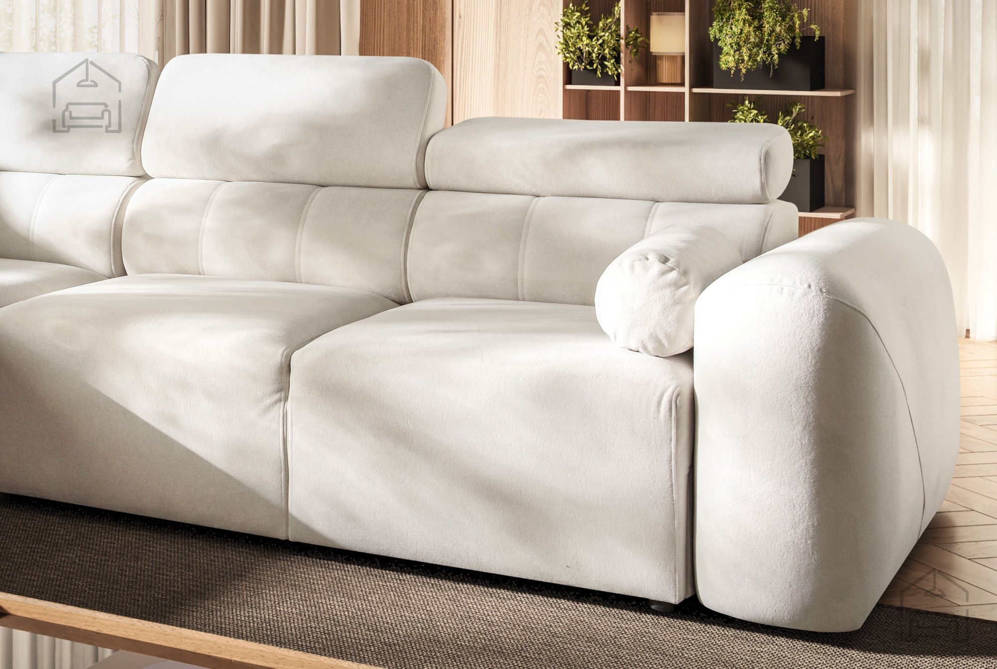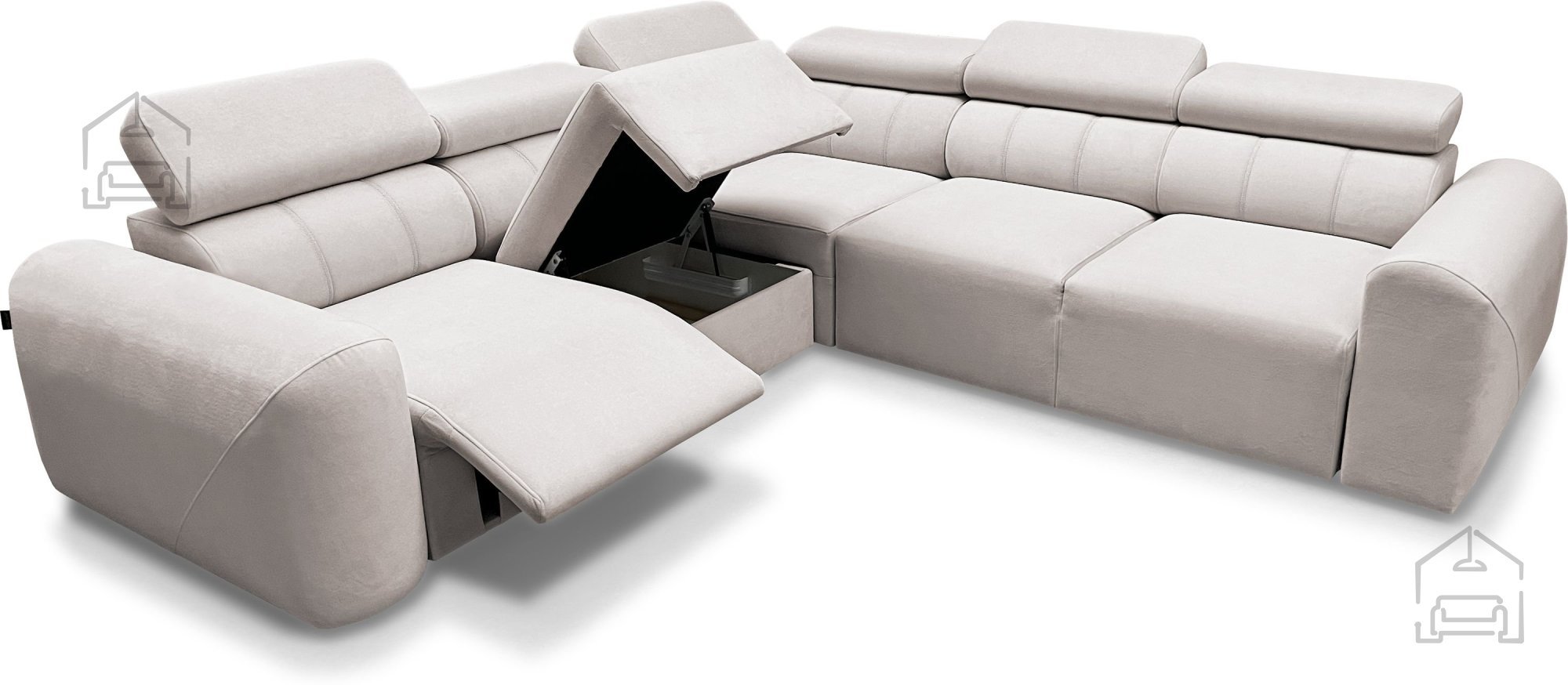 Volare III Mix ni le estetski kos pohištva, temveč ponuja številne praktične funkcije. Vgrajen predal za posteljnino nudi dodaten prostor za shranjevanje posteljnine ali odej, kar je izjemno priročno v manjših stanovanjih. Garnitura ima pet nastavljivih vzglavnikov, ki omogočajo individualno prilagoditev položaja glave in vratu, ter en električno nastavljiv podnožnik za popolno sprostitev nog. Površina spanja je opremljena z avtomatom tipa PUMA, ki olajša raztegovanje in zlaganje ležišča.