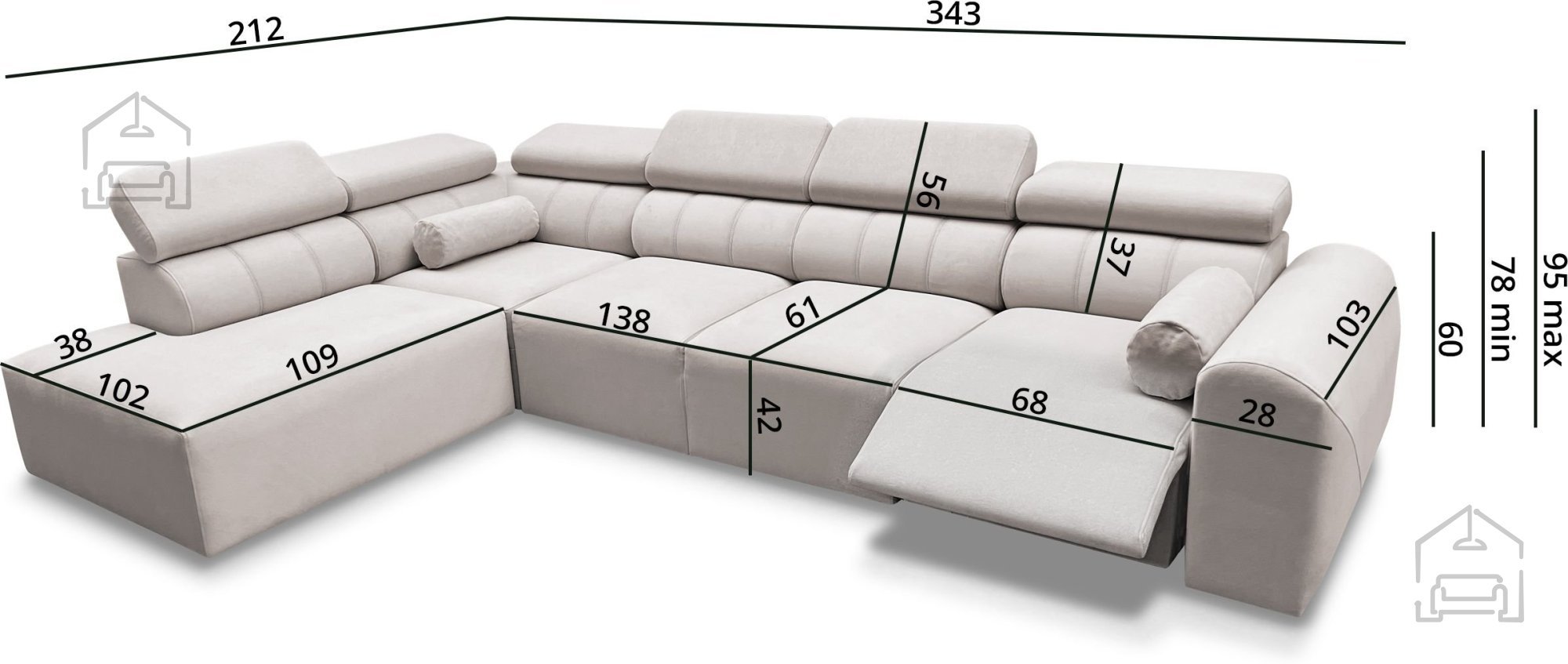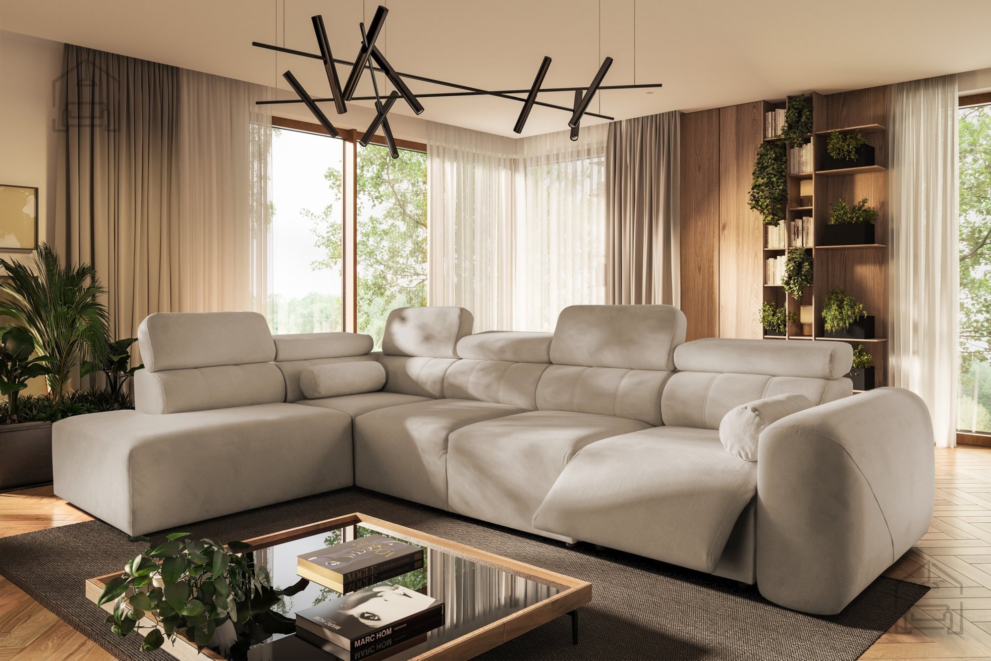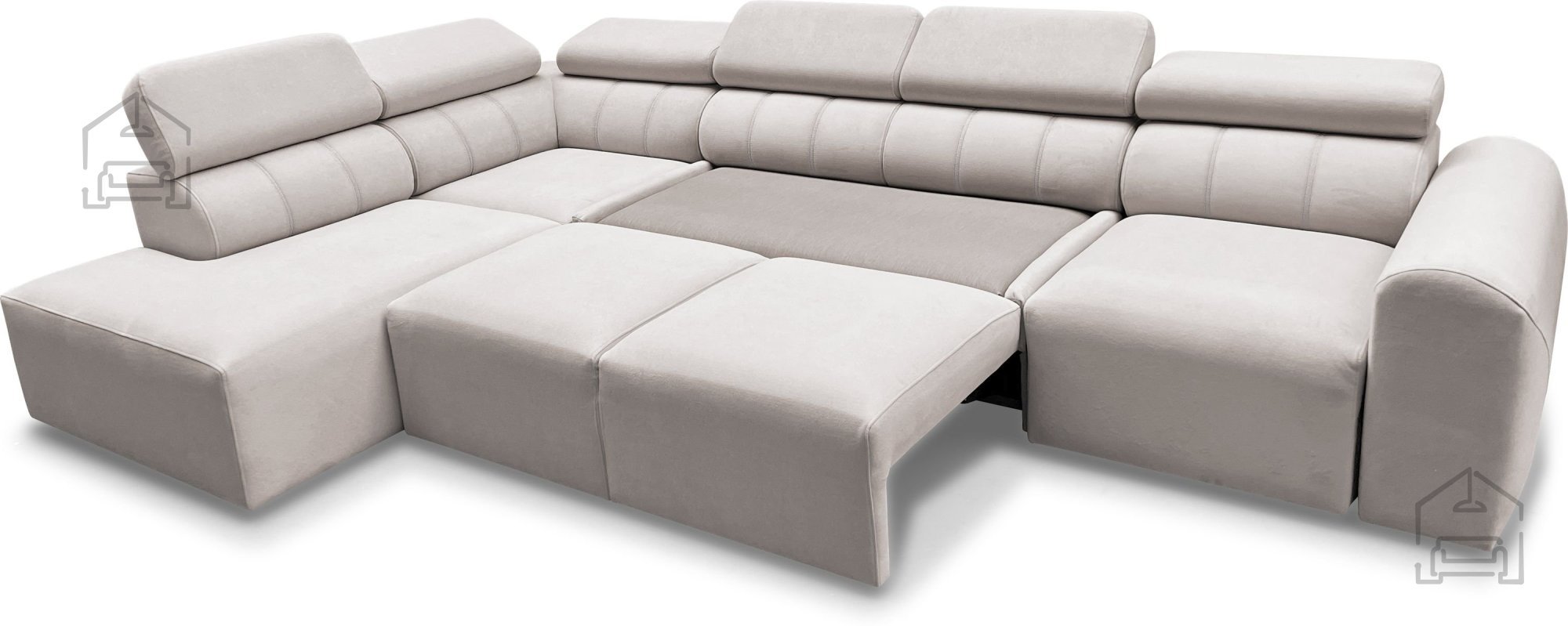 Volare XI Mix ni le estetski kos pohištva, temveč ponuja številne praktične funkcije. Vgrajen predal za posteljnino nudi dodaten prostor za shranjevanje posteljnine ali odej, kar je izjemno priročno v manjših stanovanjih. Garnitura ima pet nastavljivih vzglavnikov, ki omogočajo individualno prilagoditev položaja glave in vratu, ter en električno nastavljiv podnožnik za popolno sprostitev nog. Površina spanja je opremljena z avtomatom tipa PUMA, ki olajša raztegovanje in zlaganje ležišča.