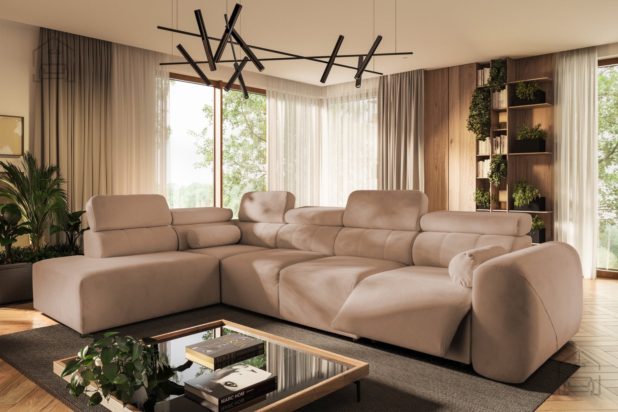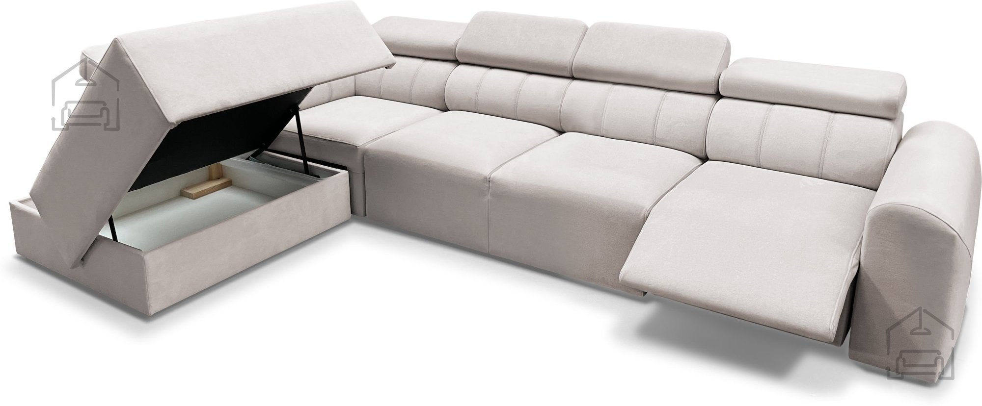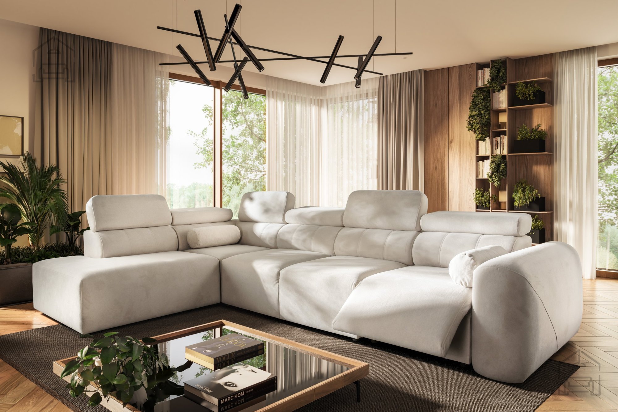 Volare XI Mix ni le estetski kos pohištva, temveč ponuja številne praktične funkcije. Vgrajen predal za posteljnino nudi dodaten prostor za shranjevanje posteljnine ali odej, kar je izjemno priročno v manjših stanovanjih. Garnitura ima pet nastavljivih vzglavnikov, ki omogočajo individualno prilagoditev položaja glave in vratu, ter en električno nastavljiv podnožnik za popolno sprostitev nog. Površina spanja je opremljena z avtomatom tipa PUMA, ki olajša raztegovanje in zlaganje ležišča.