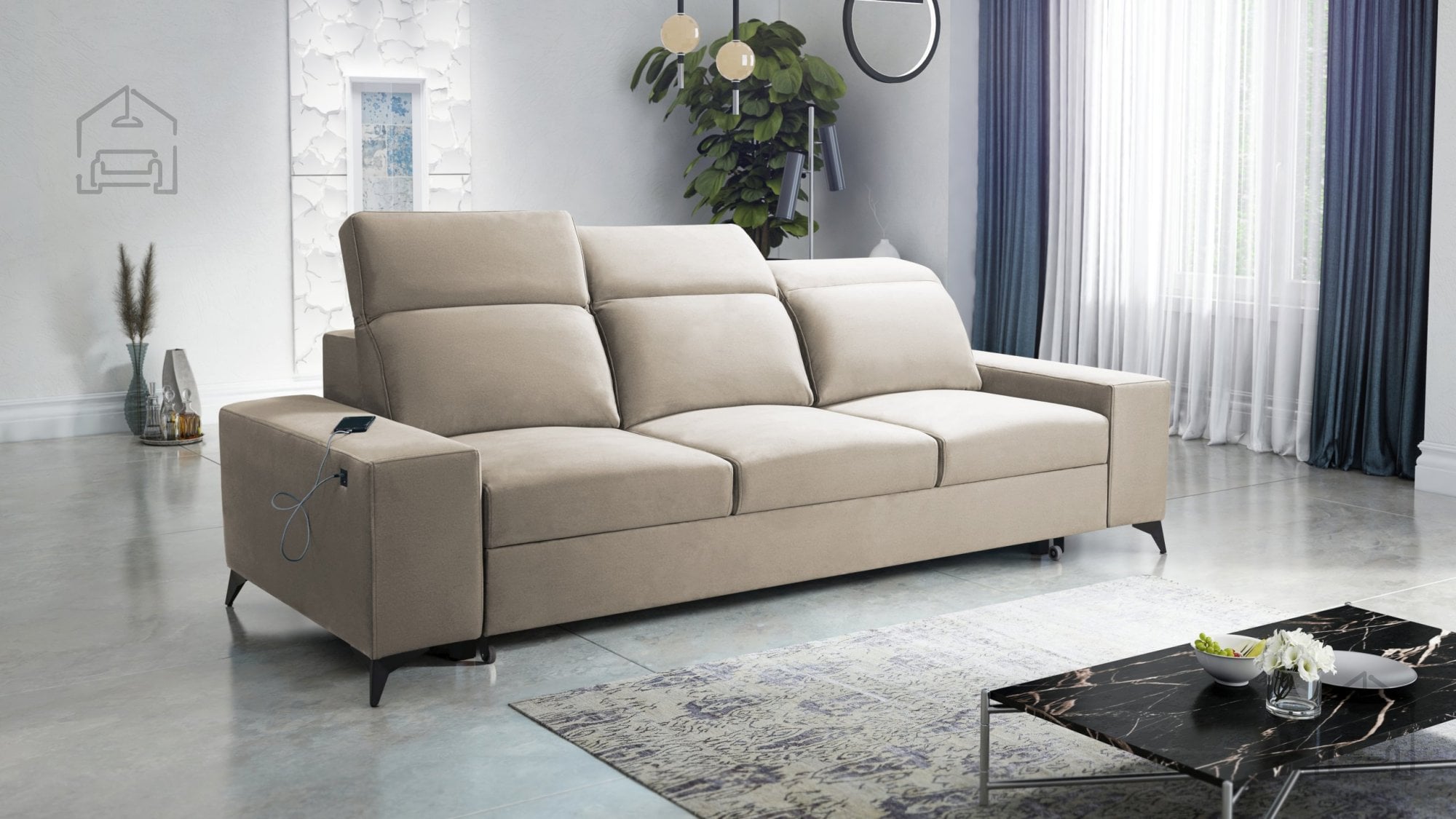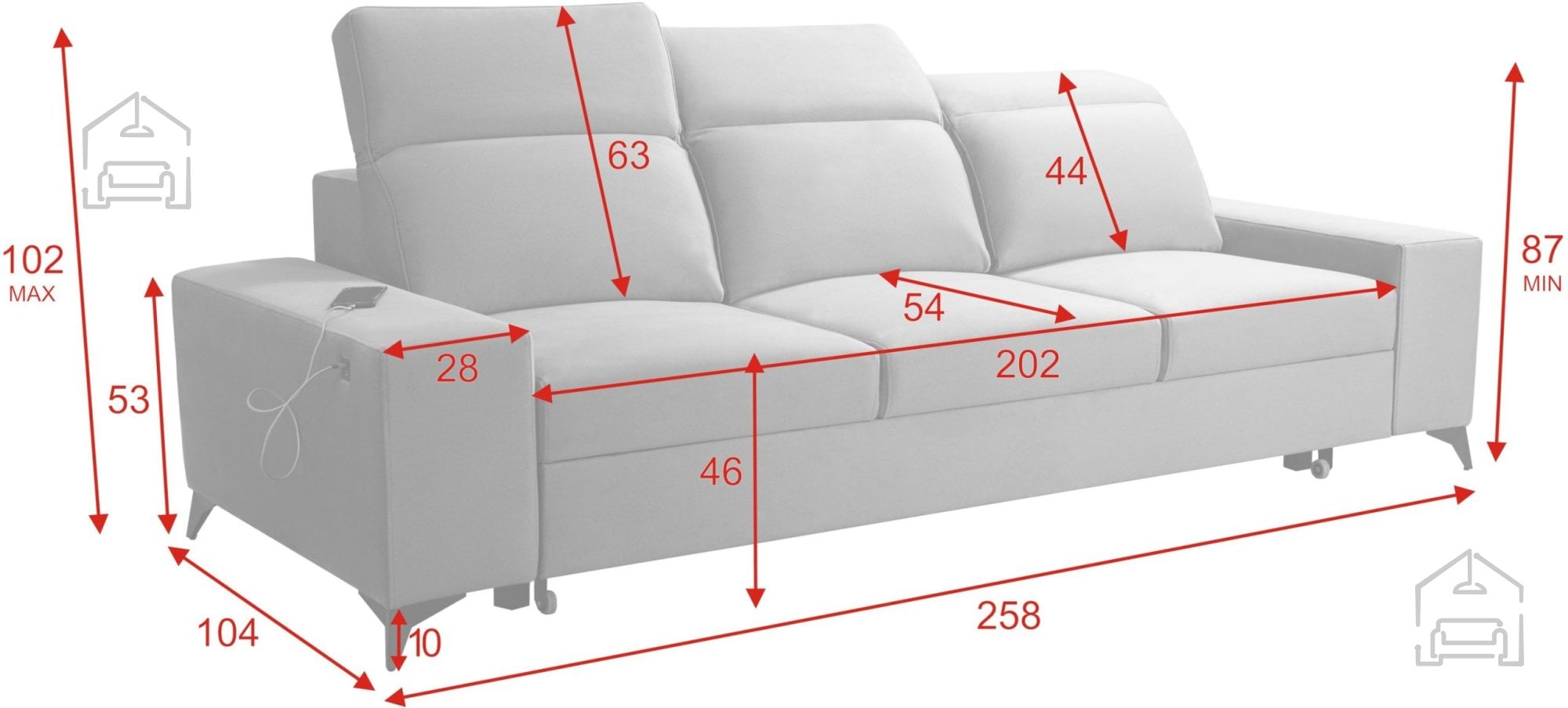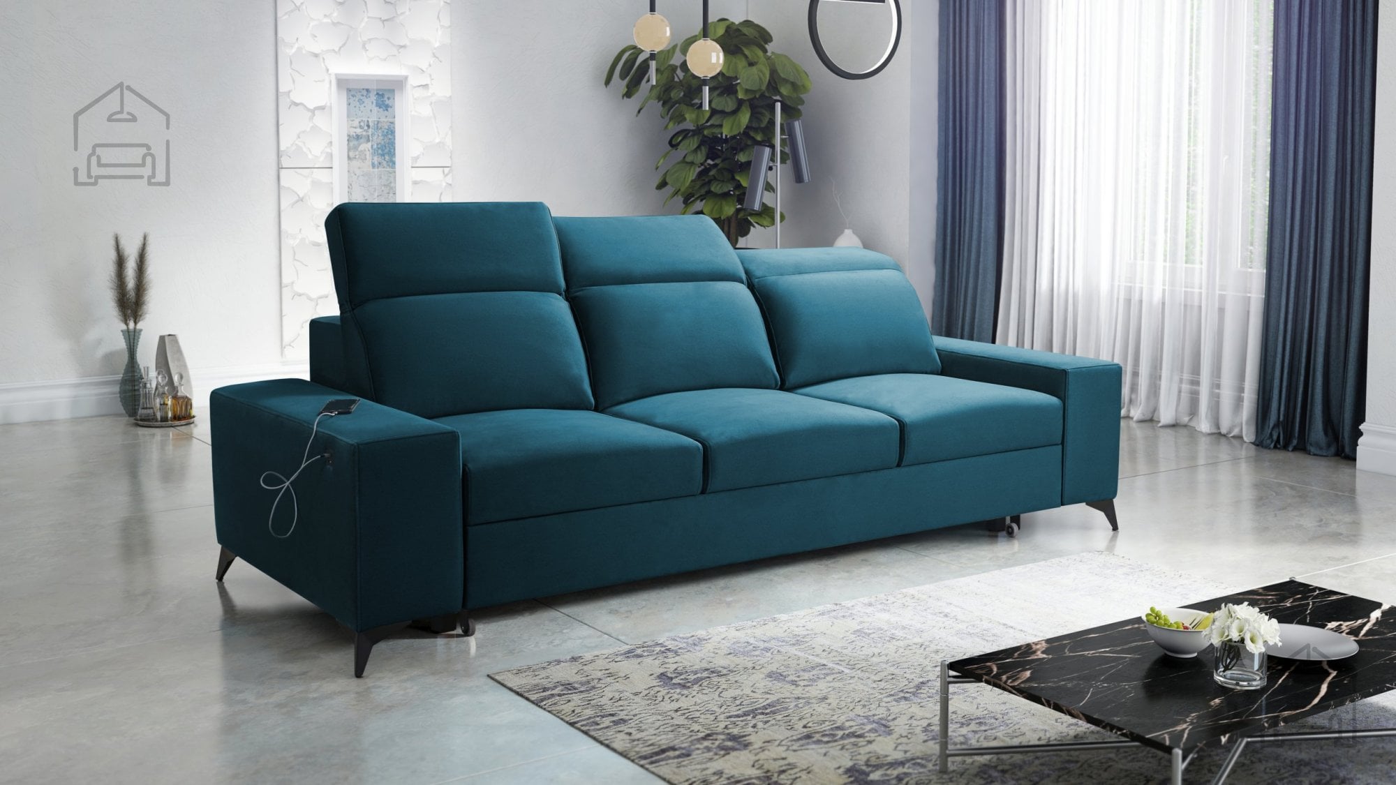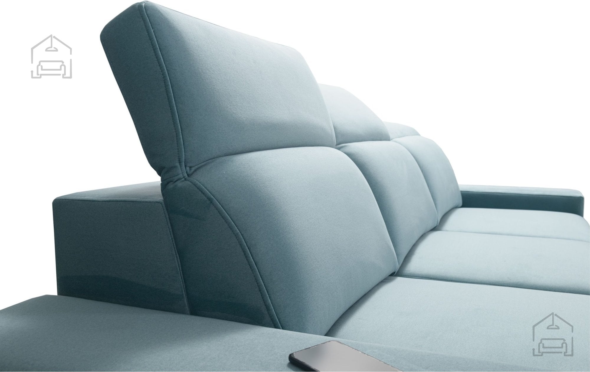 Model vključuje tri nastavljive naslone za glavo, ki jih lahko individualno prilagodite glede na višino in želeni položaj sedenja. Ta funkcionalnost povečuje udobje med branjem, gledanjem televizije ali sproščanjem po dolgem dnevu. Nastavljivi nasloni so oblikovani tako, da ohranjajo celoten videz troseda uravnotežen in estetsko dovršen.