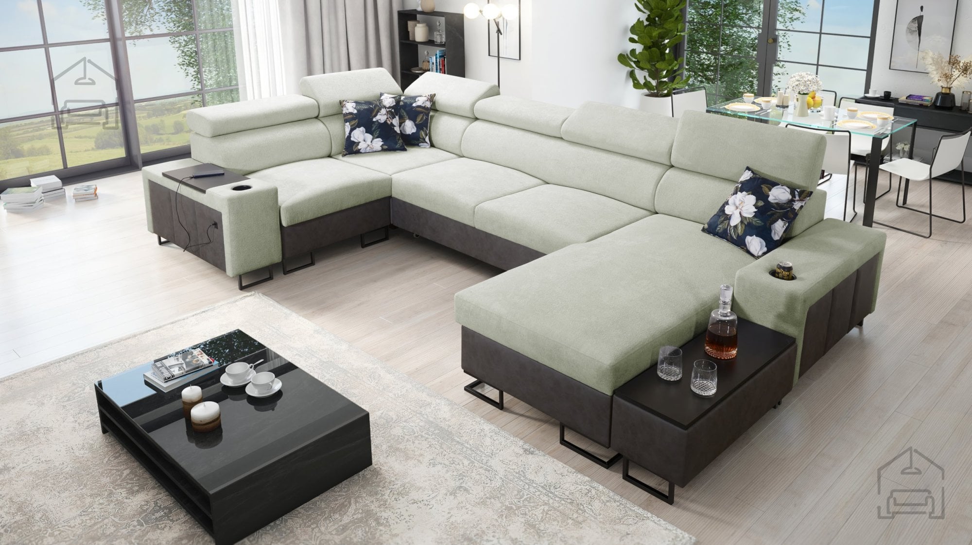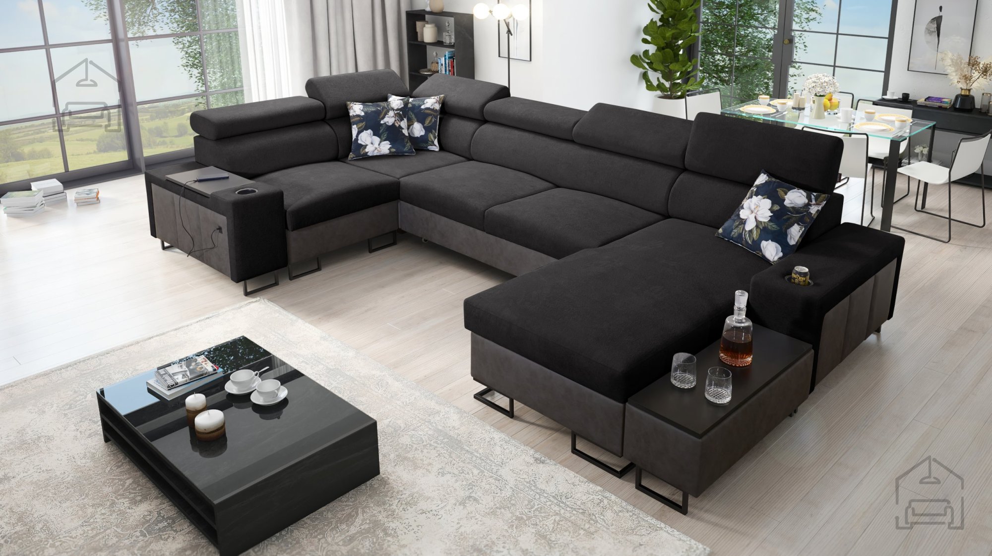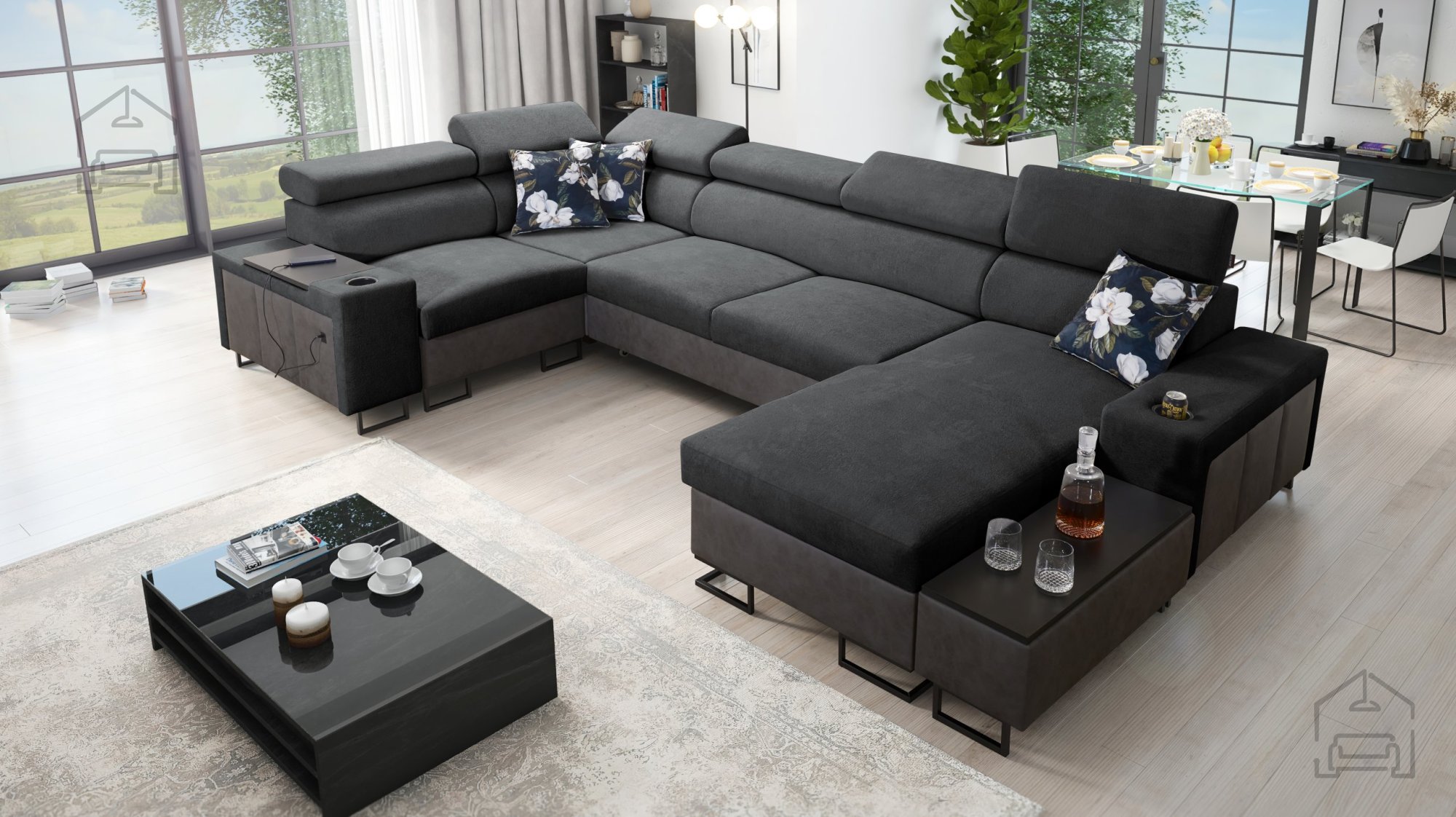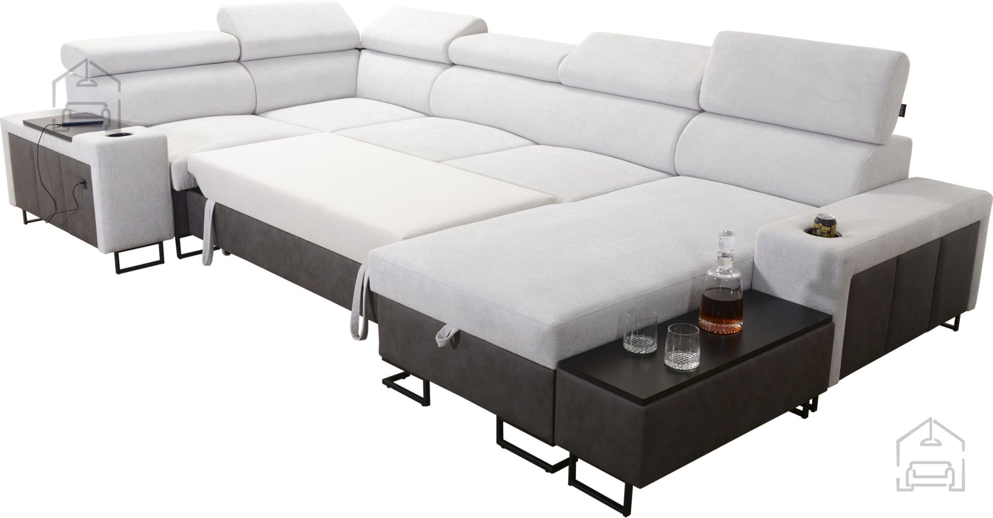 Sedežna garnitura vključuje polico v kotu, ki dopolnjuje uporabnost in dizajn. Možno je naročiti blazine z zadrgo (z doplačilom), kar olajša čiščenje in menjavo prevlek. Površina za spanje je serijsko izdelana v kontrastni barvni kombinaciji, vendar jo je mogoče po želji naročiti tudi v barvi sedežne garniture (z doplačilom). Pri standardni izvedbi proizvajalec naključno izbere barvni odtenek in strukturo površine spanja, kar pomeni, da je vsak kos nekoliko unikaten.