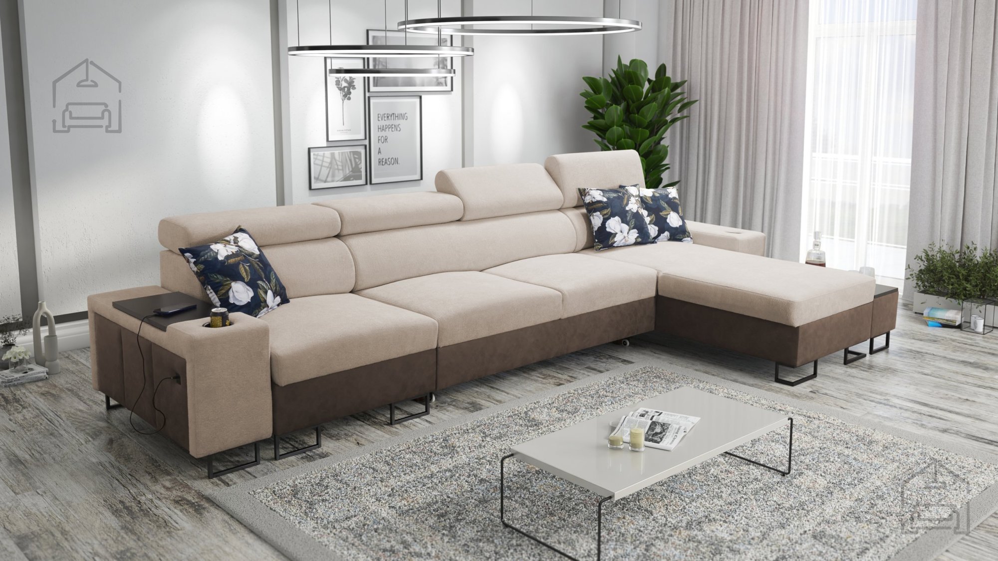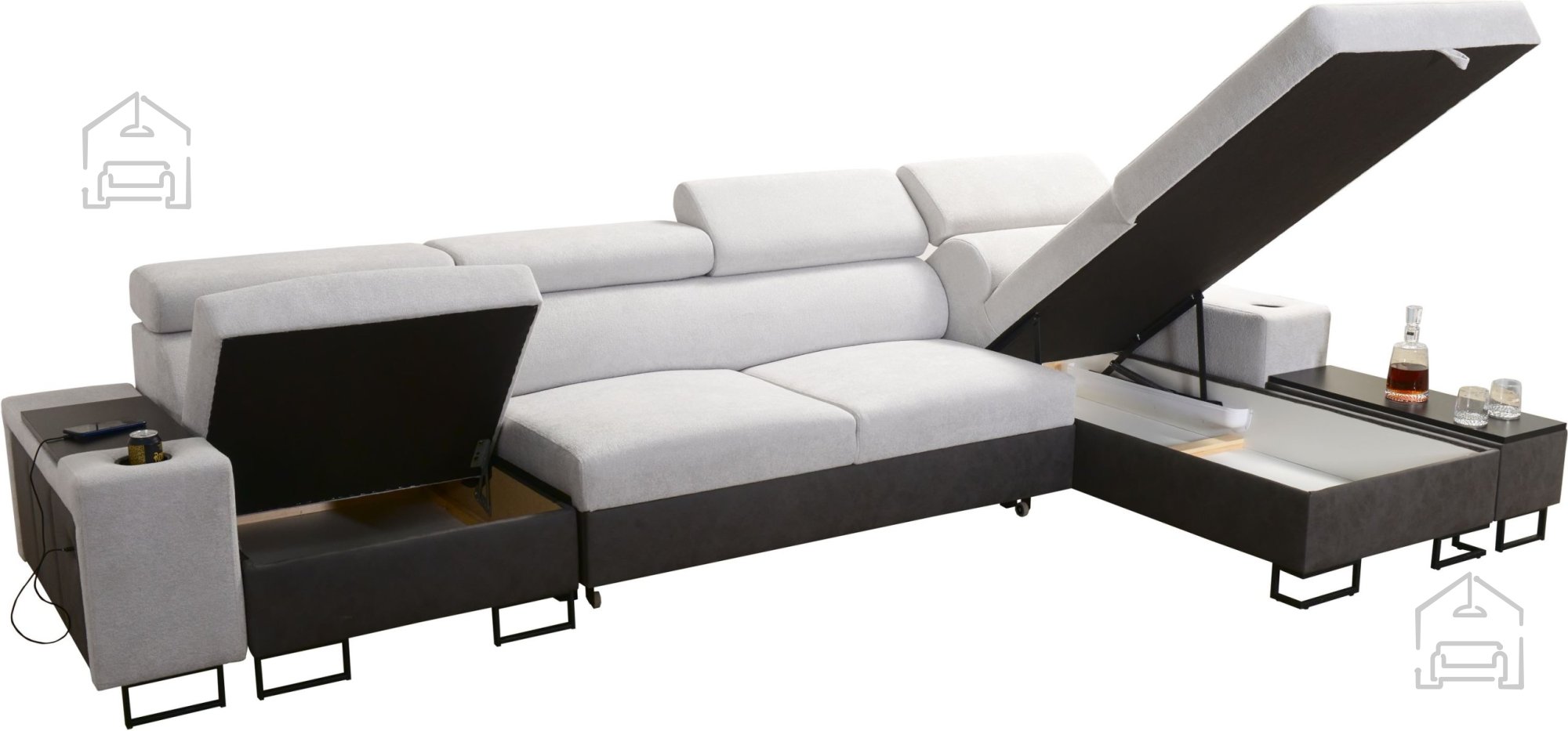 Posebnost modela je odpirajoči se bar in funkcionalna, gibljiva mizica, ki služi kot priročen dodatek za pijačo ali daljinski upravljalnik. Za sodobne uporabnike je dodana tudi USB‑vtičnica, ki je na voljo v črni ali srebrni barvi – priročna rešitev za polnjenje pametnih naprav brez dodatnih kablov.