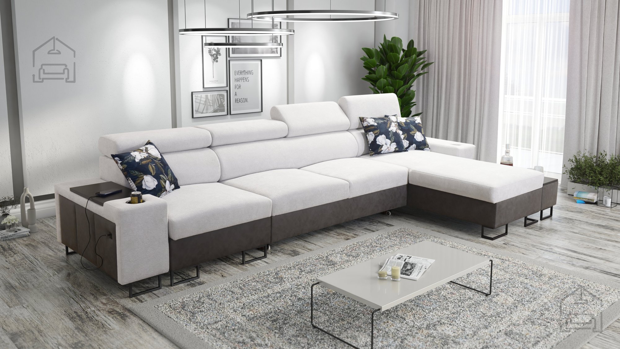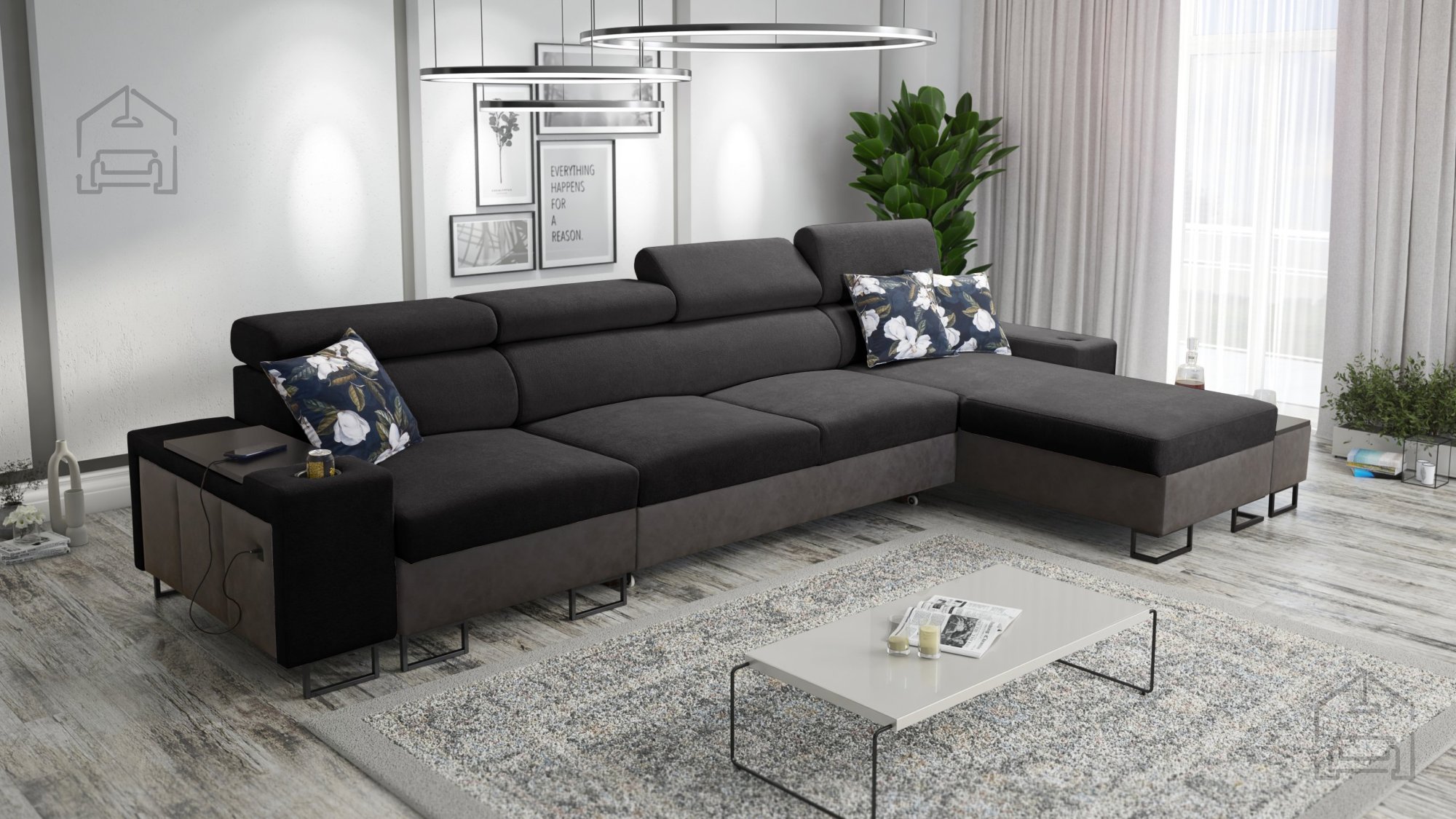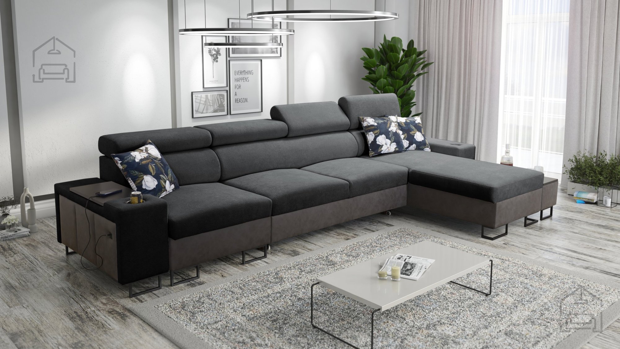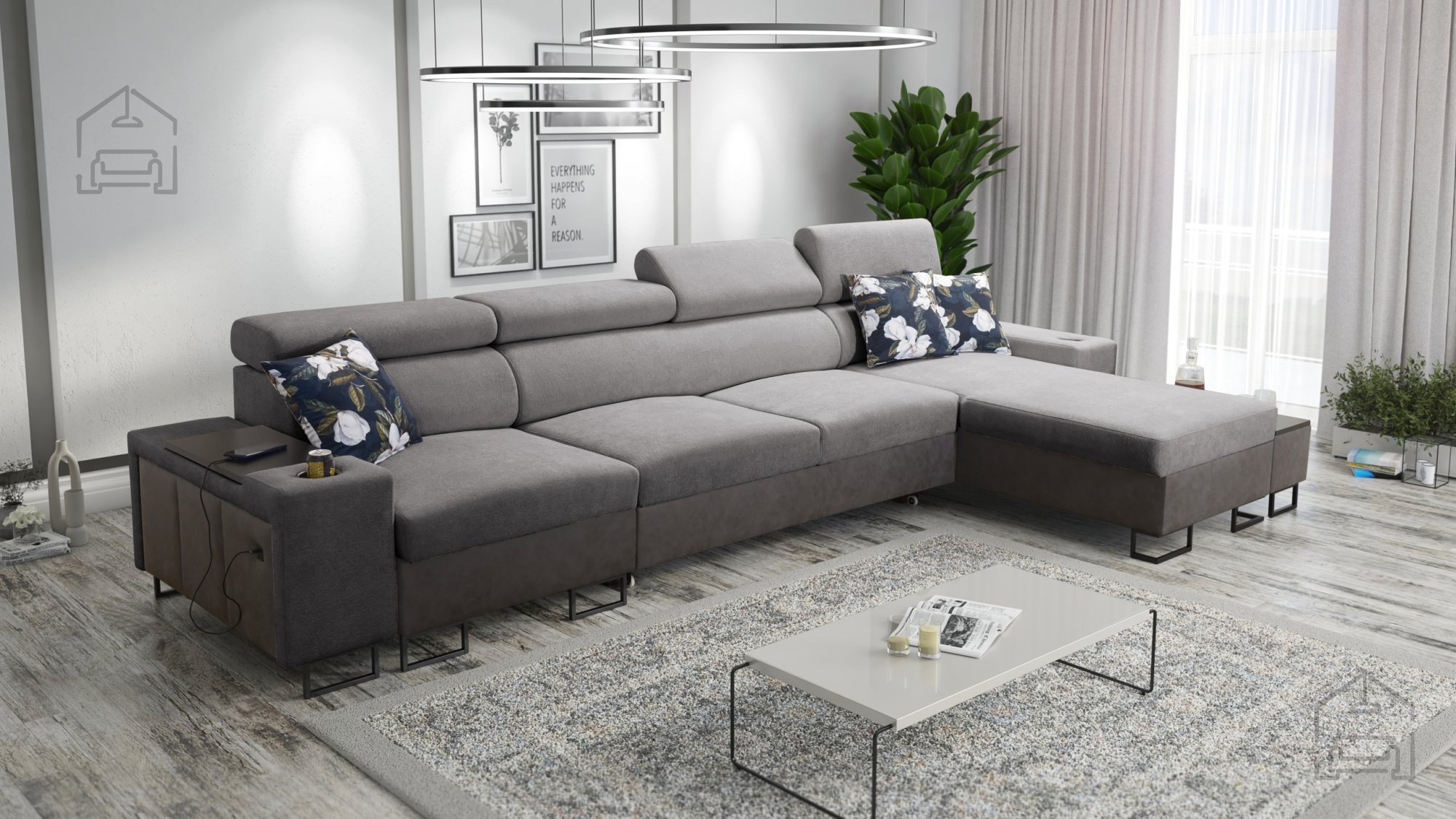 Ta model je zasnovan z mislijo na uporabnost in urejenost prostora. Vgrajena sta dva prostorna predala za posteljnino, ki omogočata preprosto shranjevanje odej ali blazin. Poleg tega ima garnitura štiri nastavljive naslone za glavo, ki jih lahko prilagodite lastnim potrebam, kar povečuje udobje pri sedenju ali gledanju televizije.