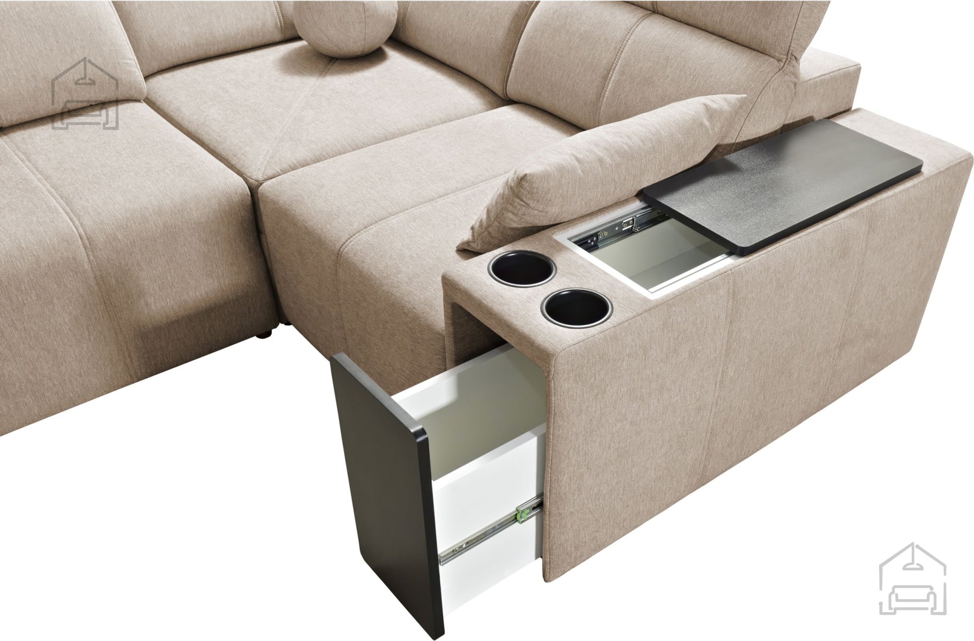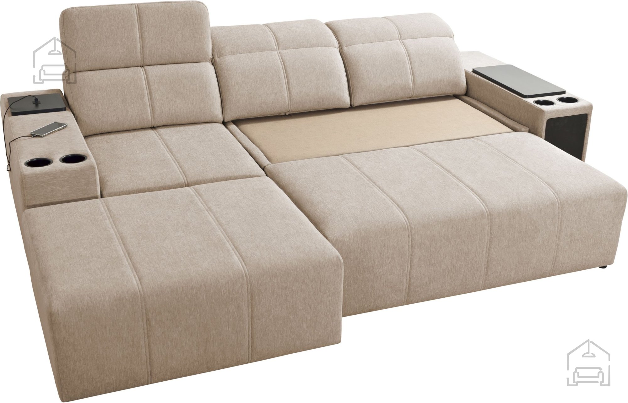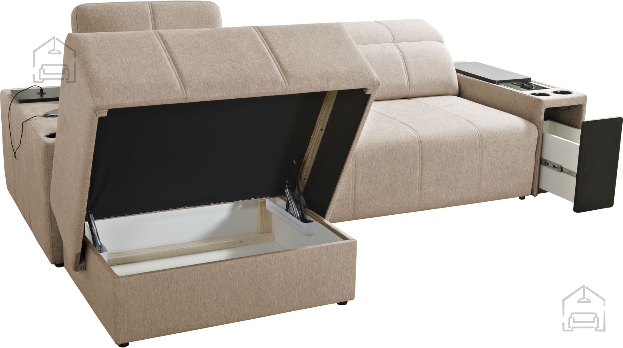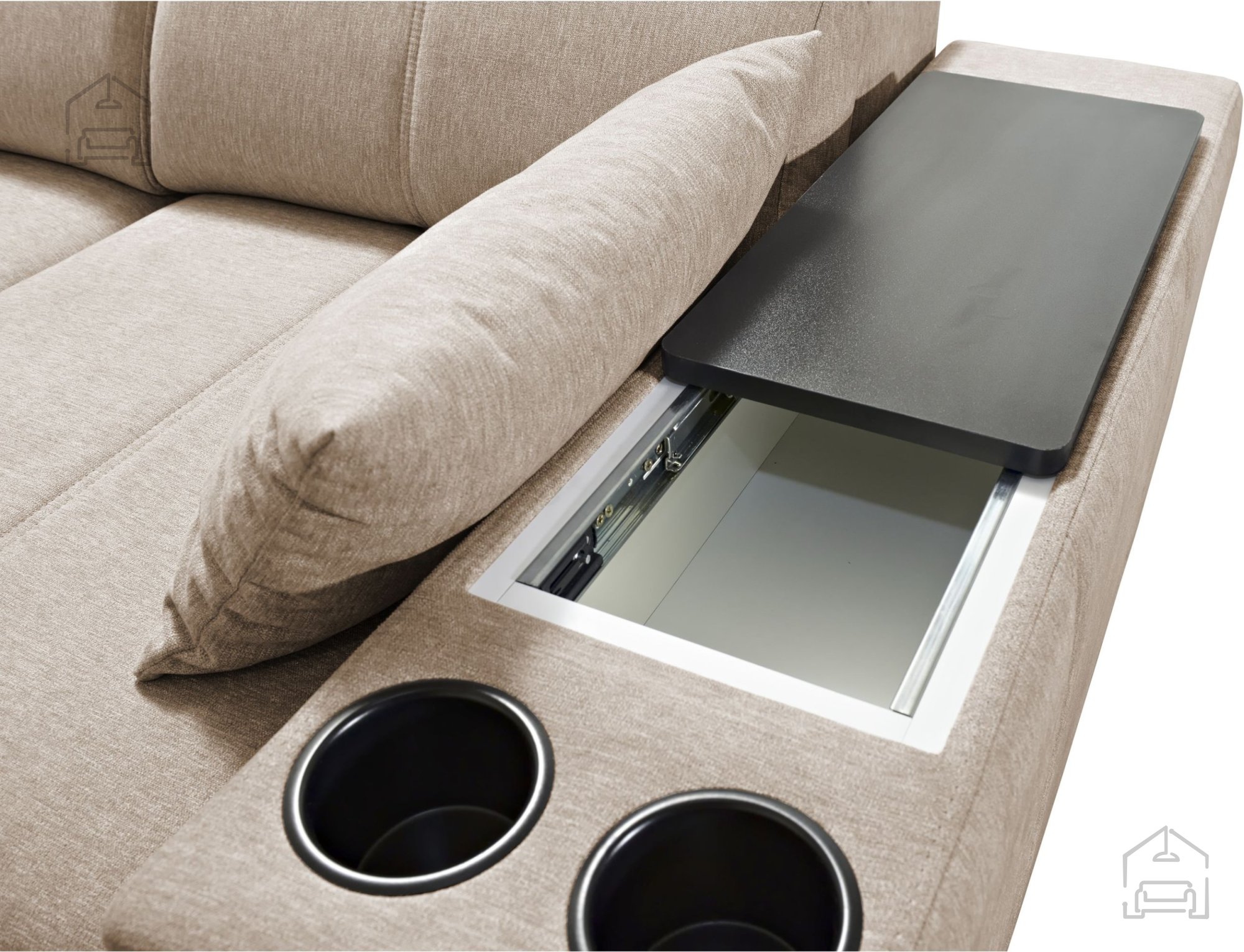 Model Mindy I je opremljen z mehanizmom Dolphin, ki omogoča hitro in enostavno raztegovanje v ležišče. Površina za spanje meri 212x138 cm, kar zagotavlja dovolj prostora za dve osebi. V središču zasnove je uporabnost – garnitura vključuje prostoren predal za posteljnino, popoln za shranjevanje odej, blazin ali drugih dodatkov. Zahvaljujoč vzmetnemu jedru iz pene in sedalom z vgrajenimi valovitimi vzmetmi je sedenje mehko, stabilno in dolgotrajno udobno.