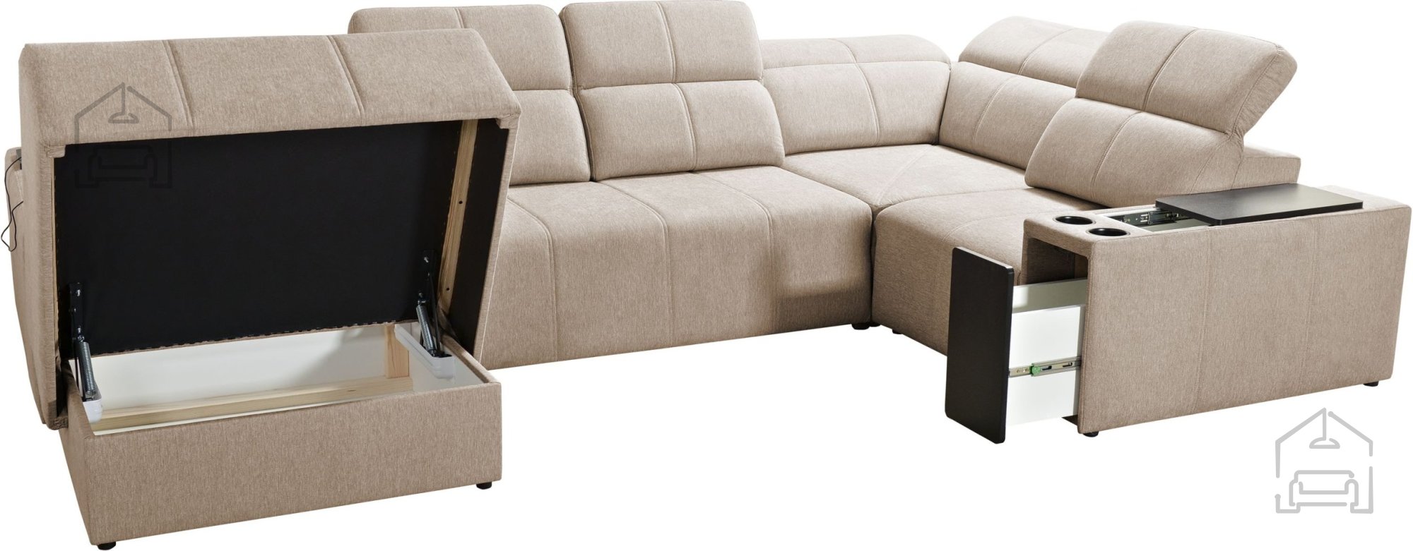 Garnitura vključuje šest nastavljivih vzglavnikov ter regulacijska naslonjala, ki omogočajo spreminjanje globine sedišča od 56 do 69 cm. Glavni modul (“dvojni” del) ima enotno, po celotni širini pomično naslonjalo, kar dodatno povečuje udobje. Tudi ležalni del ima možnost pomičnega naslonjala, kar omogoča popolno prilagoditev potrebam uporabnika.