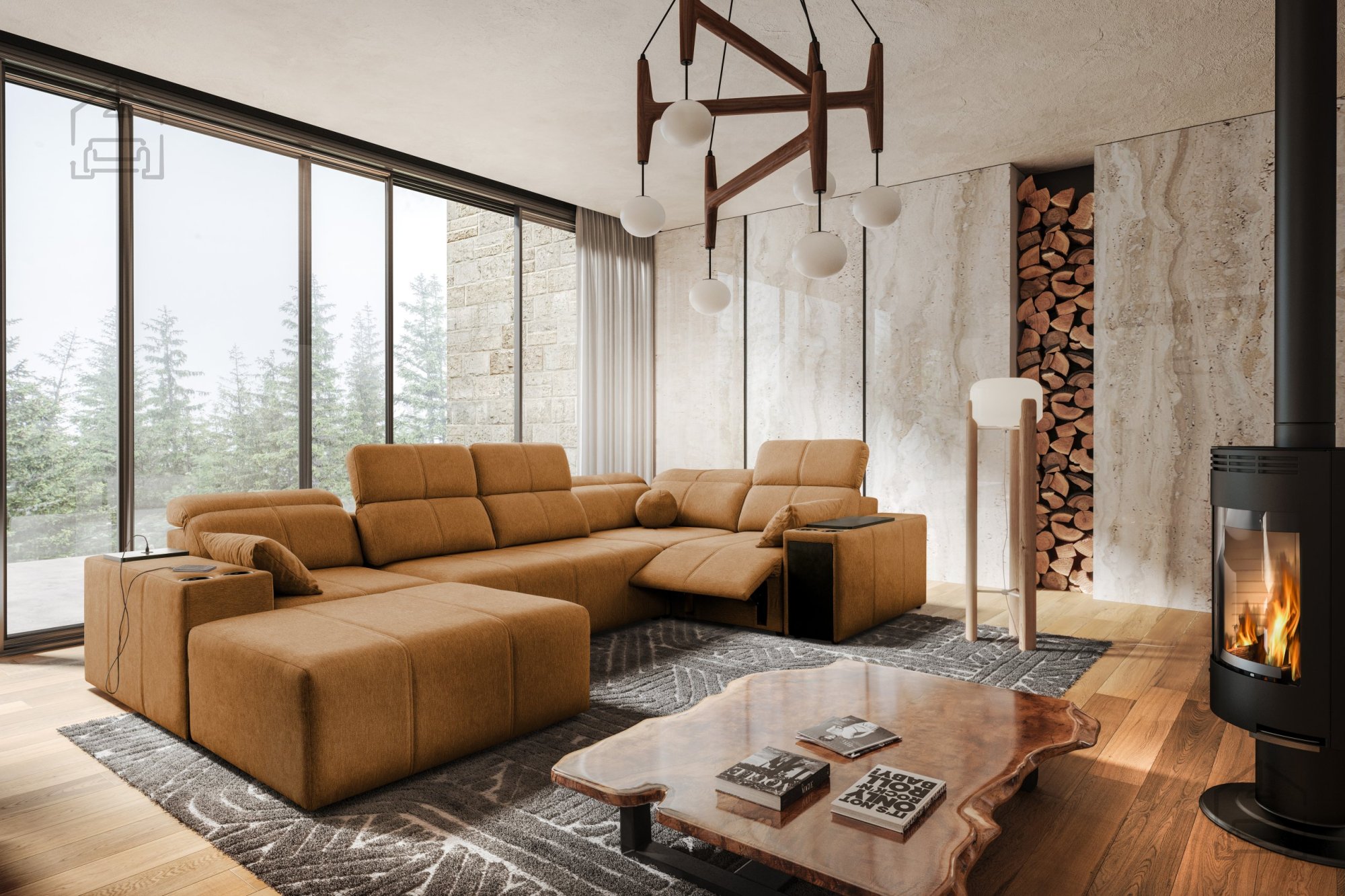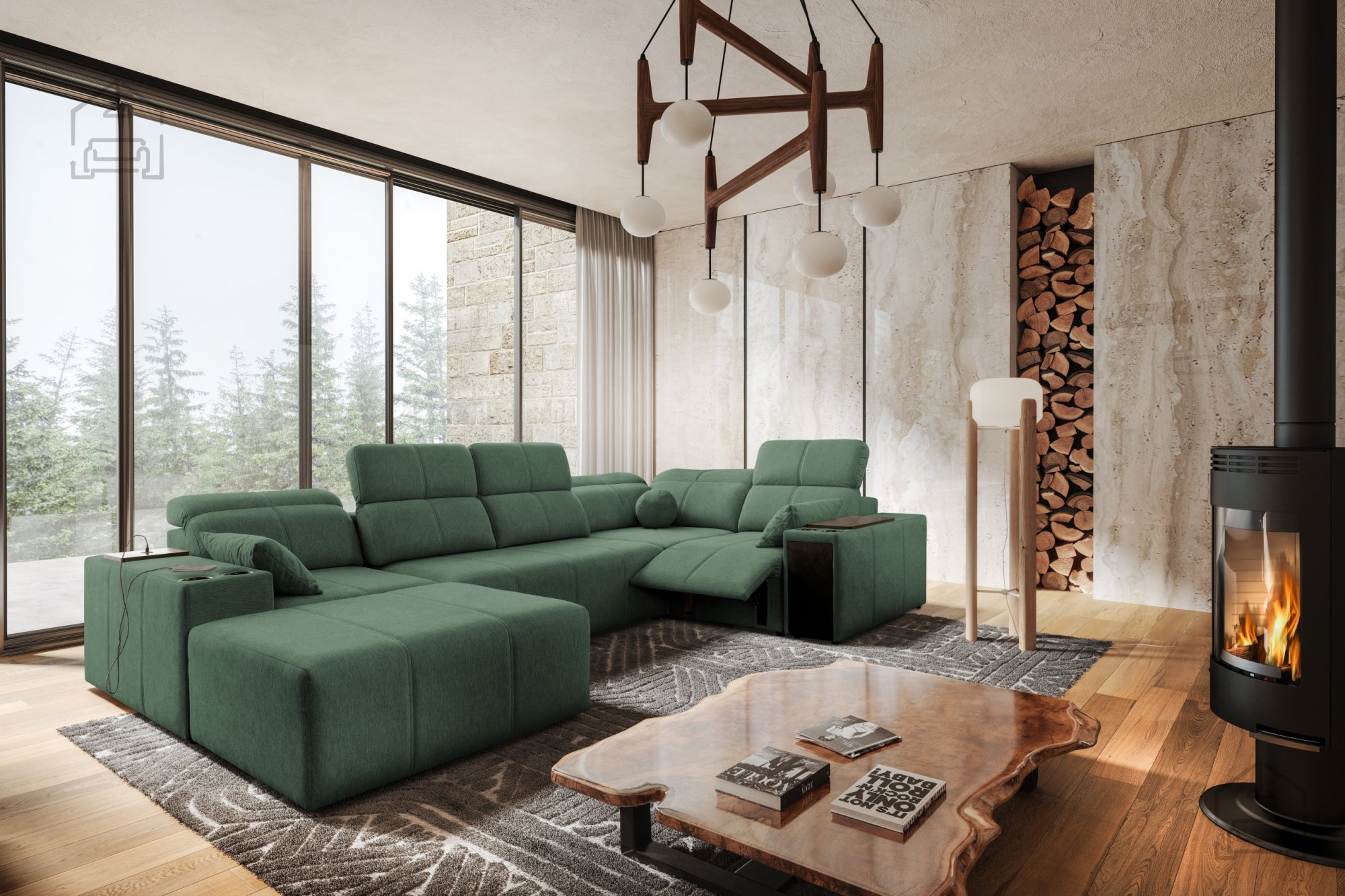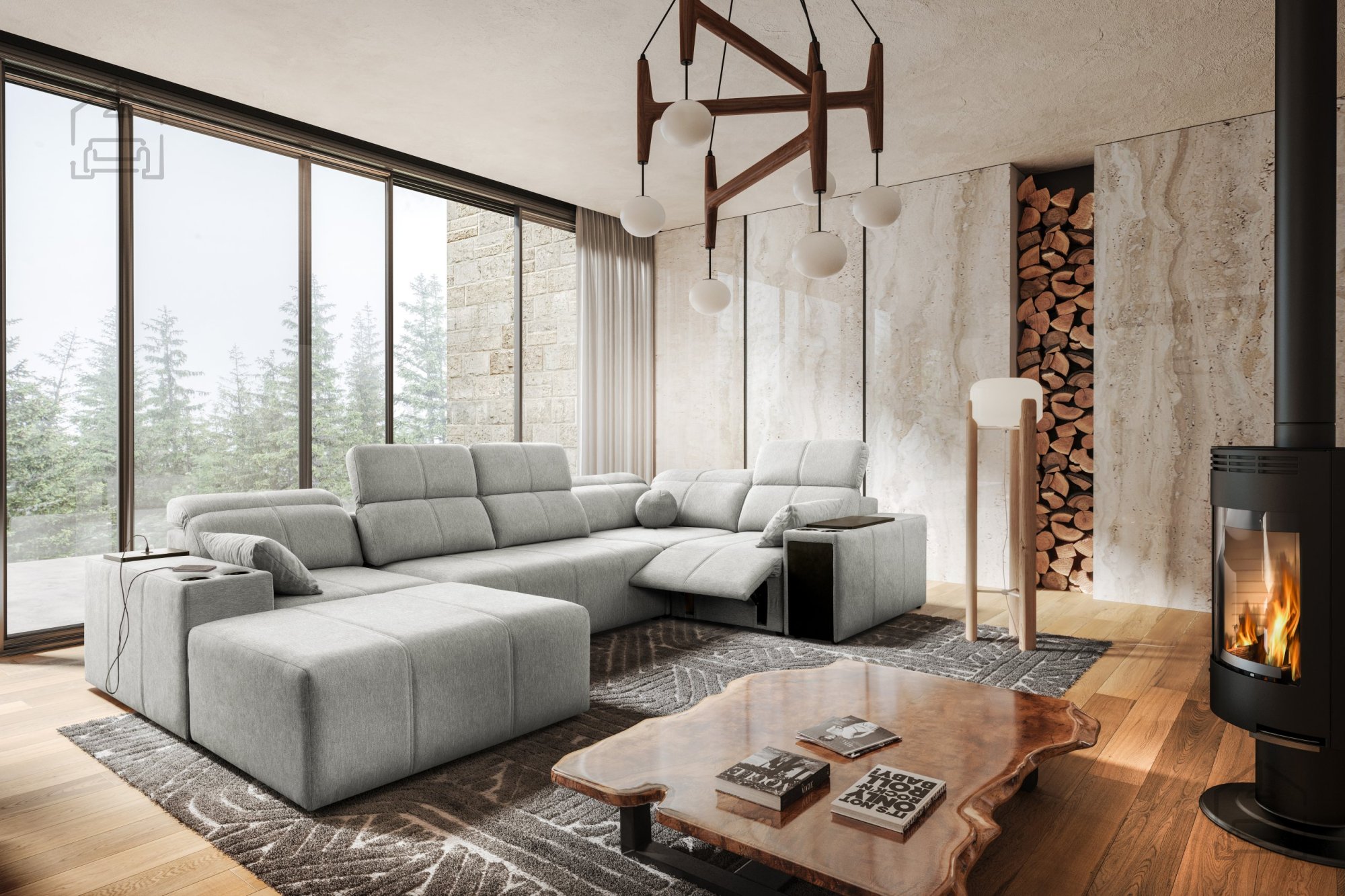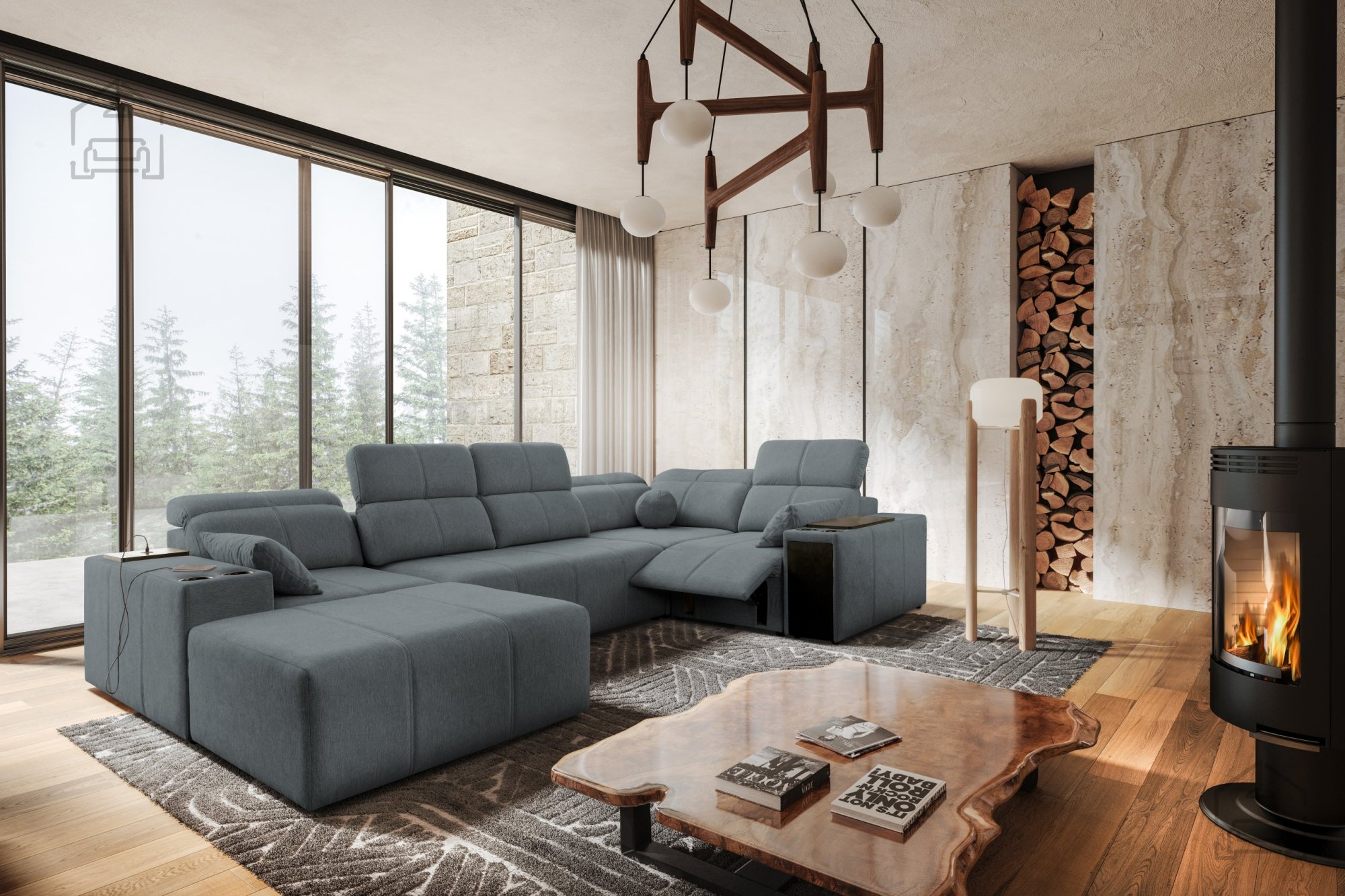 Garnitura je prostostoječa, kar pomeni, da je hrbtni del estetsko obdelan in omogoča postavitev kjerkoli v prostoru. Zaradi večbarvne izvedbe in široke ponudbe tkanin se lahko popolnoma prilagodi različnim notranjim slogom – od modernega do minimalističnega.