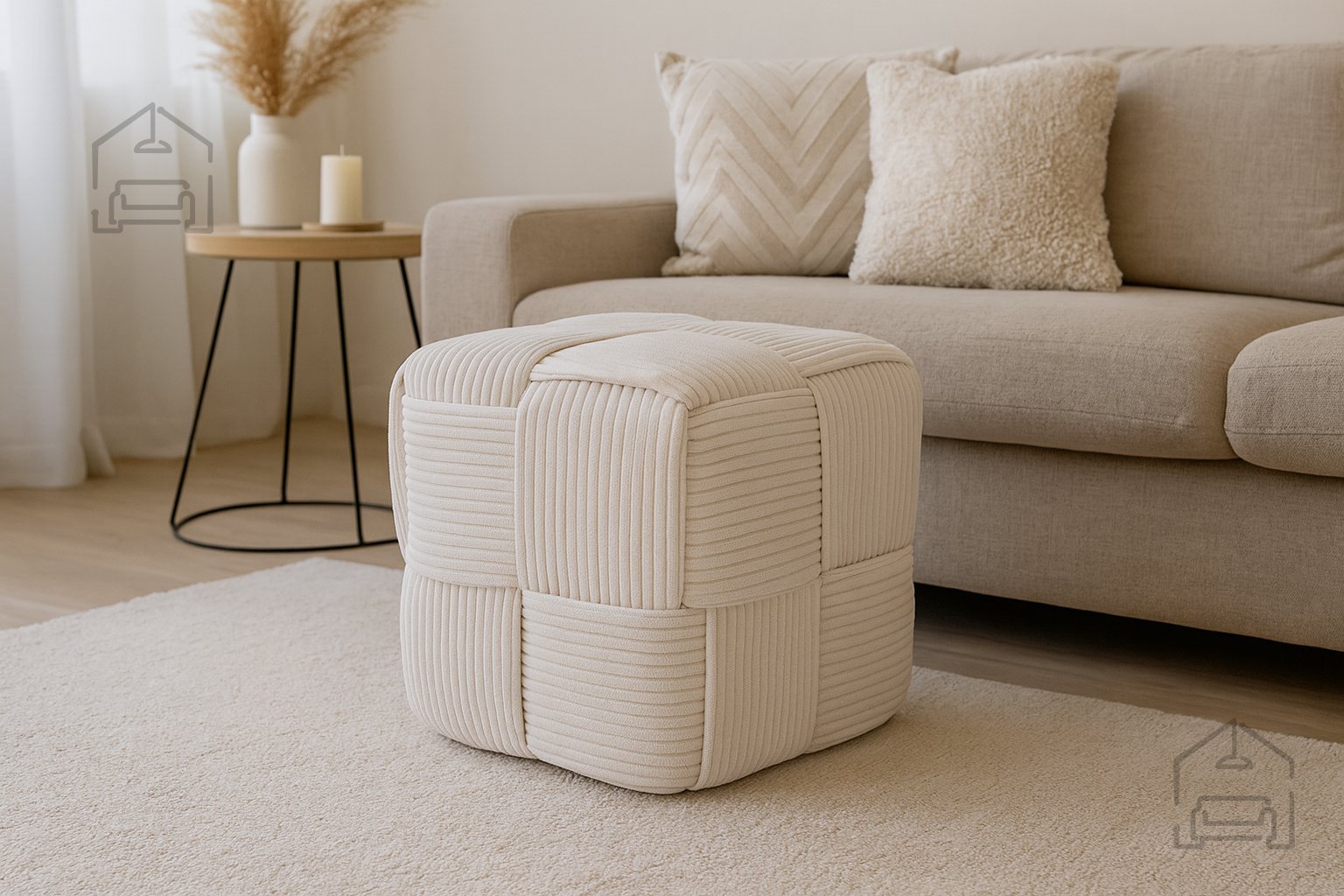Ta elegantni tabure, izdelan na Poljskem v tovarni Chomik, združuje sodoben videz, prijetno teksturo in praktičnost v eni obliki. Model PHO3852 je zasnovan kot večnamenski kos pohištva, ki ga lahko uporabite kot dodatno sedišče, udoben podnožnik ali dekorativni poudarek v prostoru. Njegova struktura v obliki pletene kocke v beli barvi se harmonično zlije z različnimi notranjimi slogi – od sodobnega minimalizma do skandinavske mehkobe ali boho topline. Mehka površina iz velur tkanine v rebrastem žametnem vzorcu nudi prijeten občutek ob dotiku, hkrati pa ohranja urejen videz tudi pri vsakodnevni uporabi.