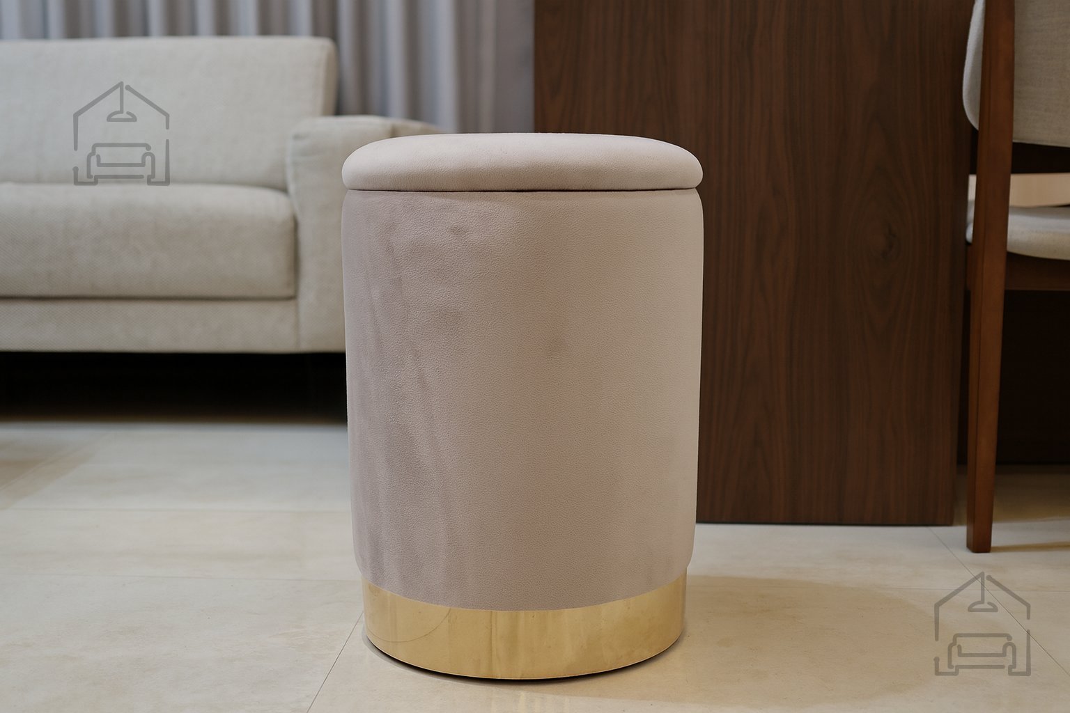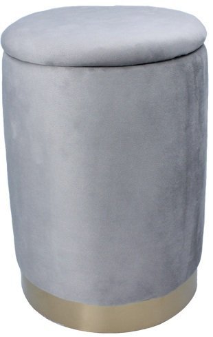 Siva barva tabureja omogoča, da se lepo poveže z različnimi odtenki – od pastelnih tonov do močnih kontrastov. Zlat rob pa v prostor vnese kanček luksuza, ki poudari detajle kovinskih dodatkov ali svetlih lesenih površin. Odlično se ujema z mehkimi tkaninami, toplimi tapetami ali minimalističnim pohištvom. Zaradi svoje univerzalne oblike je primeren tako za klasične kot sodobne ambiente, kjer lahko služi kot osrednji poudarek ali diskreten dodatek.