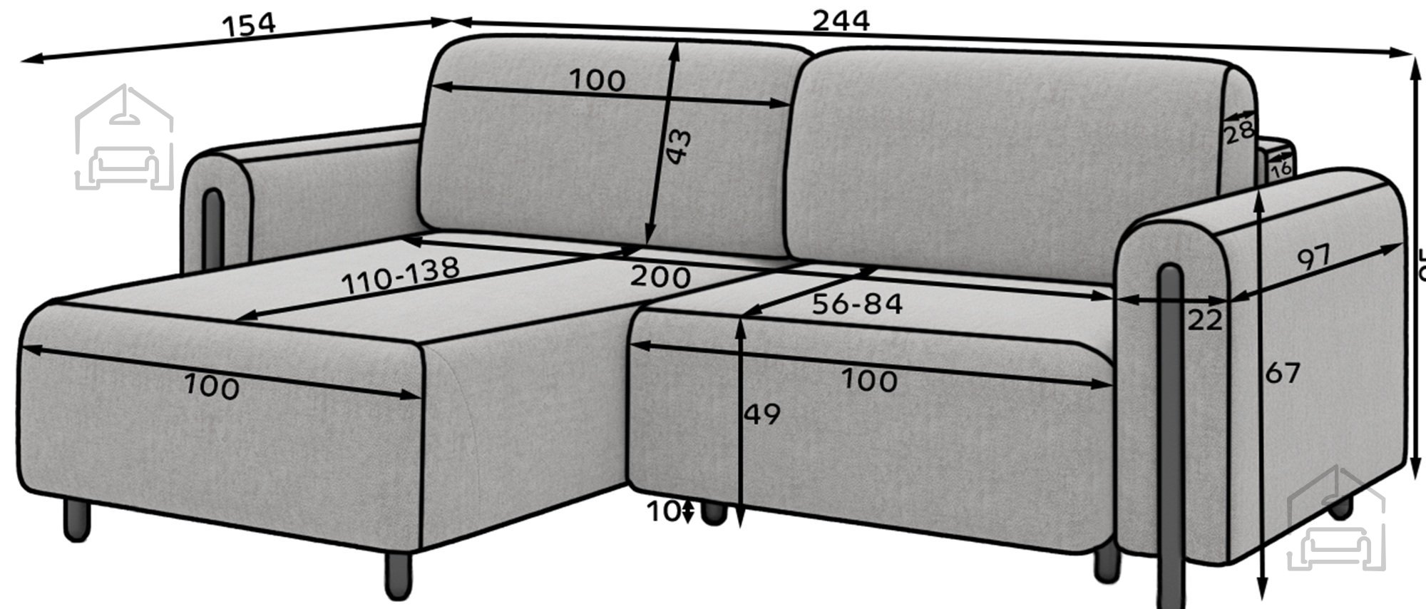 Ena izmed največjih prednosti modela Acossta je funkcija spanja. S pomočjo mehanizma Euro se garnitura enostavno raztegne v ležišče dimenzij 200x130 cm. To je odlična rešitev za goste ali za tiste trenutke, ko potrebujete dodatno spalno površino.
