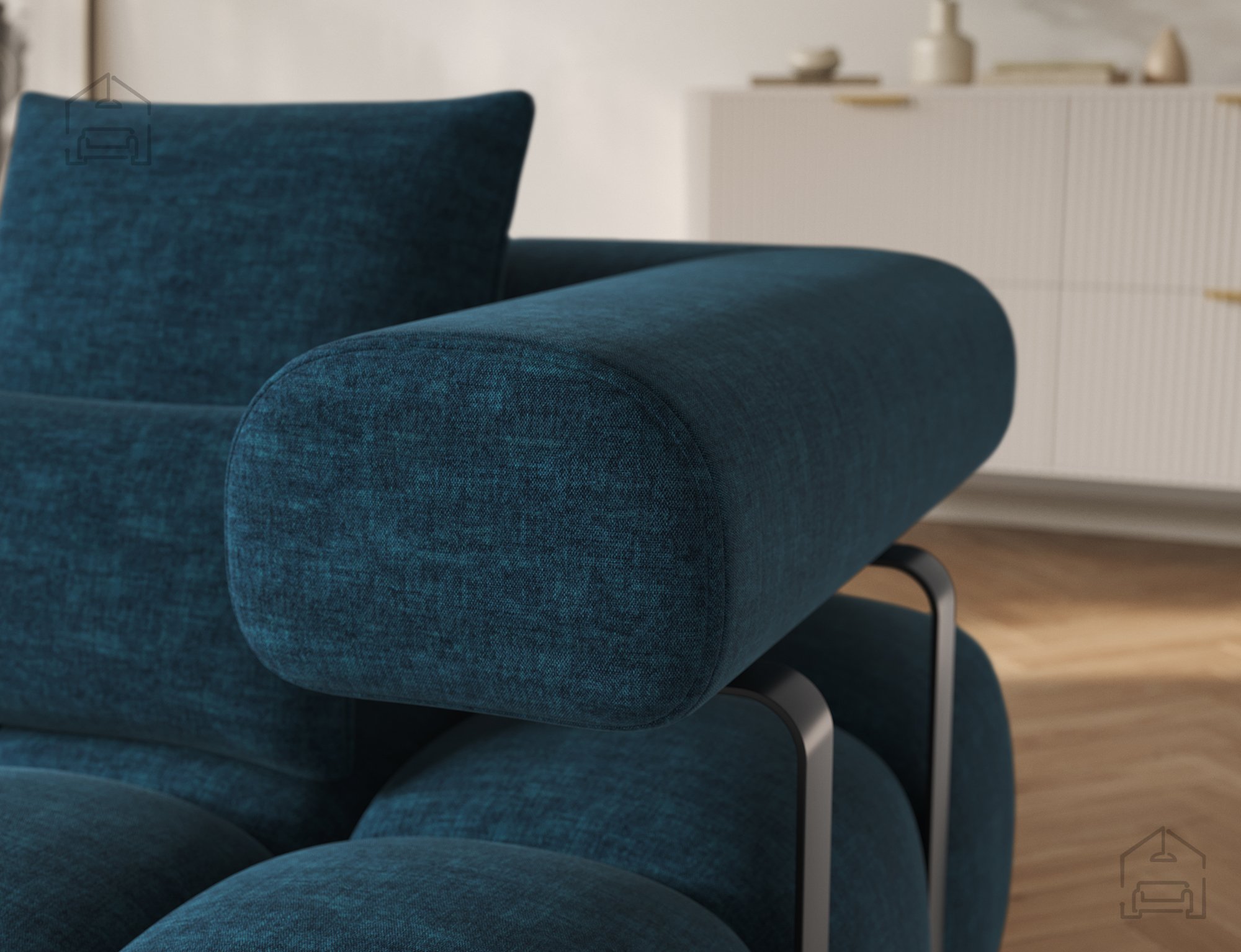 Na fotografiji je prikazana tkanina Manhattan 40, ki s svojo teksturo in barvno globino ustvarja prijeten, sodoben vtis. Tkanina je mehka na dotik, hkrati pa odporna proti obrabi in enostavna za vzdrževanje. Na voljo je v več barvah, zato lahko garnituro Levvi prilagodite različnim slogom notranje opreme – od minimalističnih do nežno skandinavskih ali izrazito sodobnih prostorov. Elegantne črne noge iz trpežnega materiala dopolnjujejo vizualno podobo in poudarjajo High-tech stil, ki ga model predstavlja.