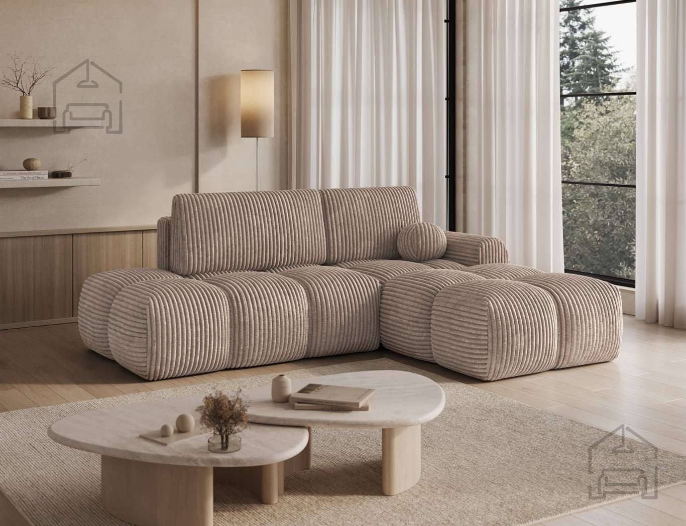 Kotna sedežna garnitura Vittario je sodoben kos pohištva, zasnovan za maksimalno udobje in praktičnost. Njena elegantna oblika, poudarjena z mehko tkanino in natančno izdelanimi linijami, se popolno ujema z modernimi interierji. Garnitura, izdelana v tovarni Eltap na Poljskem, združuje kakovostno konstrukcijo, udobno sedenje in funkcionalnost, ki omogoča enostavno preoblikovanje v ležišče.