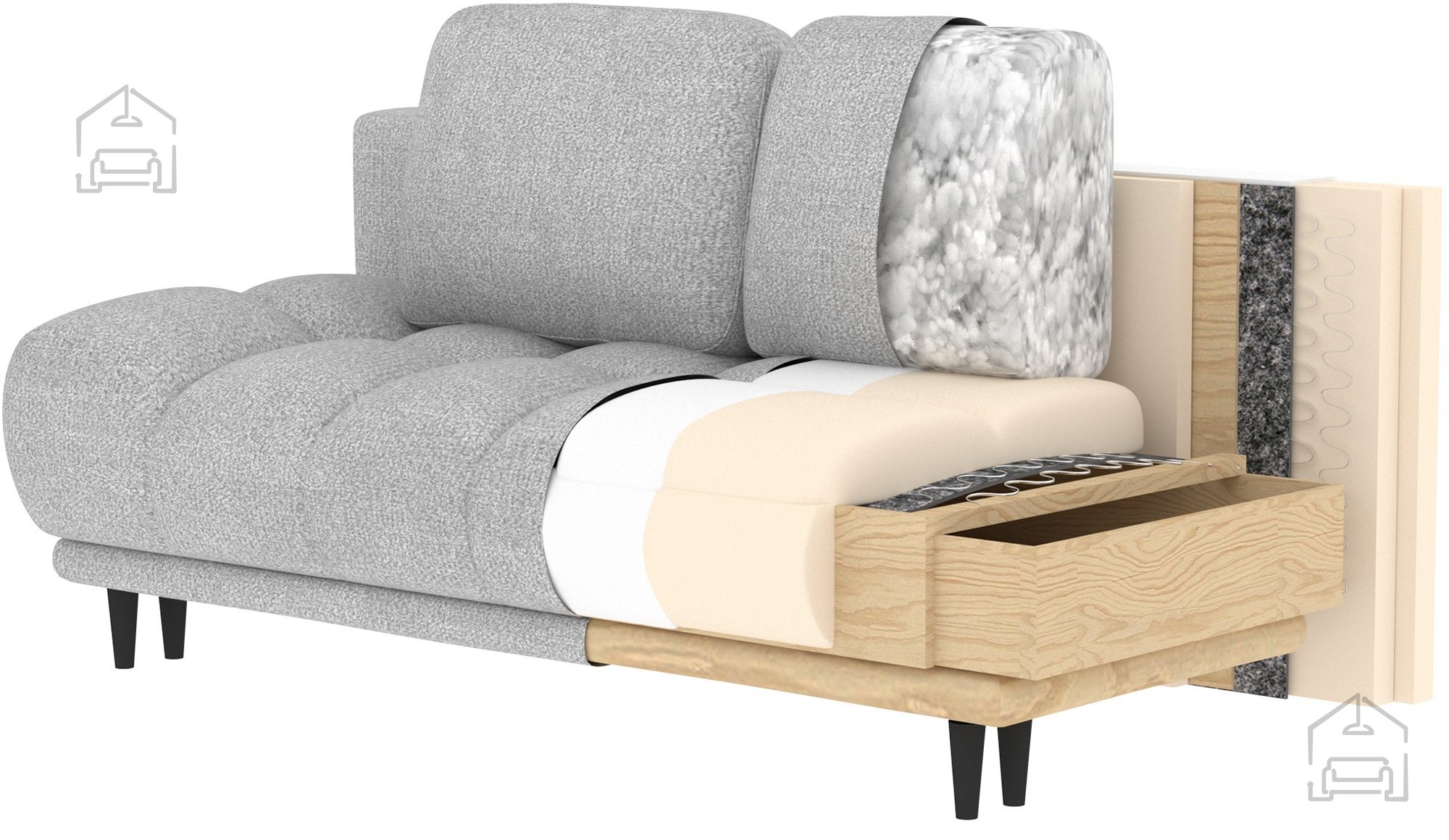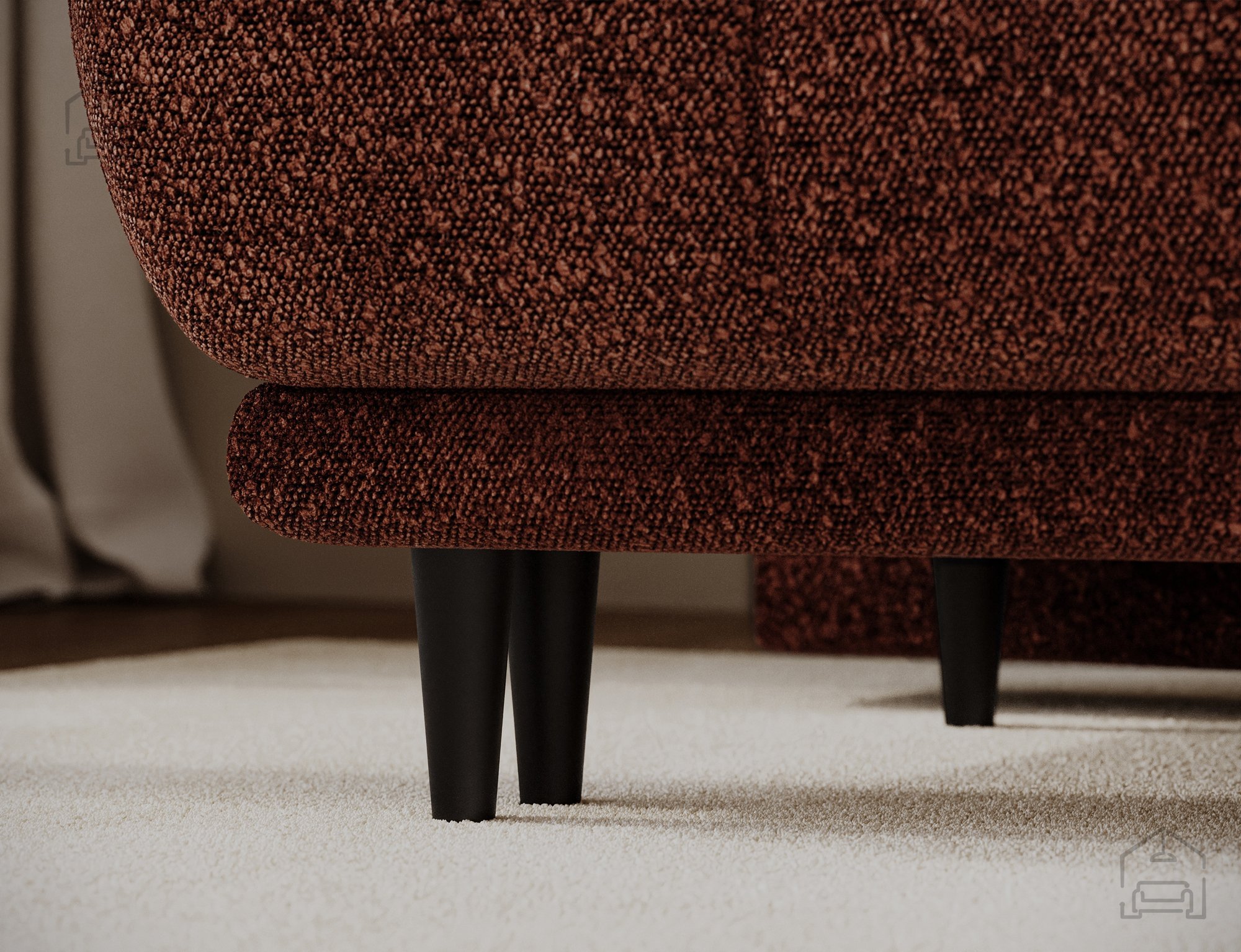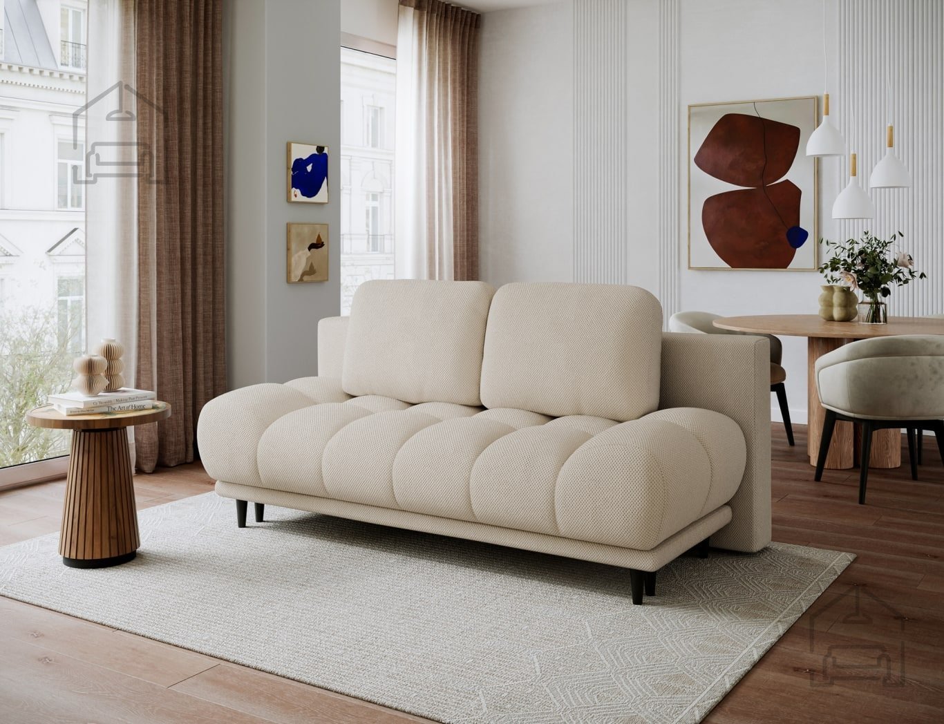 Guavio je dvosed, ustvarjen za dinamična sodobna gospodinjstva, kjer se prostor uporablja večnamensko. V notranjosti se skriva praktičen mehanizem Euro, ki omogoča hitro in enostavno preoblikovanje sedežne površine v udobno ležišče. Ko je raztegnjen, nudi ležalno površino 210x140 cm, kar zadošča za udoben spanec dveh oseb. Dodatni predal za posteljnino pod sediščem omogoča shranjevanje odej, blazin ali posteljnine, kar je izjemno priročno v manjših stanovanjih ali garsonjerah, kjer je vsak centimeter prostora dragocen.
